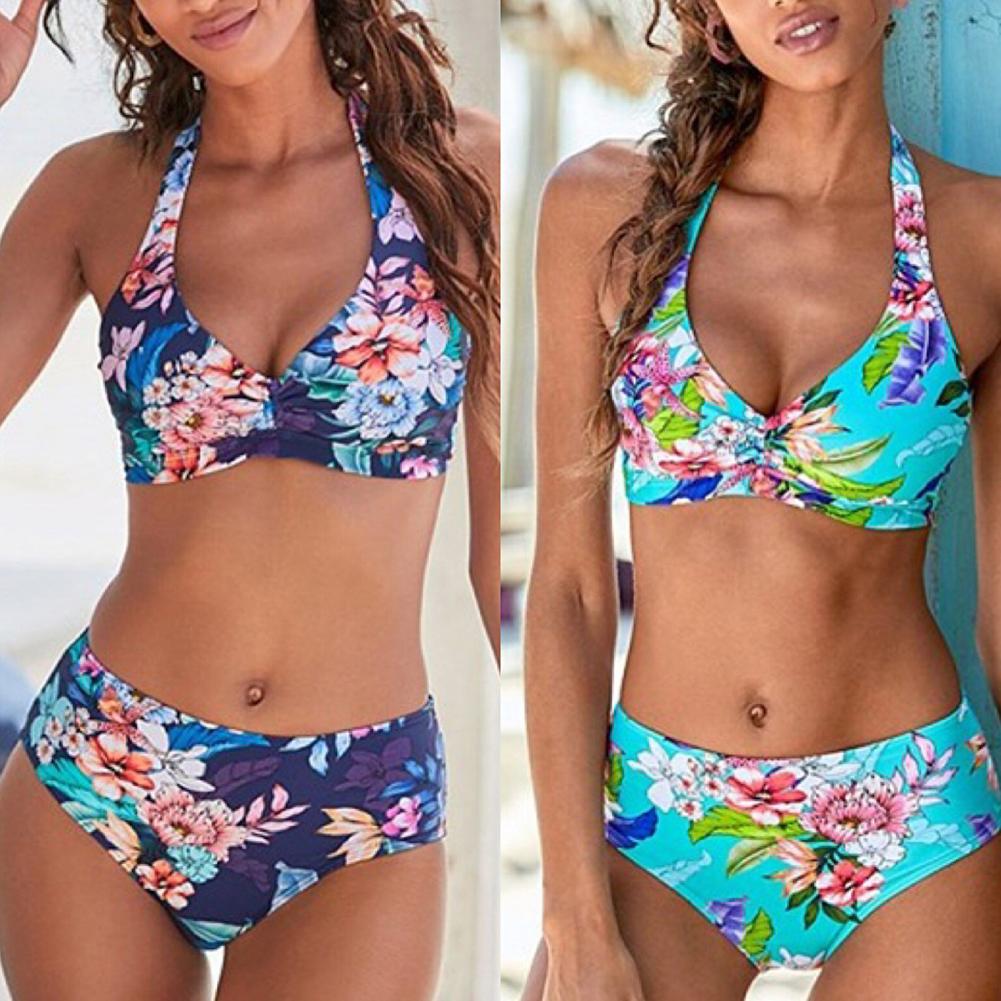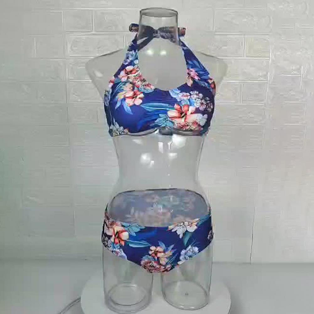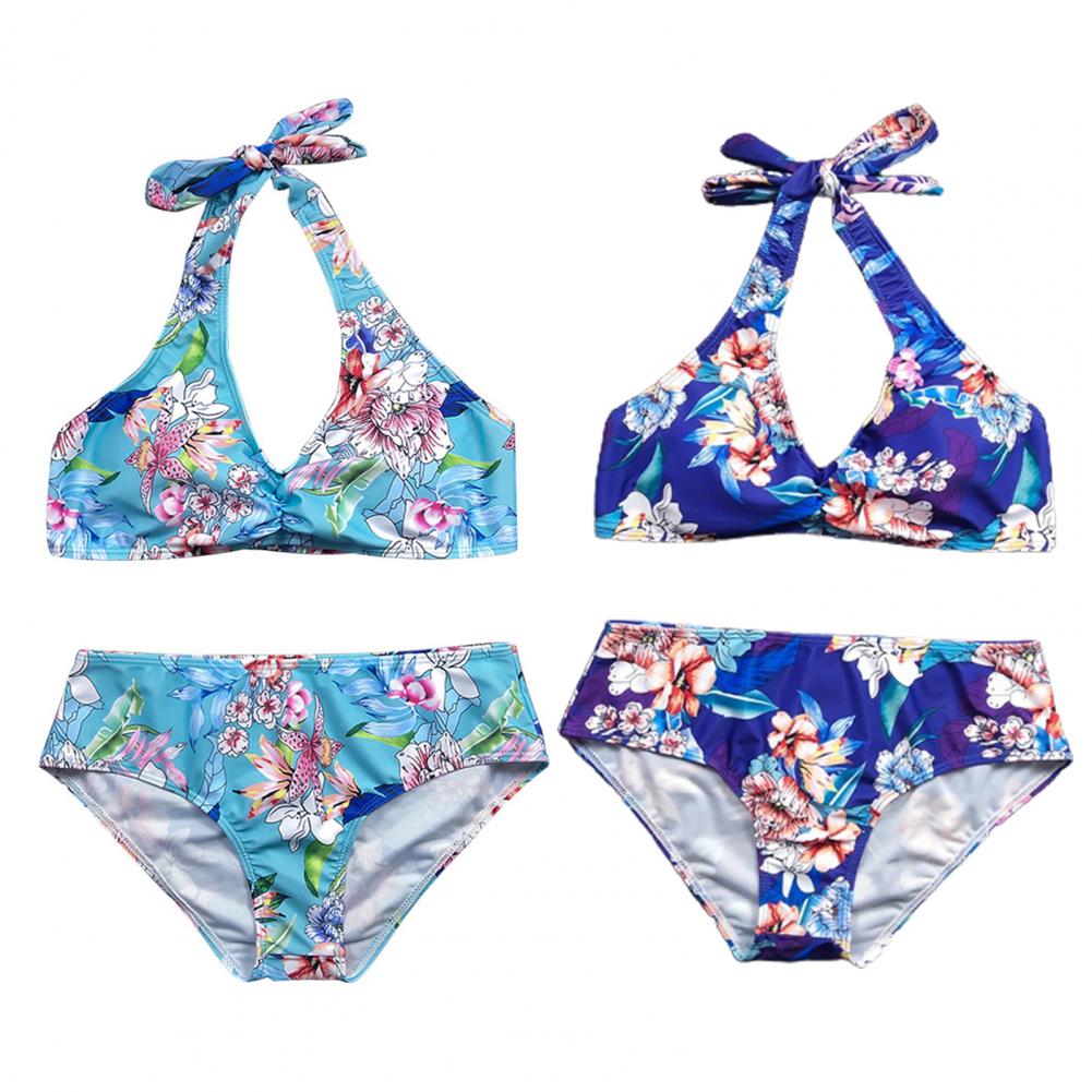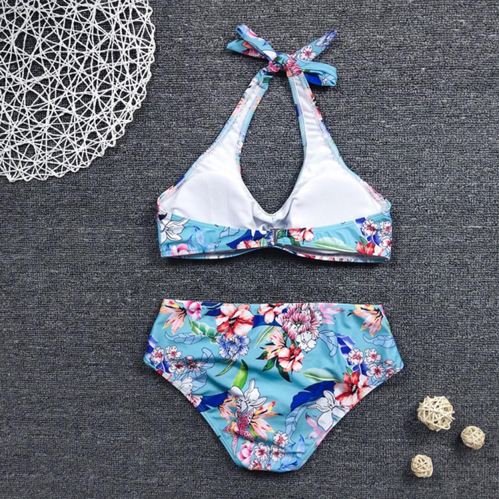 Женский комплект бикини с бюстгальтером с лямкой на шее и трусиками с цветочным принтом, быстро сохнет и свежий, что позволяет вам наслаждаться приятным праздником.