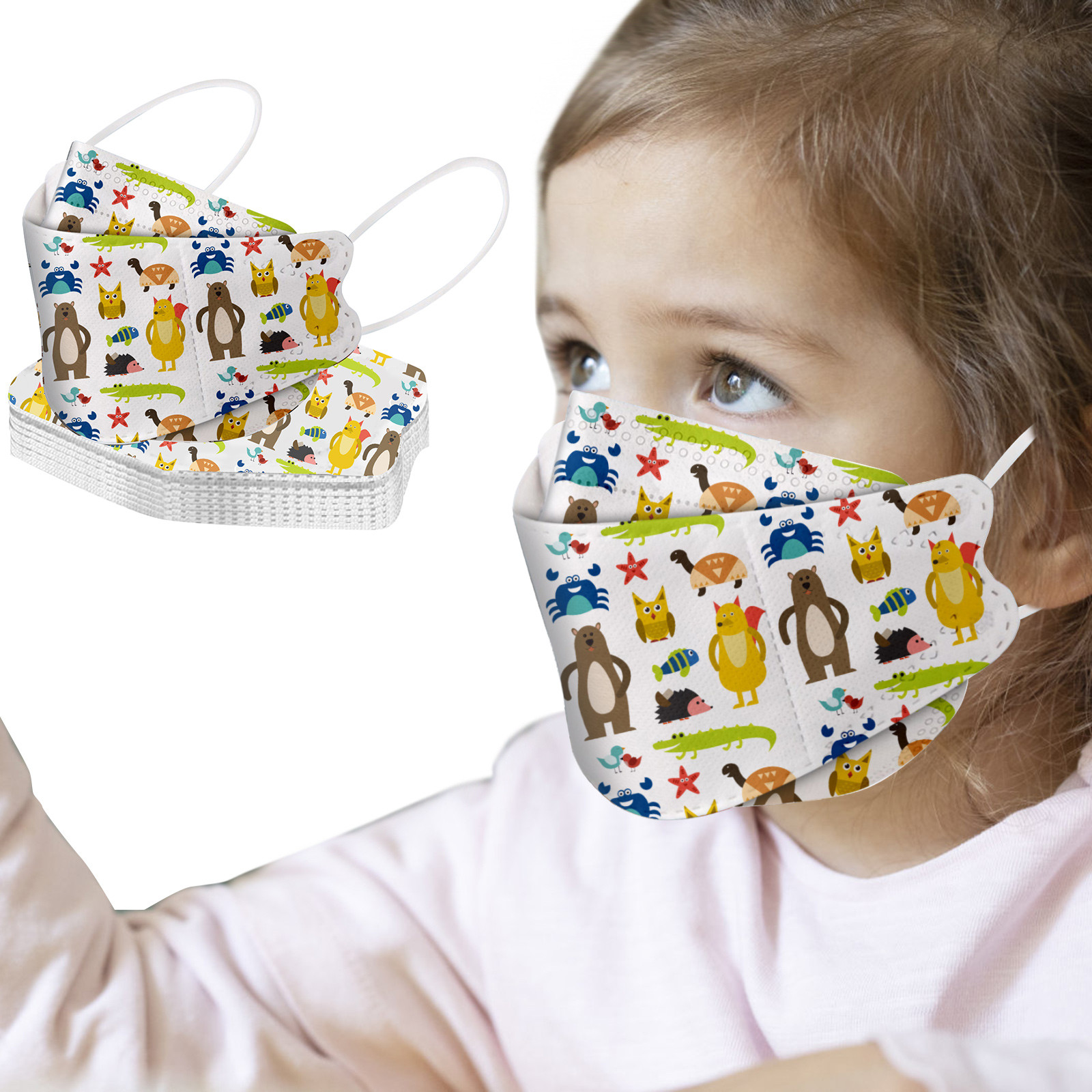Детские одноразовые маски для лица в форме рыбы с мультяшным дизайном, четырехслойные суперфильтрующие маски для лица