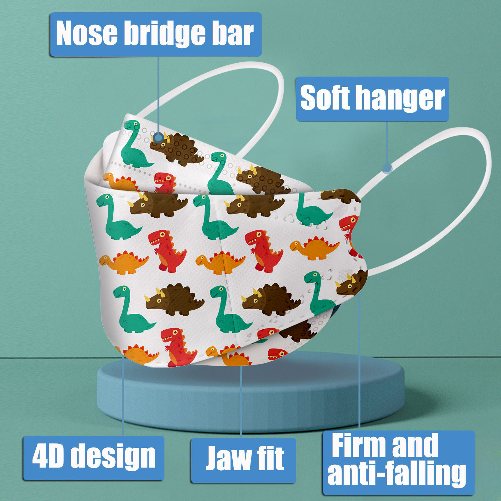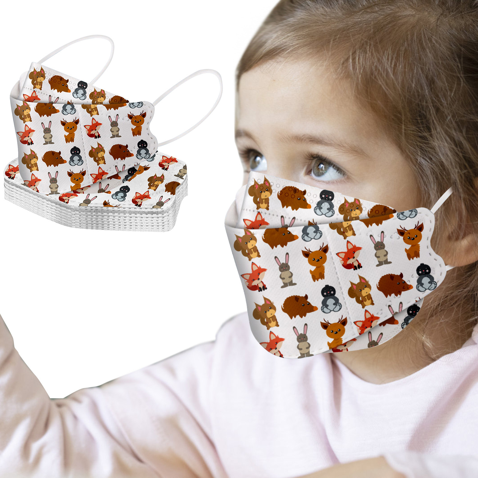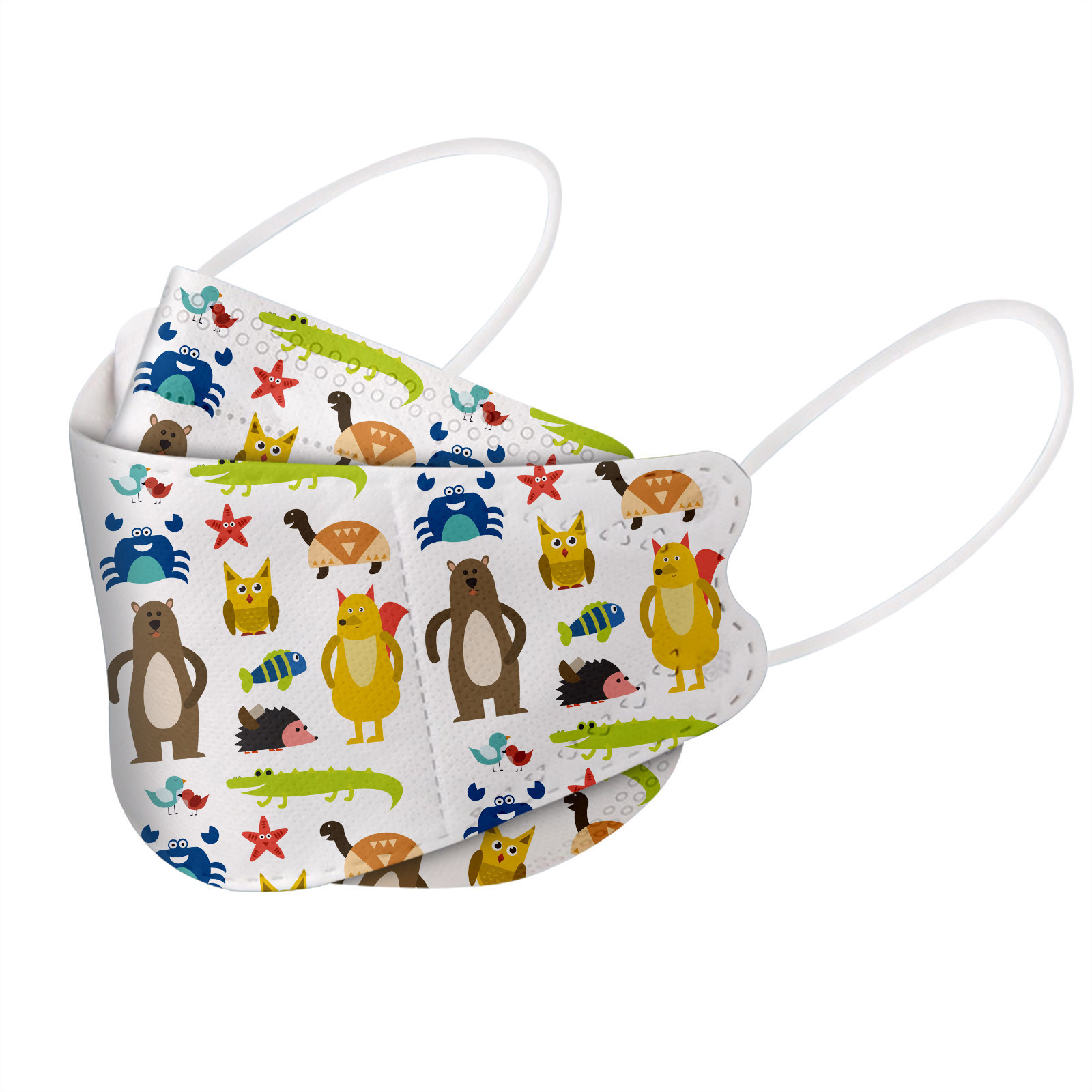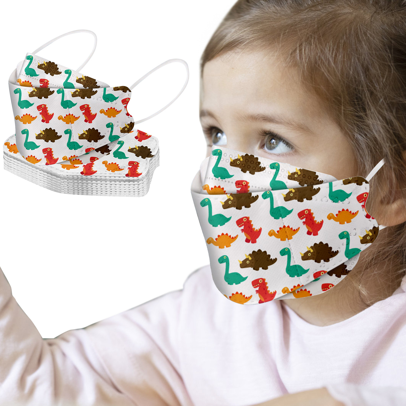 This Kids disposable face_mask is made of 4 ply spunlace non-woven material, it is healthy and safe for kids to use. Breathable material and cute dinosaur,star patterns, which makes it useful and fashionable. Special fish shape 4 ply non-woven design, provides some protections against D'ust, automobile exhaust, pollen, etc. Elastic ear loop, easy to wear and no pressure to the ears.