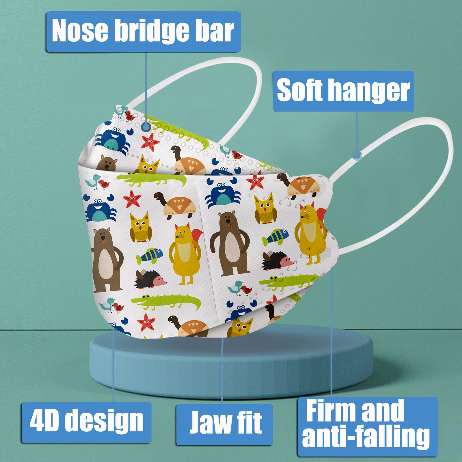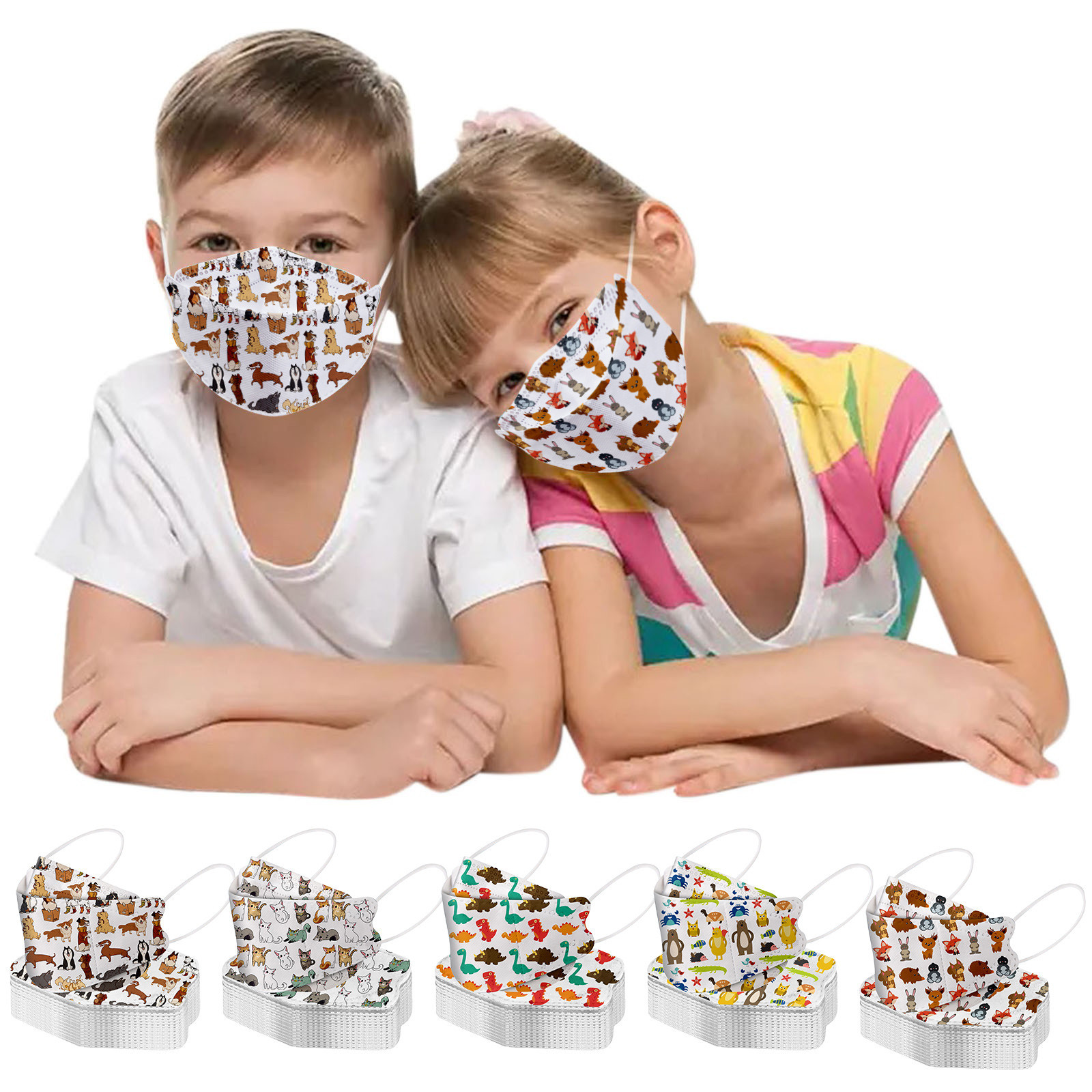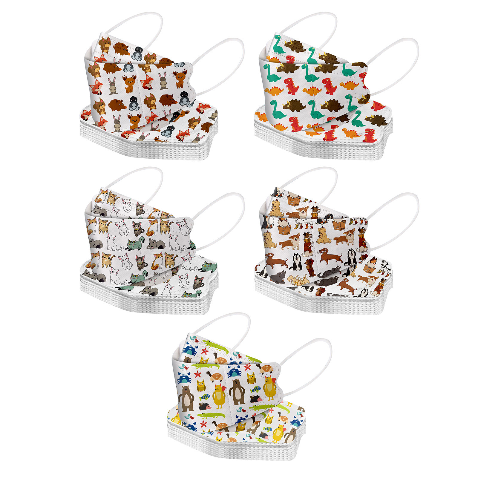 This Kids disposable face_mask is made of 4 ply spunlace non-woven material, it is healthy and safe for kids to use. Breathable material and cute dinosaur,star patterns, which makes it useful and fashionable. Special fish shape 4 ply non-woven design, provides some protections against D'ust, automobile exhaust, pollen, etc. Elastic ear loop, easy to wear and no pressure to the ears.