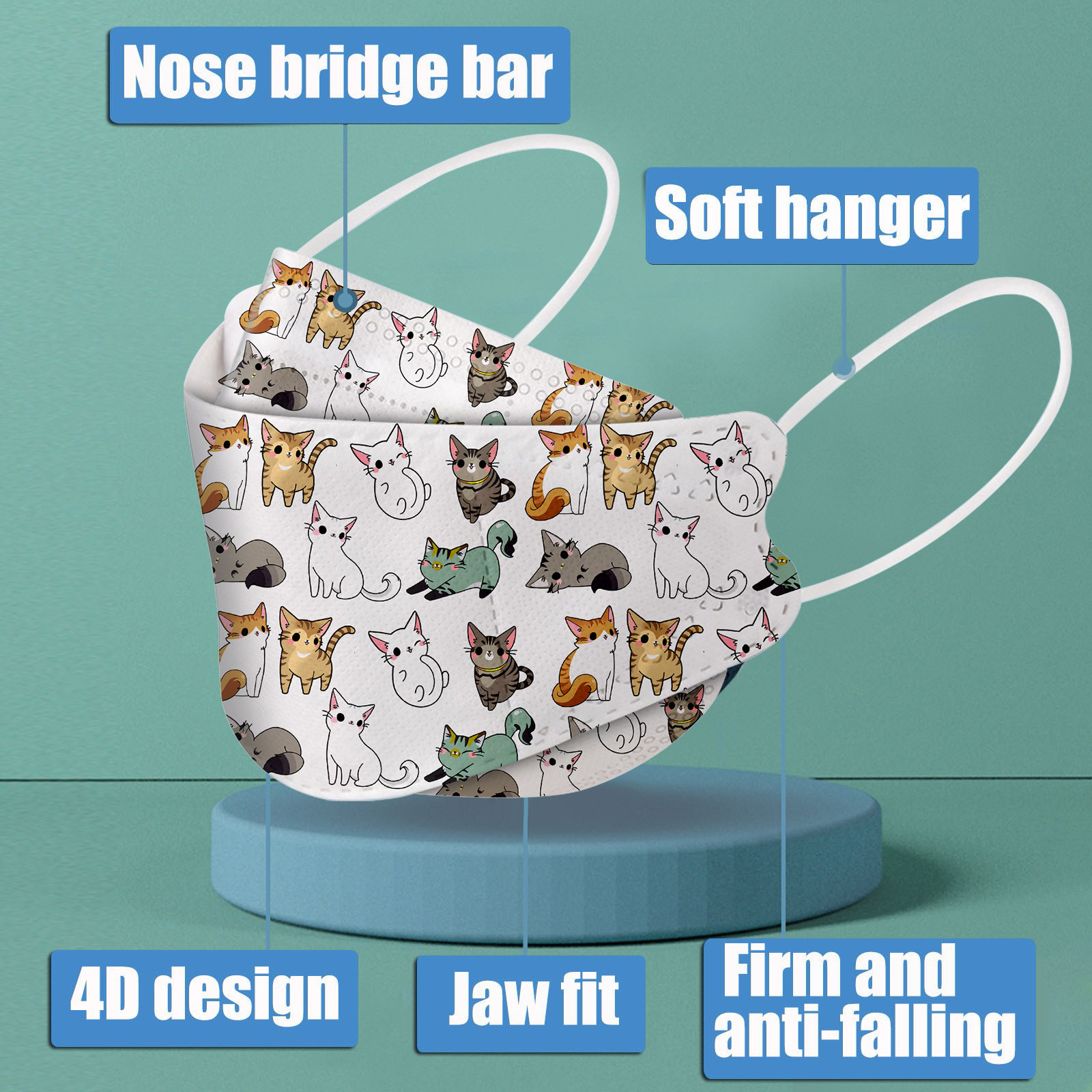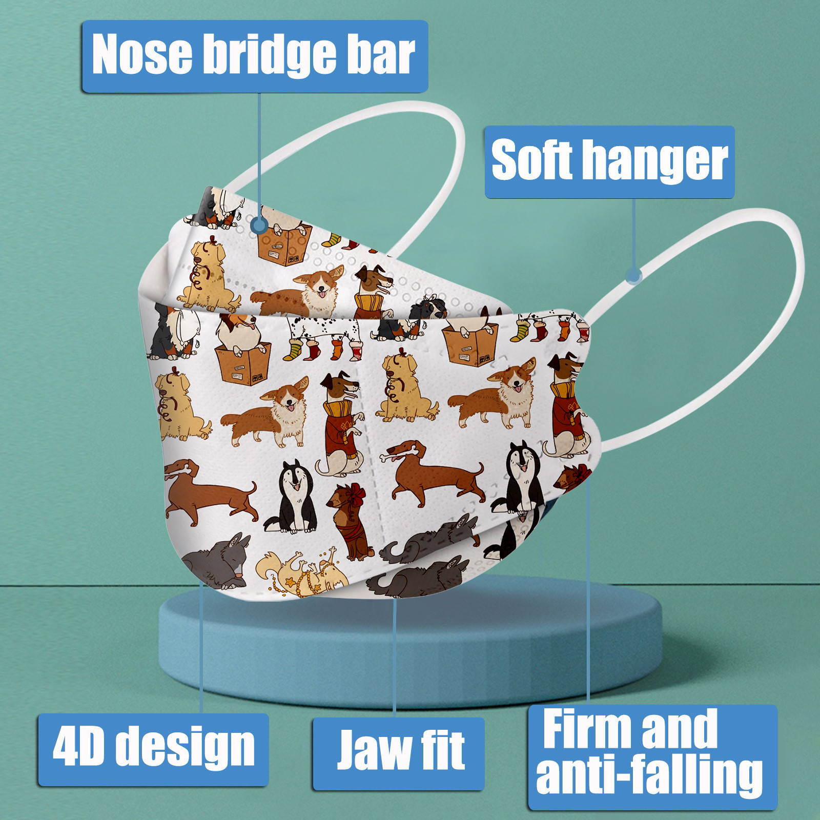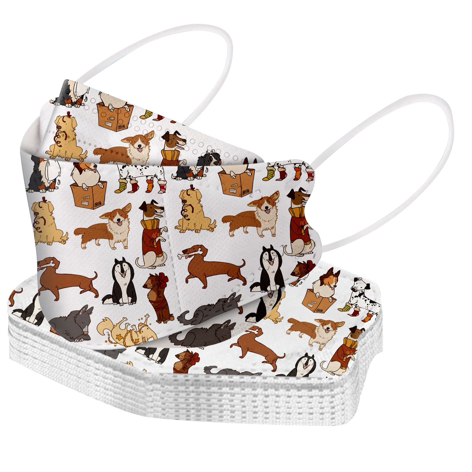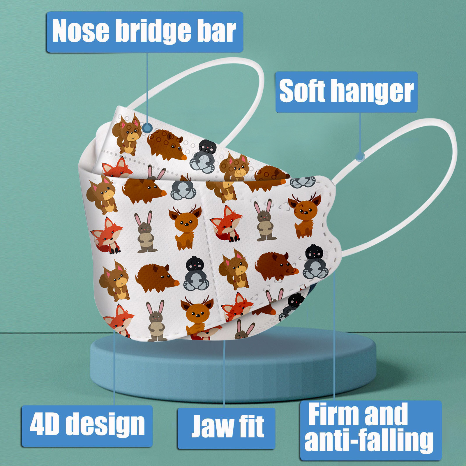 This Kids disposable face_mask is made of 4 ply spunlace non-woven material, it is healthy and safe for kids to use. Breathable material and cute dinosaur,star patterns, which makes it useful and fashionable. Special fish shape 4 ply non-woven design, provides some protections against D'ust, automobile exhaust, pollen, etc. Elastic ear loop, easy to wear and no pressure to the ears.