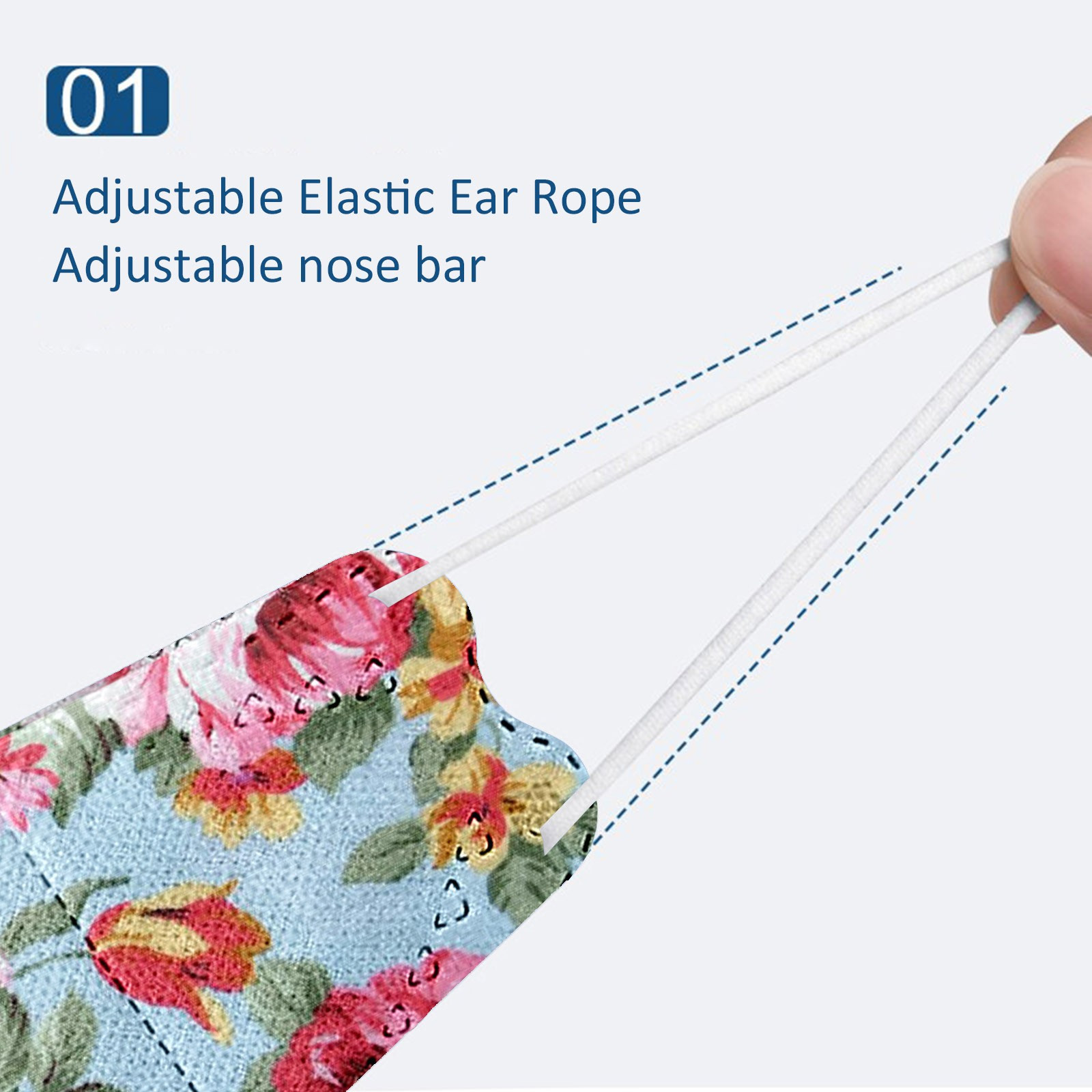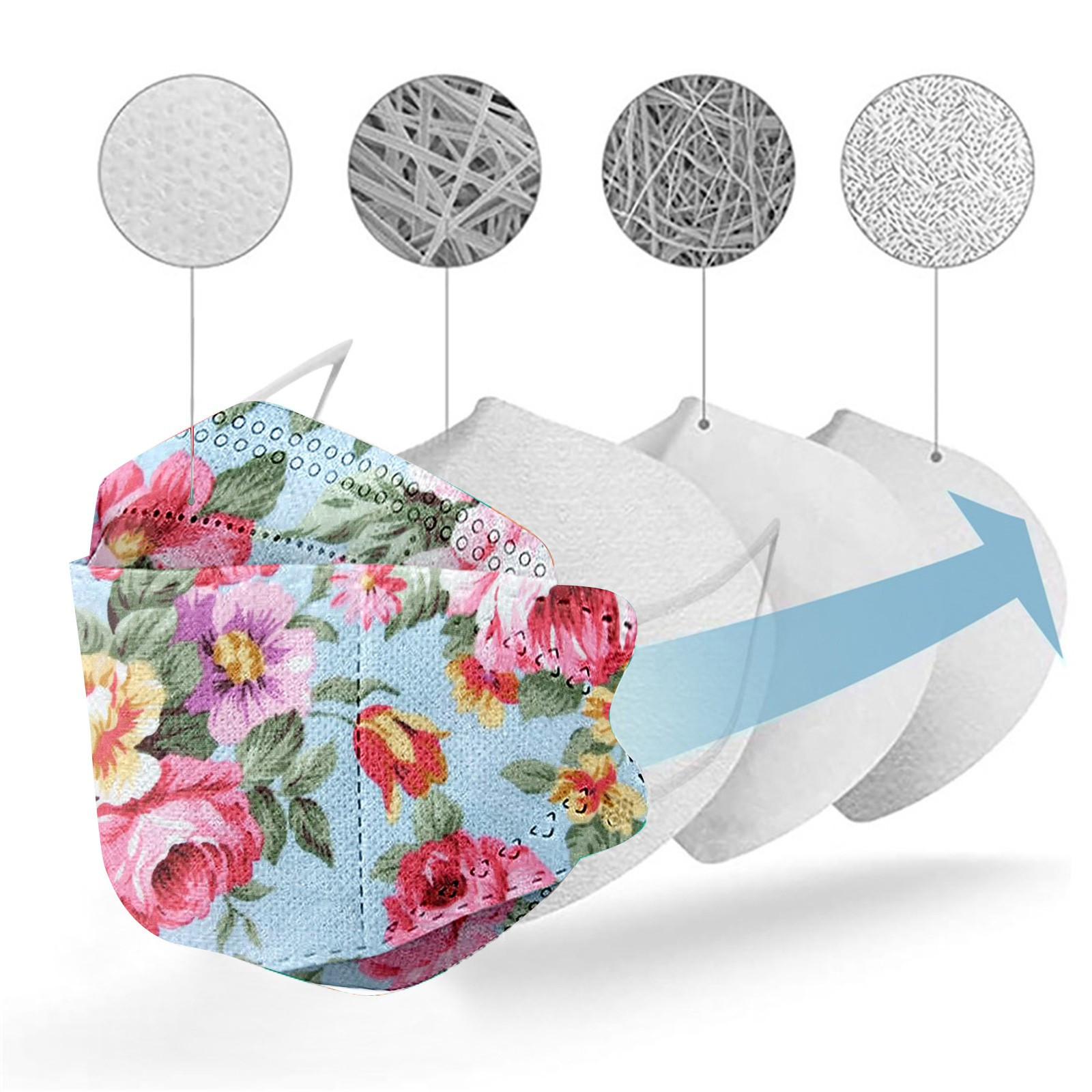 50pcs Adult's KN95 Facemasks Flowers Printed Masks 4-layer Breathable Fish Shape Dustproof Mouth Mask Mascarillas