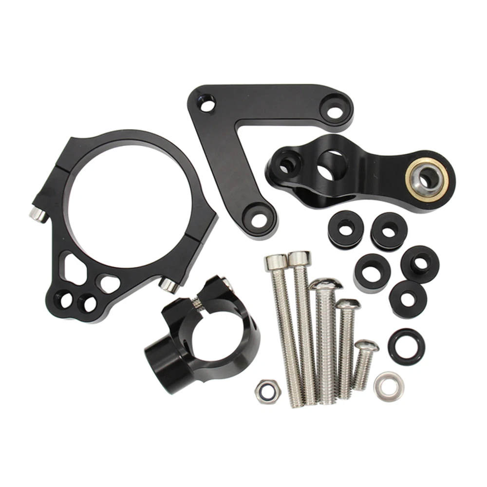 Check if the steering damper and its kit reach the motorbike or oil tank. If they do or the room is deficient, move the steering damper horizontally to the adequate place.