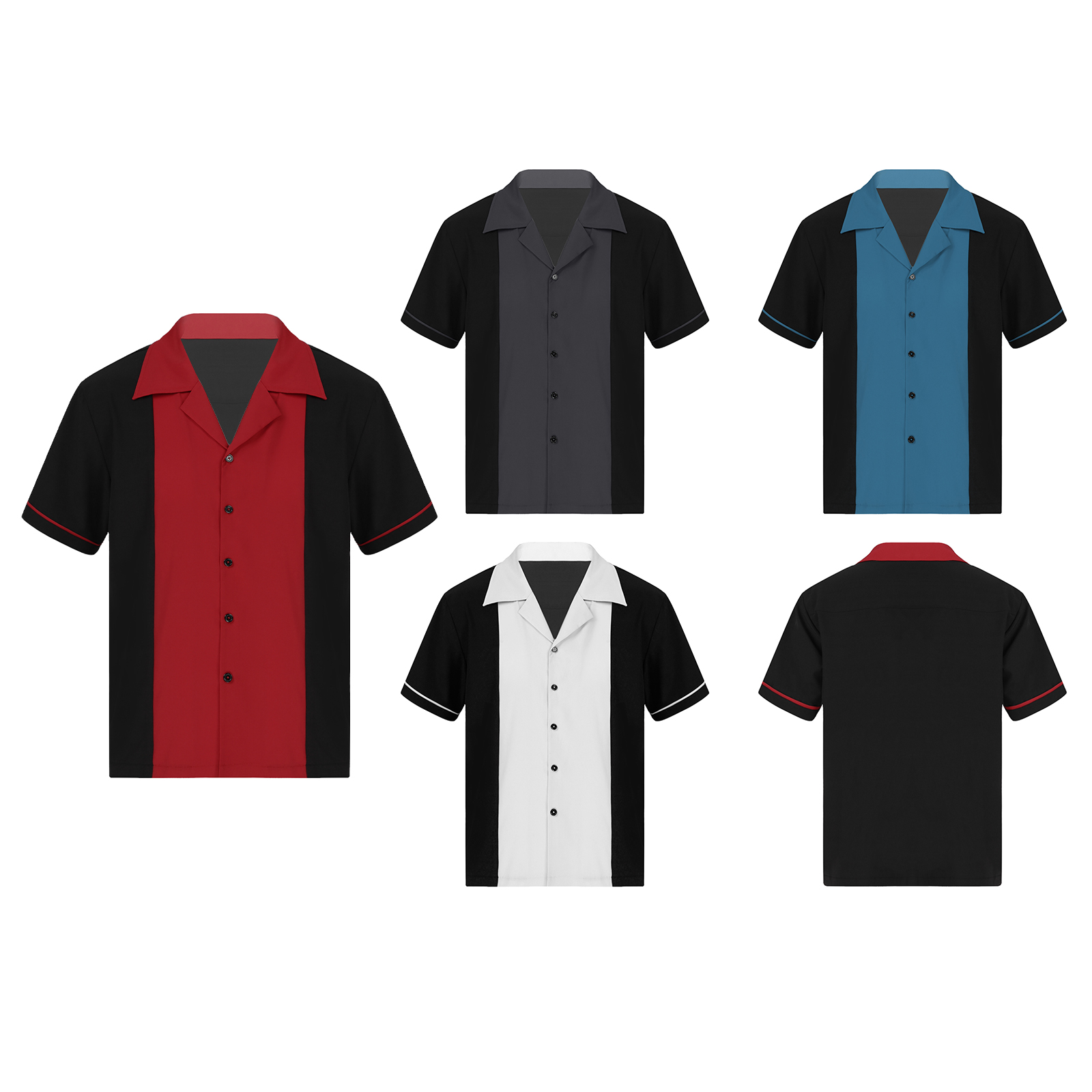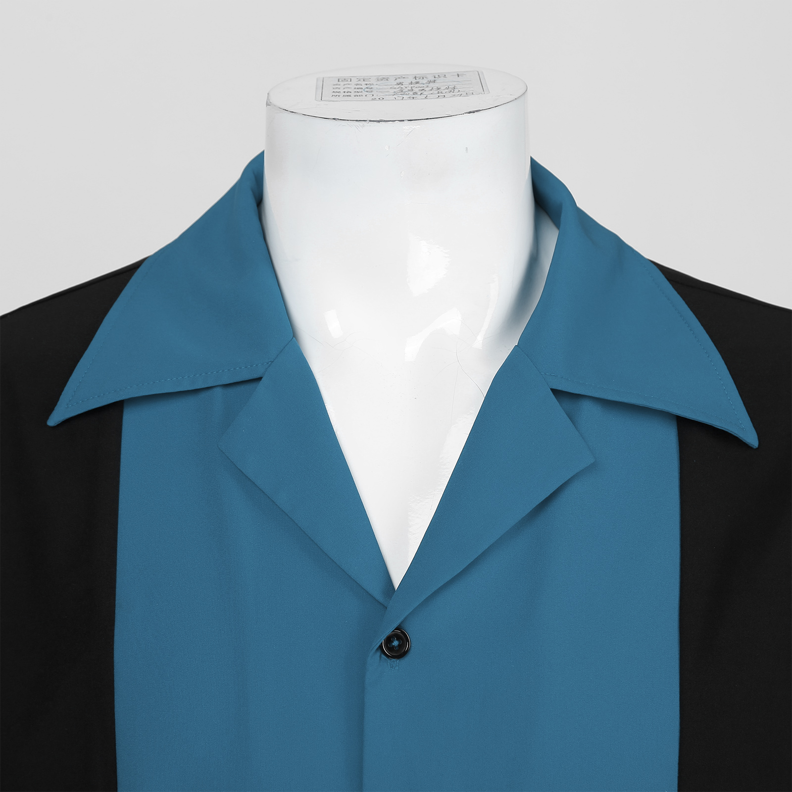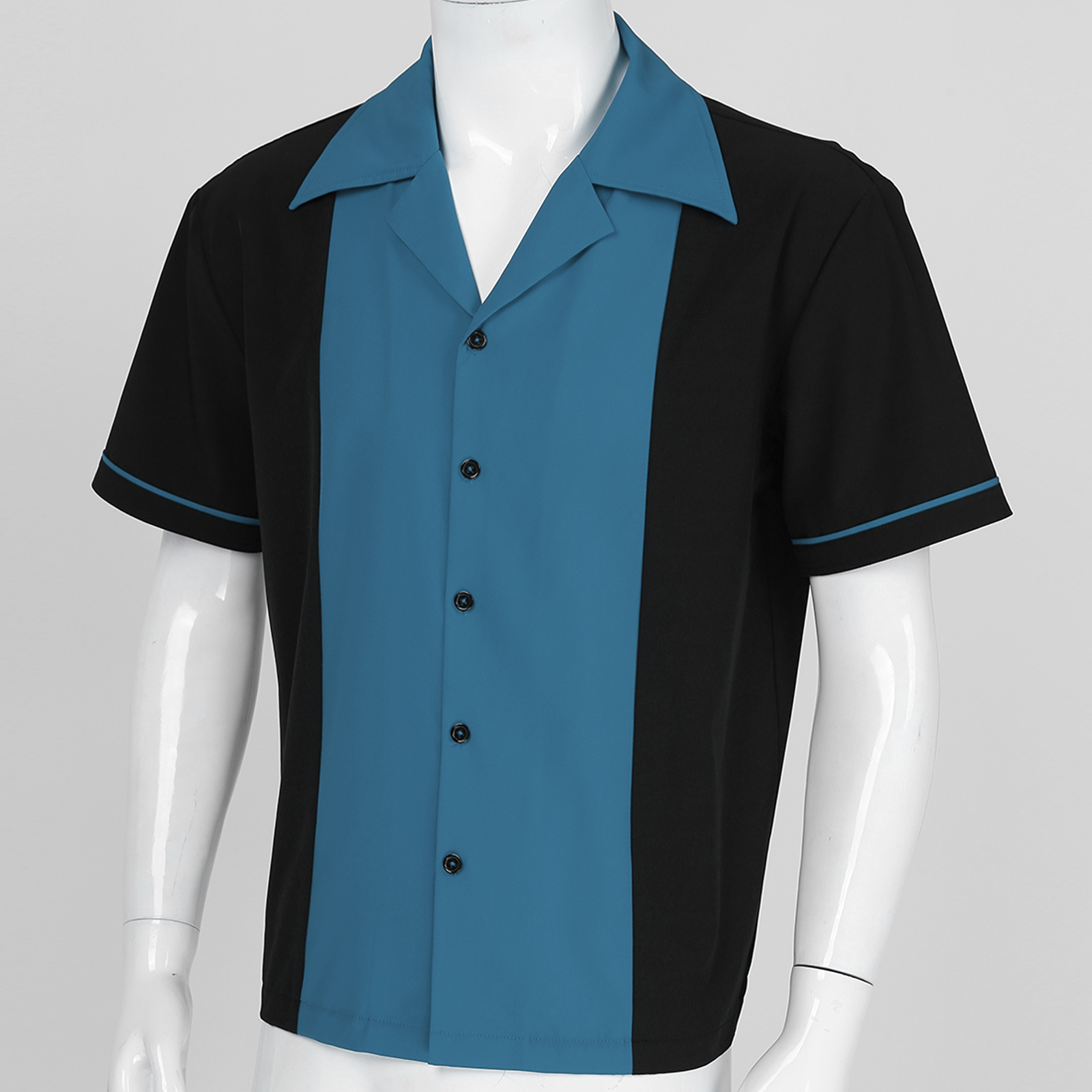 Дизайн с цветными блоками, короткий рукав, зазубренный воротник, застежка на пуговицы.