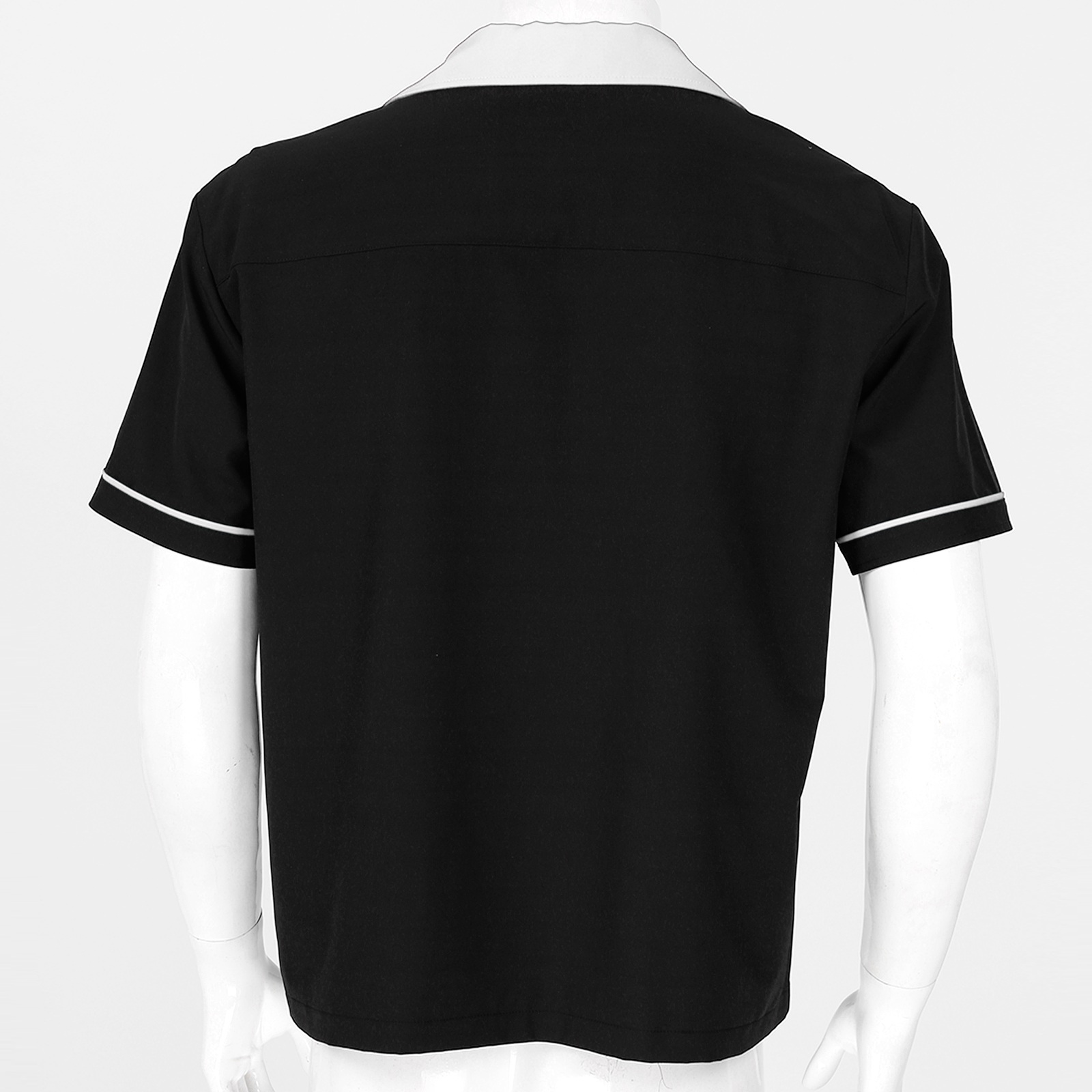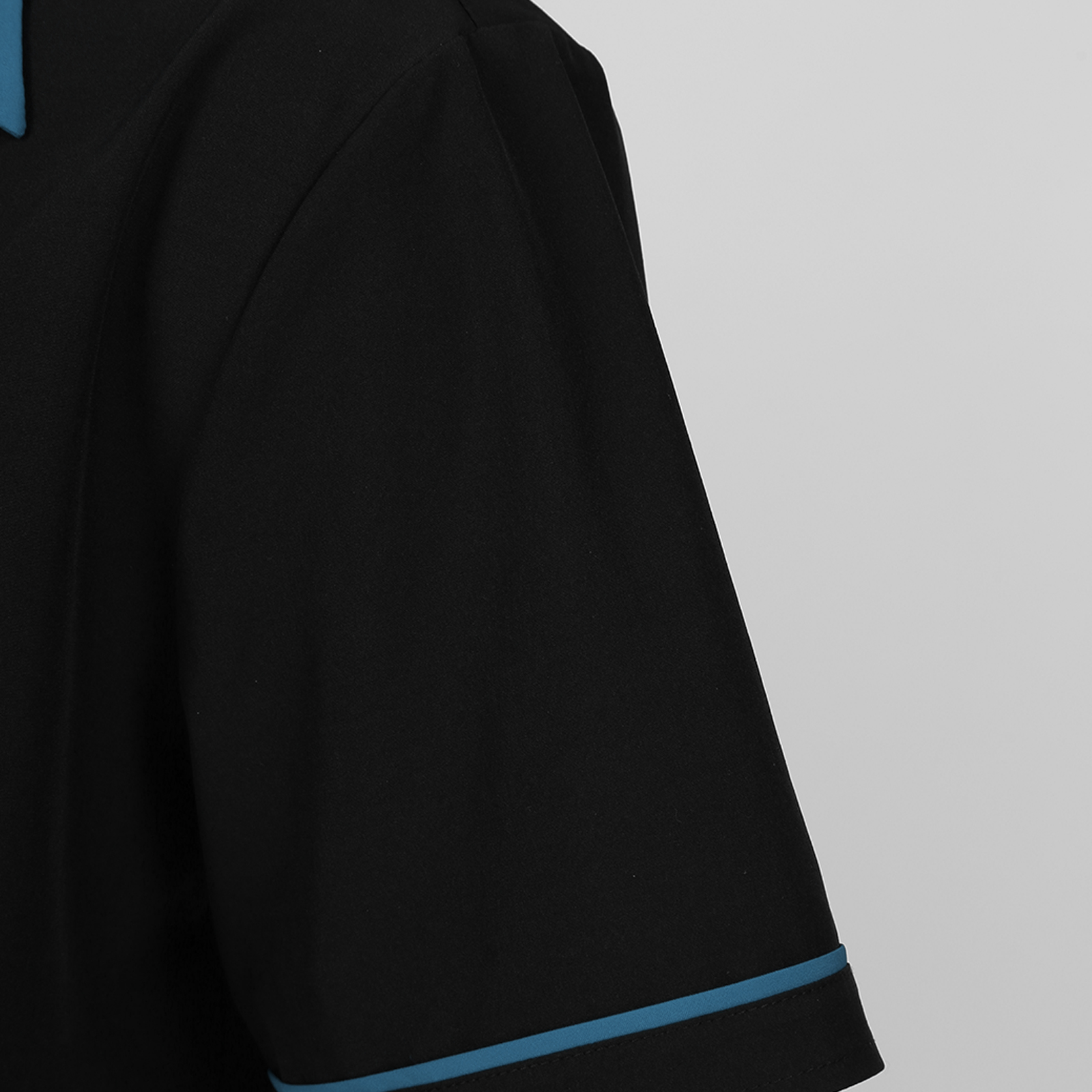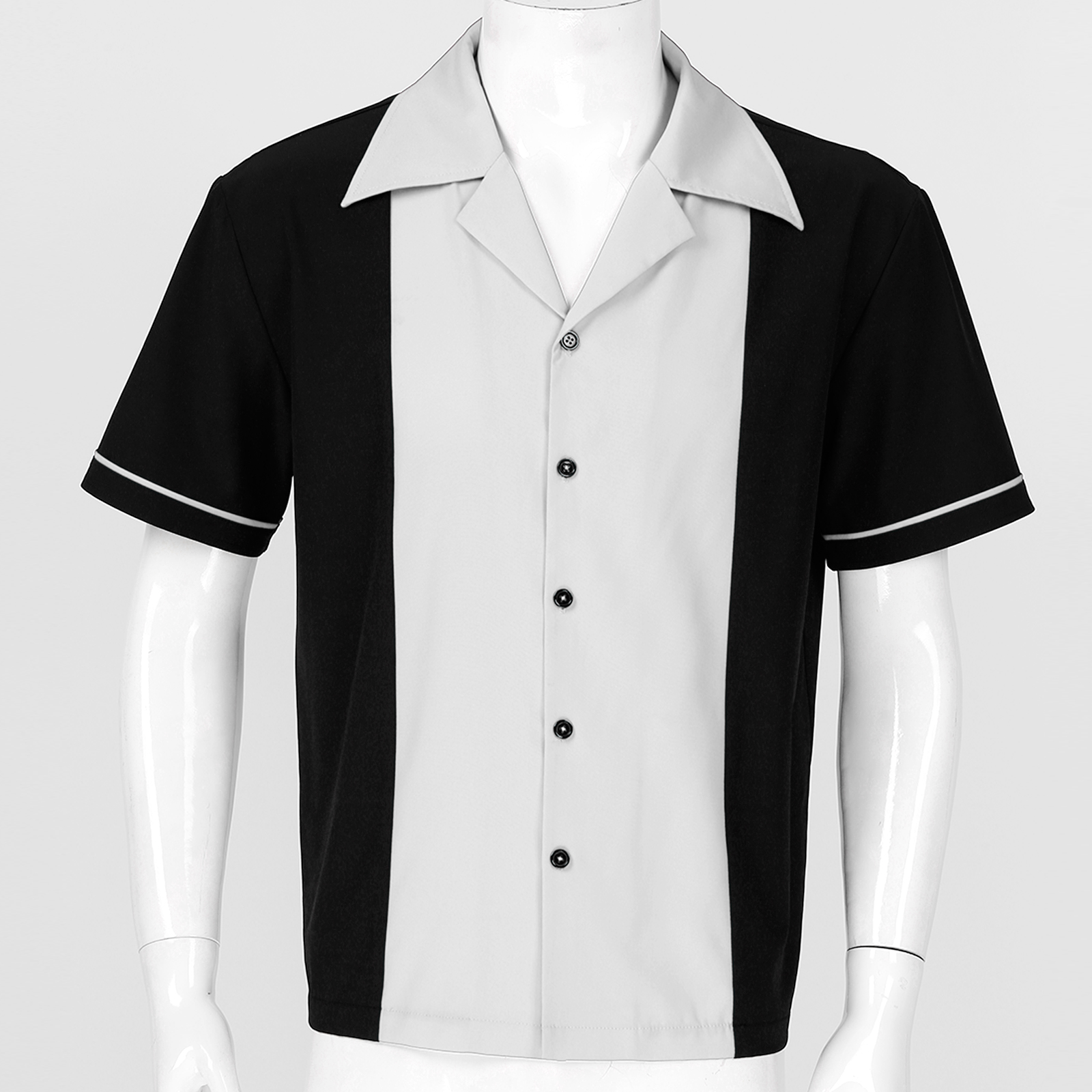 Дизайн с цветными блоками, короткий рукав, зазубренный воротник, застежка на пуговицы.