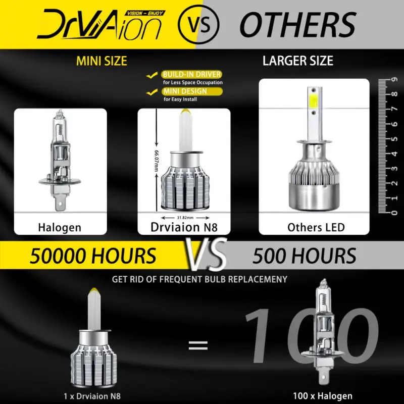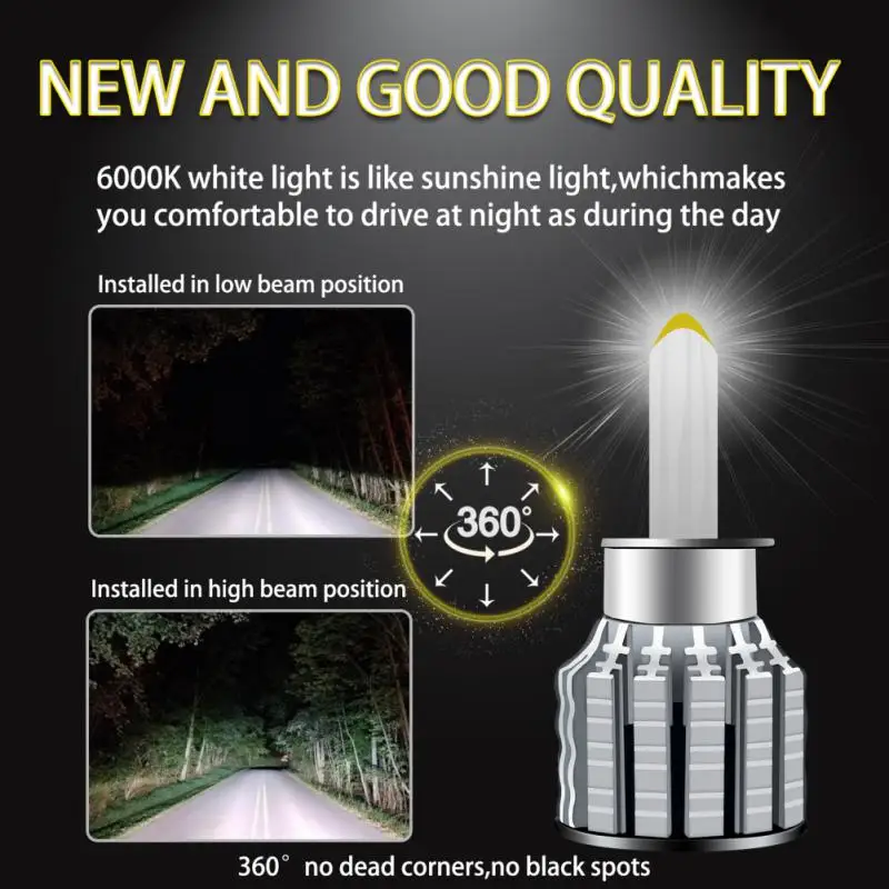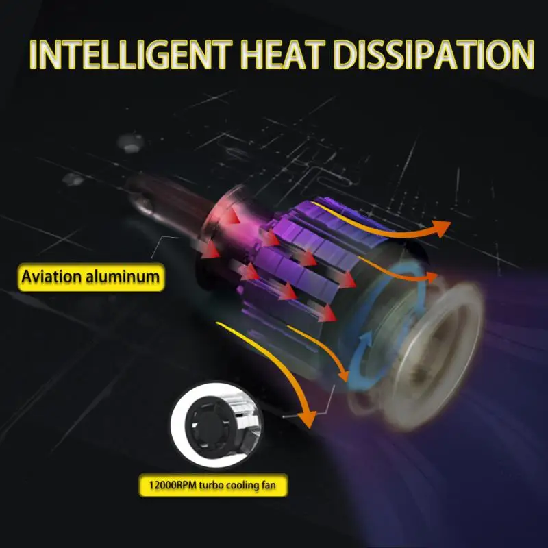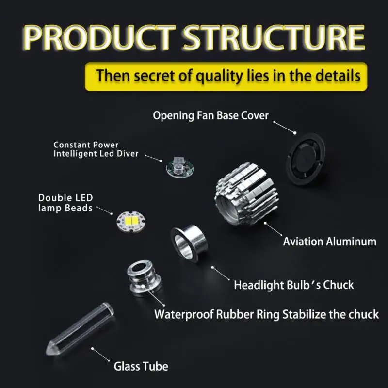 Детали материала: авиационный алюминиевый сплав, светильник, направляющая кварцевая трубка, Встроенный интеллектуальный вентилятор охлаждения, встроенная вилка, с защитой от помех EMC, подходит для 99% автомобилей, мотоциклов