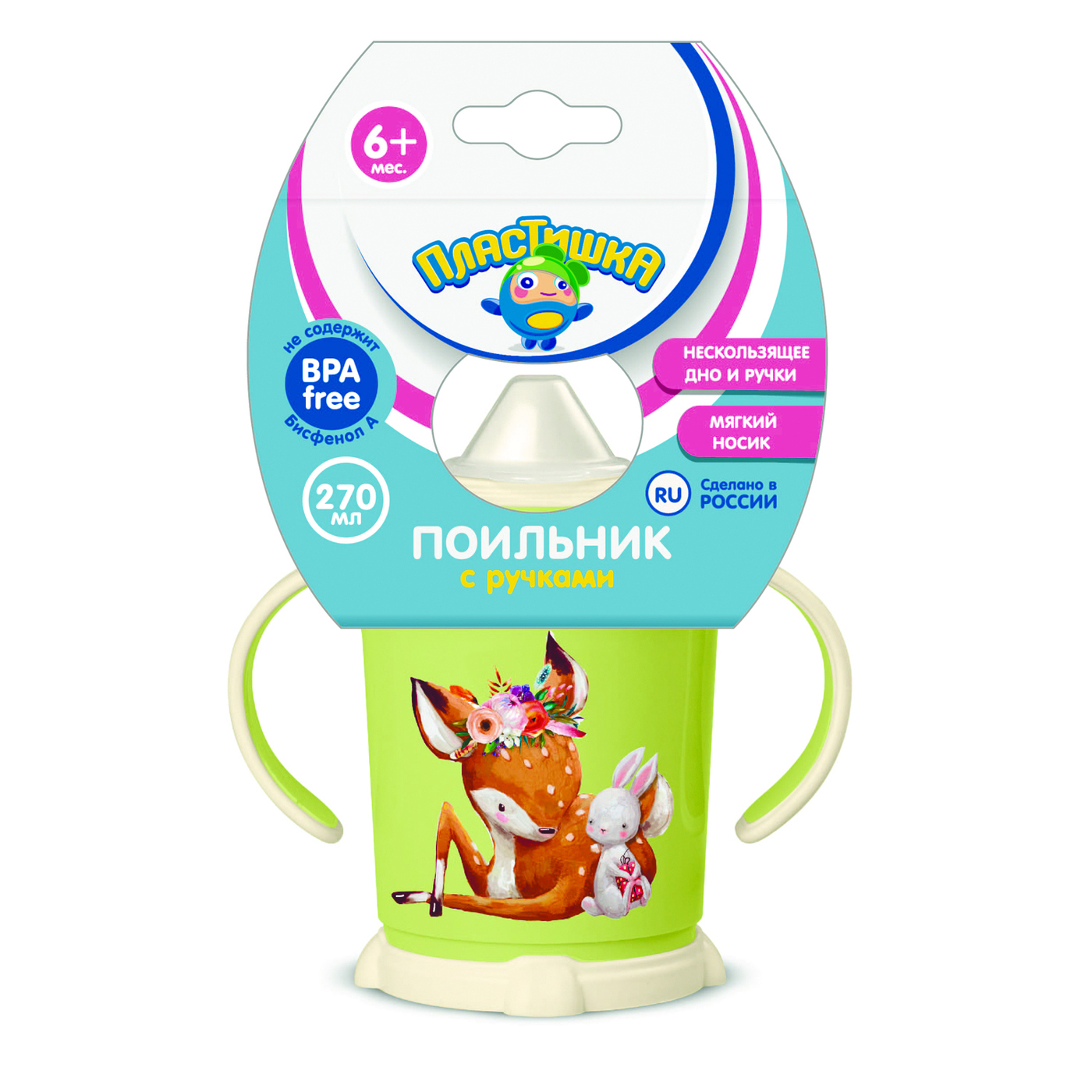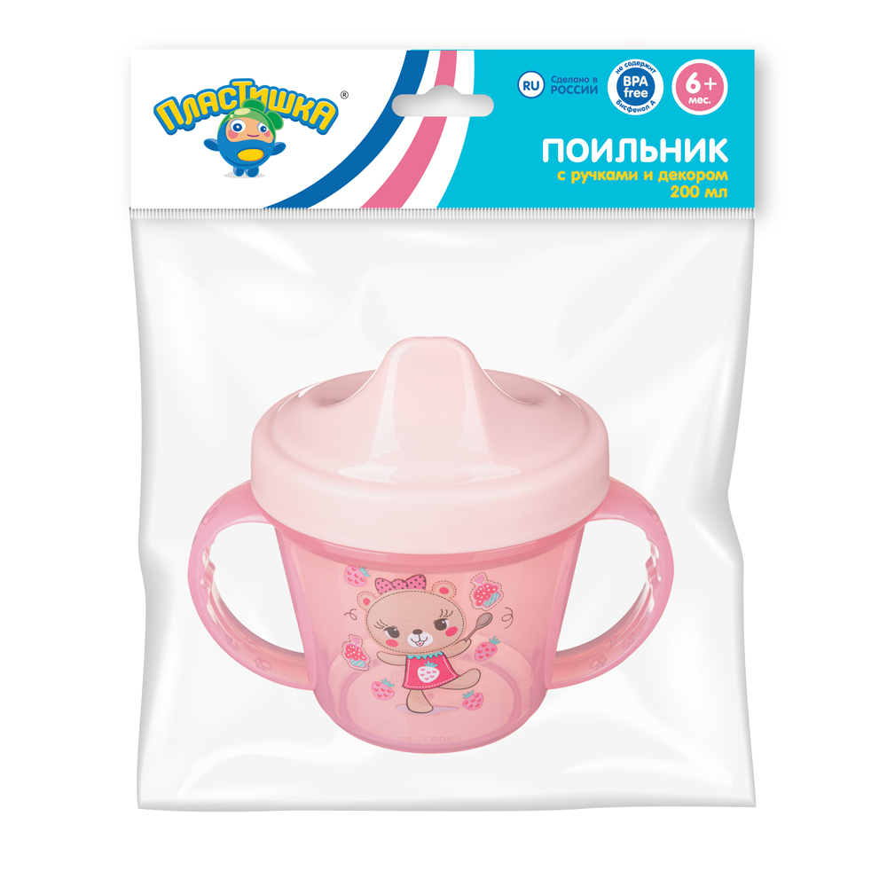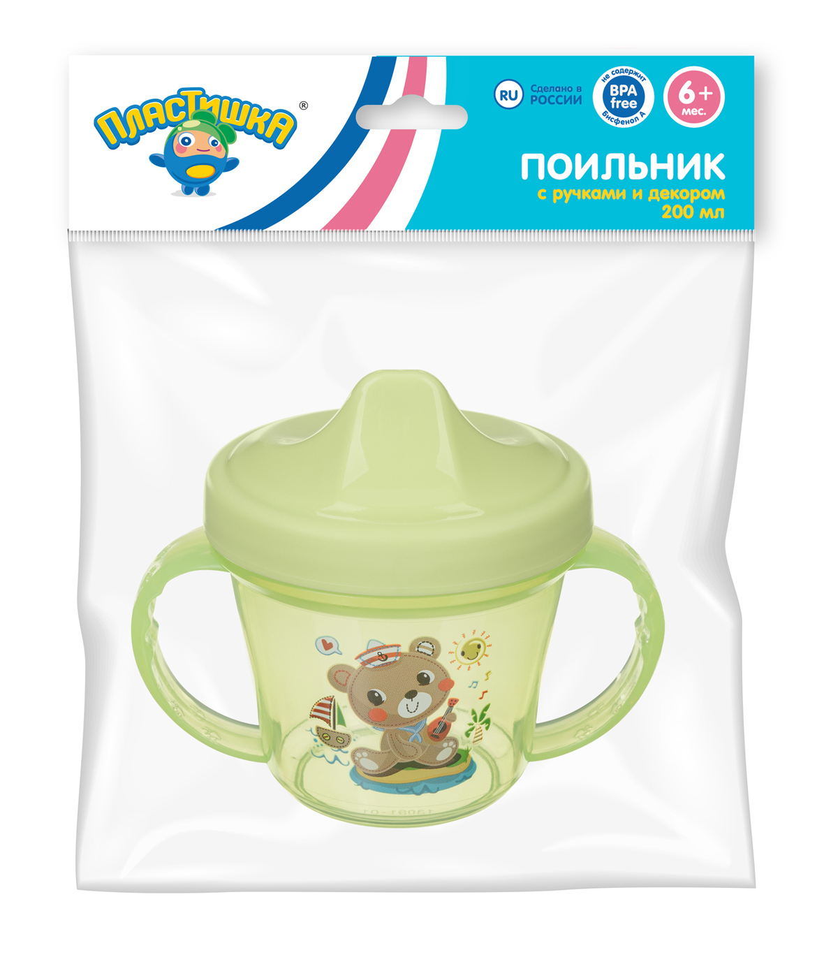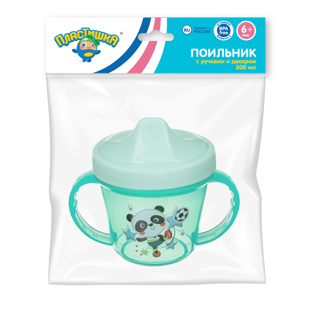 Поильник с ручками и декором "Пластишка" поможет научить ребенка пить самостоятельно и пригодится в дороге. Мягкий носик не вредит развитию ротовой полости малыша и делает питье очень легким, а специальный колпачок предохраняет носик поильника от грязи и пыли. Обучающие ручки помогут малышу держать поильник самостоятельно, при этом специальное покрытие на ручках и дне поильника предотвратит его скольжение во время использования. Поильник легко разбирается и моется: благодаря простой конструкции внутри не образуется плесень. Сняв крышку, поильник можно использовать как обычную чашку. Декор нанесен с помощью IML-технологии, при которой этикетка вплавляется в изделие, поэтому изображение не стирается в процессе использования. Поильник выпускается в трёх нежных цветах (голубой, зелёный, розовый). Он является частью линейки «Пластишка», объединённой единым стилевым решением: мама может собрать всю серию товаров для кормления с полюбившимися героями. Производится в России из высококачественного полипропилена.