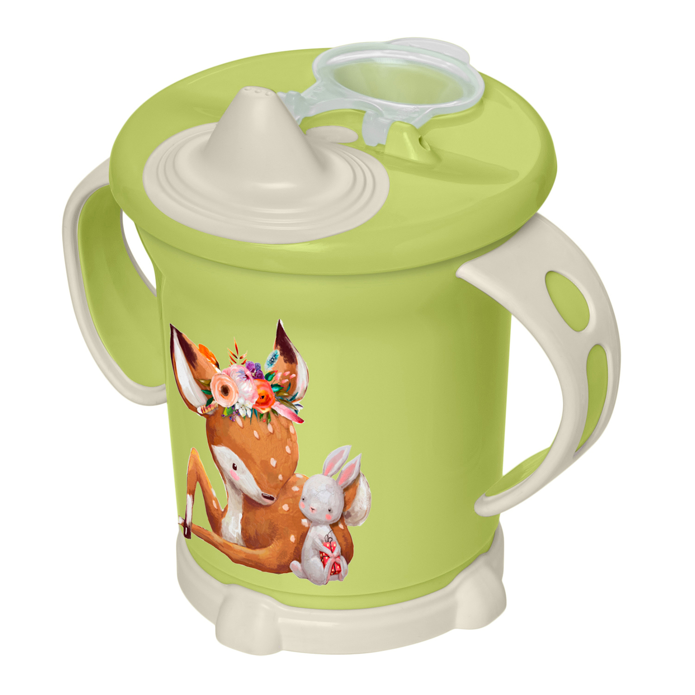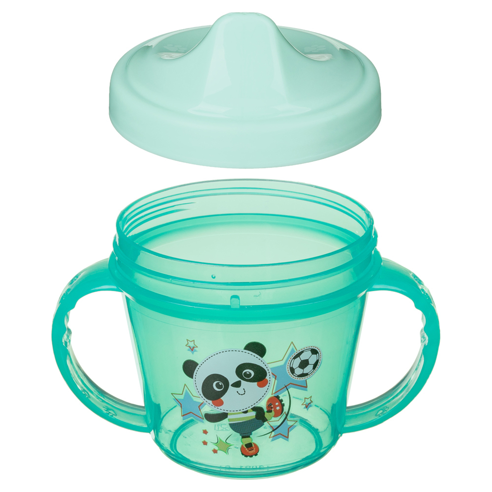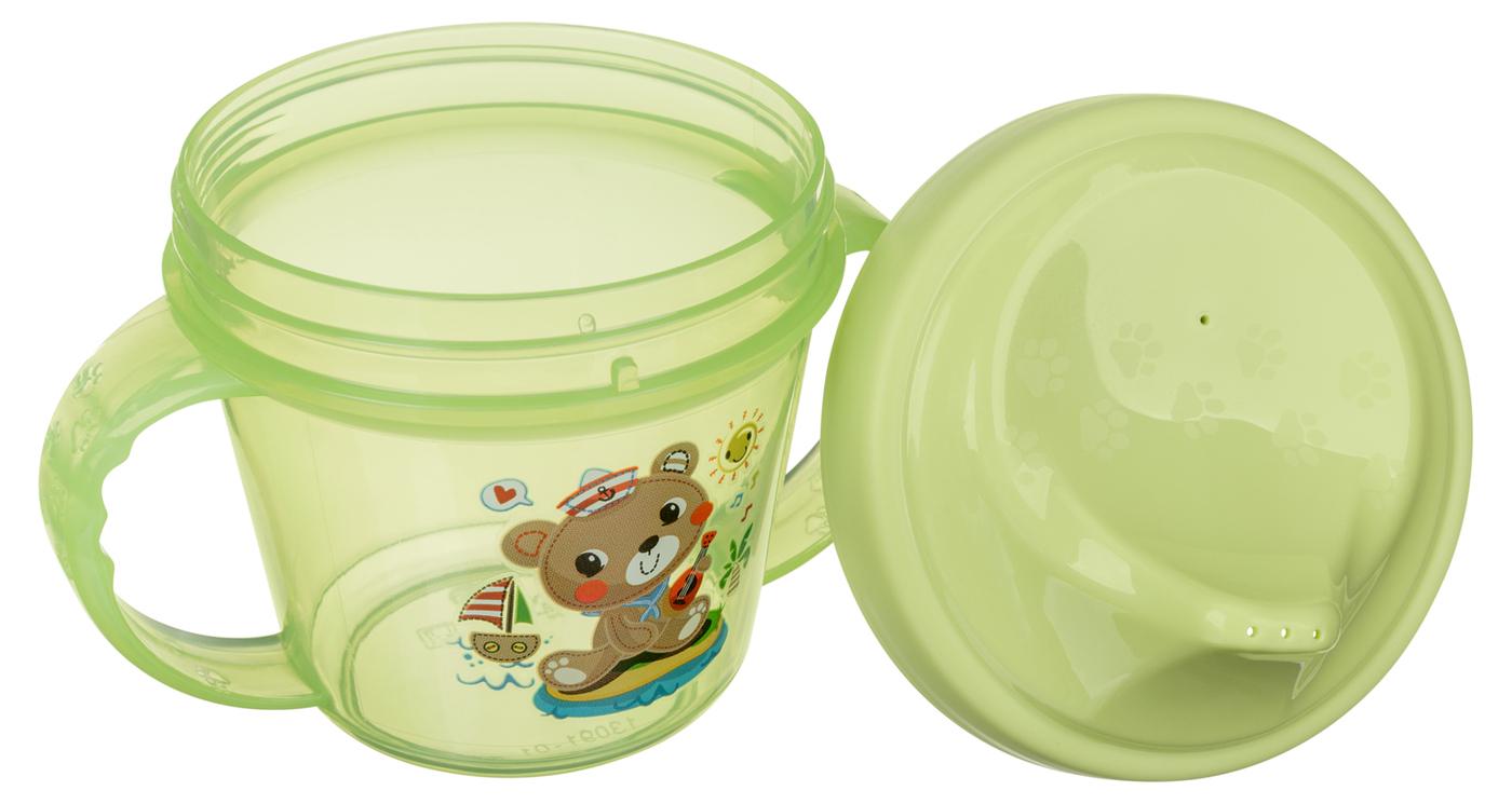 Поильник с ручками и декором "Пластишка" поможет научить ребенка пить самостоятельно и пригодится в дороге. Мягкий носик не вредит развитию ротовой полости малыша и делает питье очень легким, а специальный колпачок предохраняет носик поильника от грязи и пыли. Обучающие ручки помогут малышу держать поильник самостоятельно, при этом специальное покрытие на ручках и дне поильника предотвратит его скольжение во время использования. Поильник легко разбирается и моется: благодаря простой конструкции внутри не образуется плесень. Сняв крышку, поильник можно использовать как обычную чашку. Декор нанесен с помощью IML-технологии, при которой этикетка вплавляется в изделие, поэтому изображение не стирается в процессе использования. Поильник выпускается в трёх нежных цветах (голубой, зелёный, розовый). Он является частью линейки «Пластишка», объединённой единым стилевым решением: мама может собрать всю серию товаров для кормления с полюбившимися героями. Производится в России из высококачественного полипропилена.