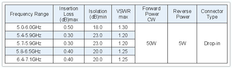 【RF циркулятор/изолятор параметри】