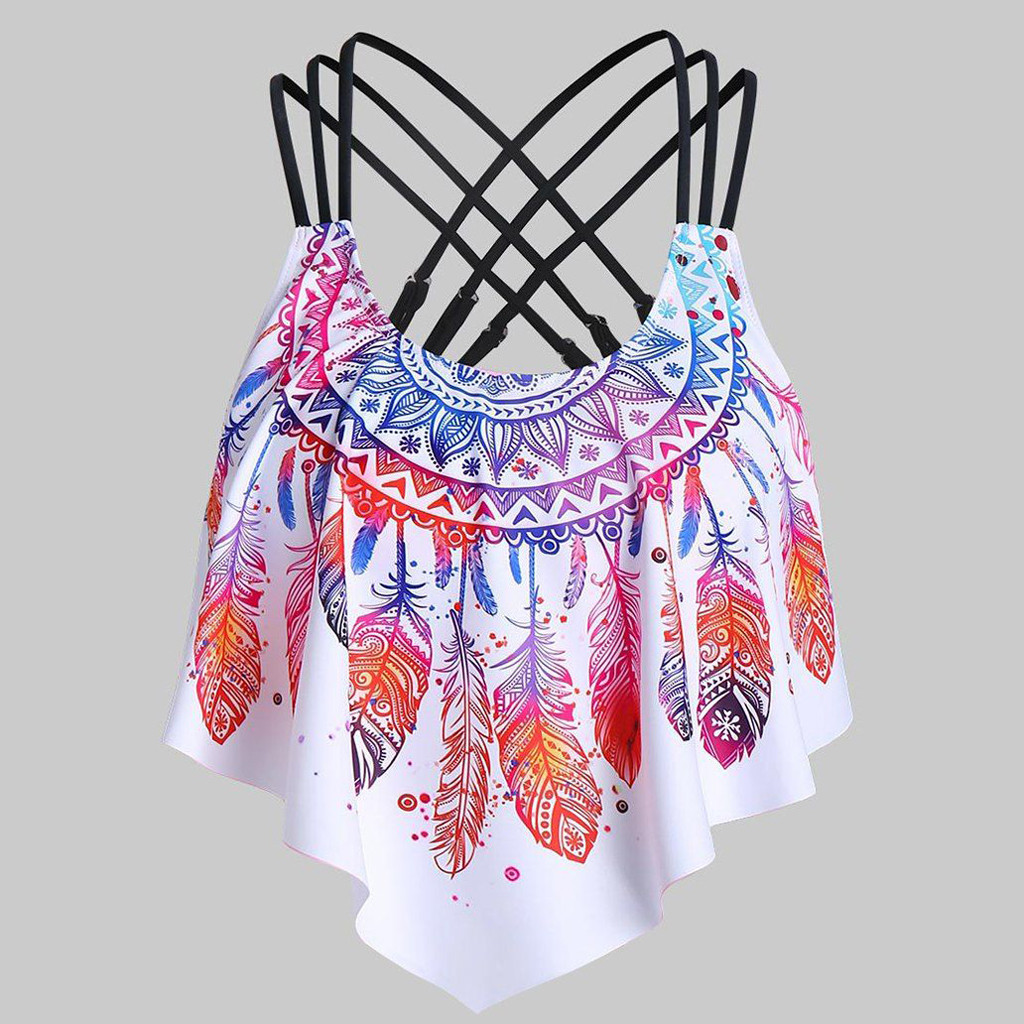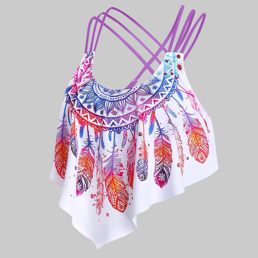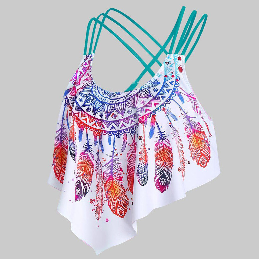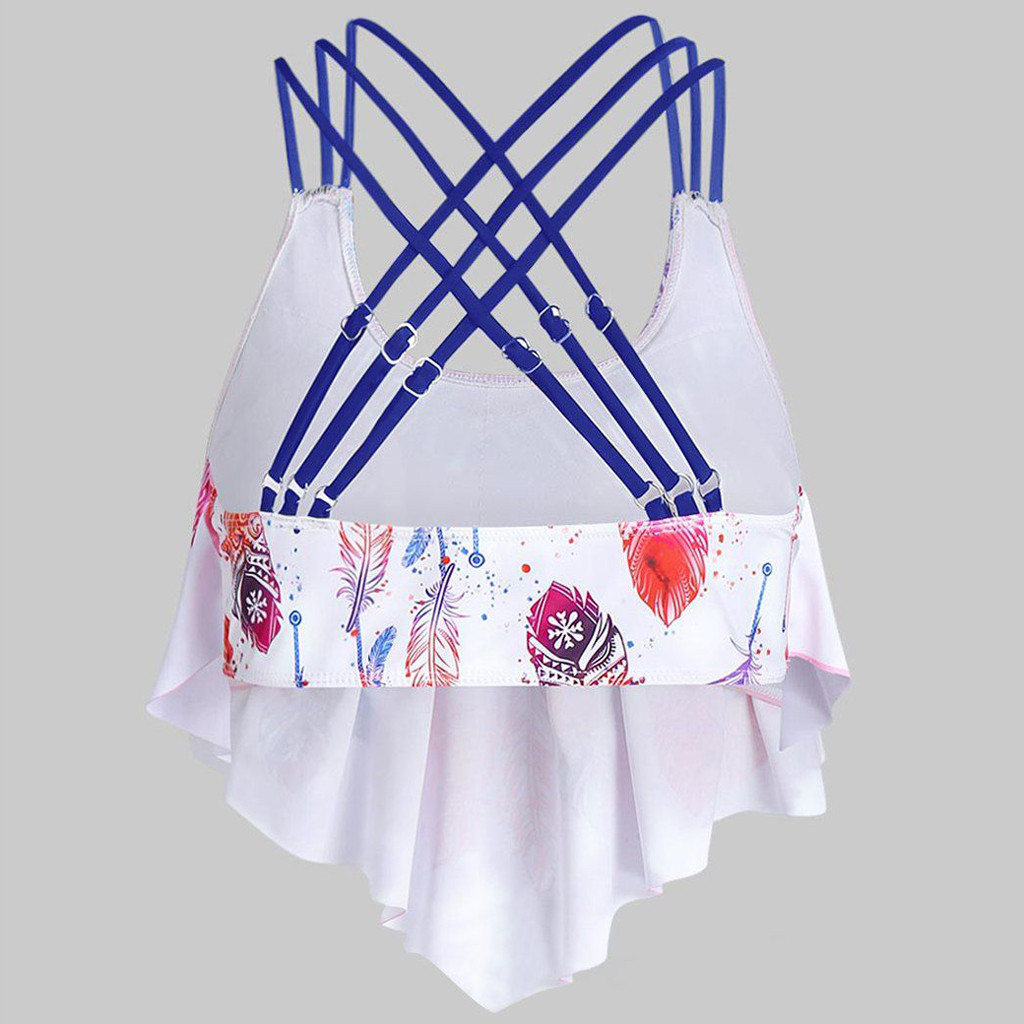 Женский топ для плавания с оборками и перекрещивающимися полосками