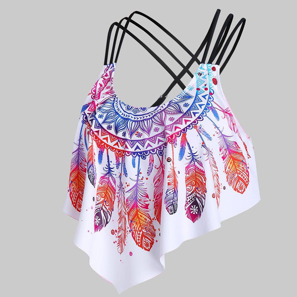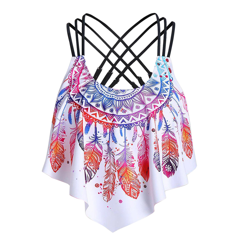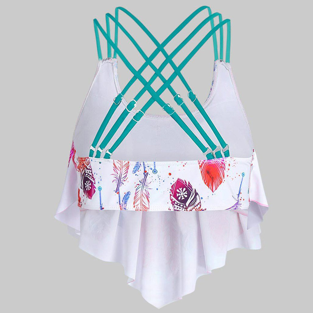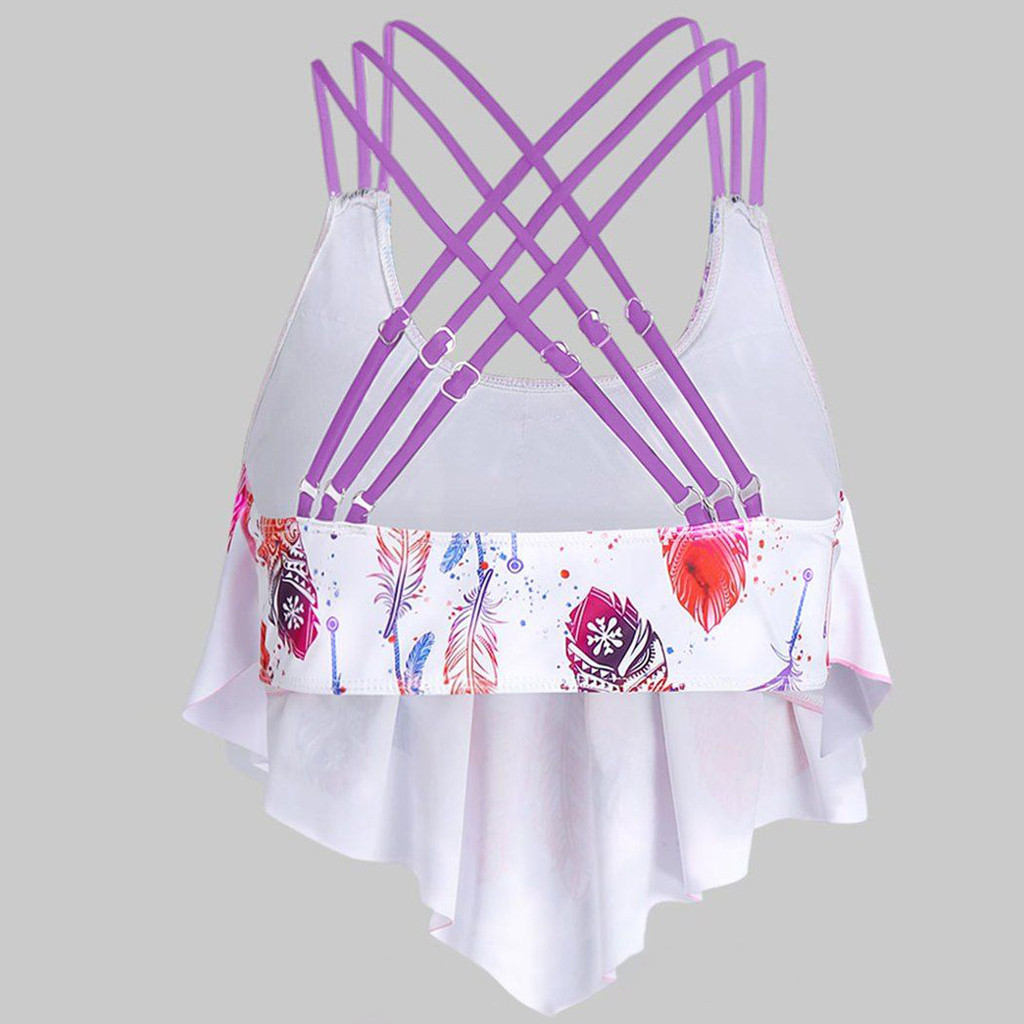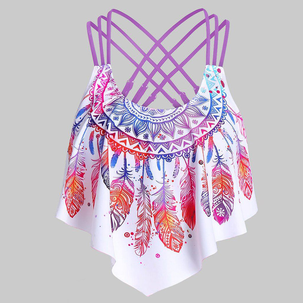 Женский топ для плавания с оборками и перекрещивающимися полосками