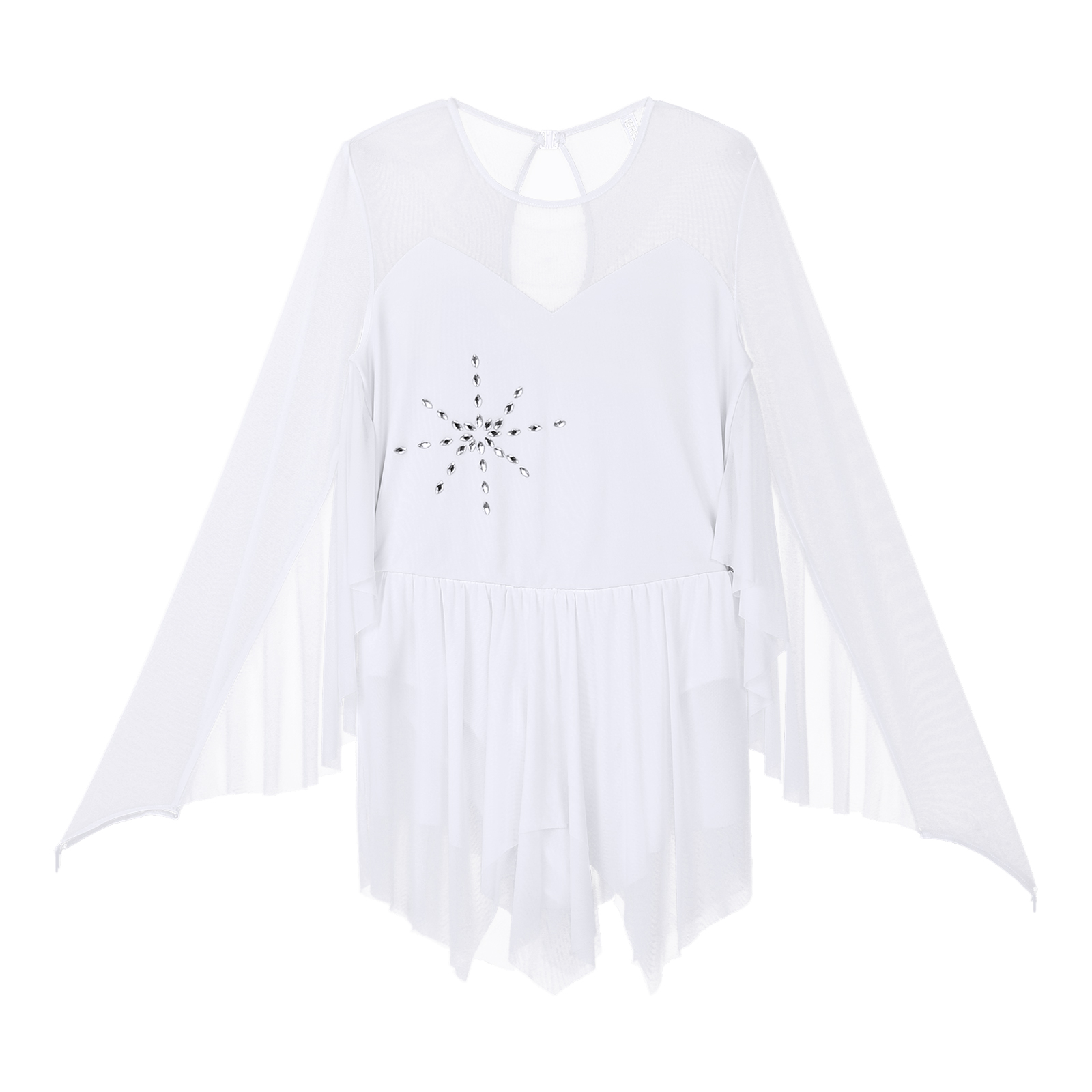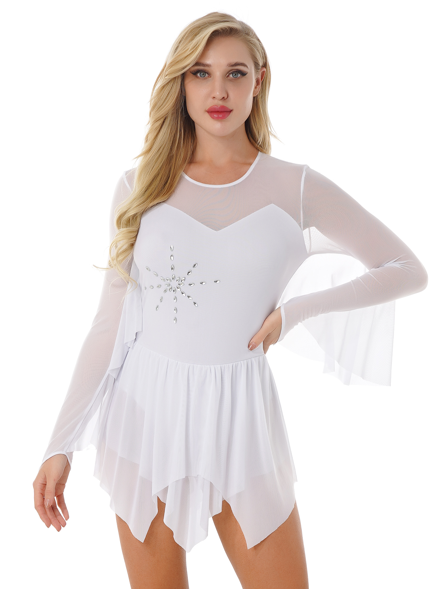 Женский горный хрусталь платье для фигурного катания прозрачное Сетчатое платье с рукавом летучая мышь асимметричное платье с подолом.