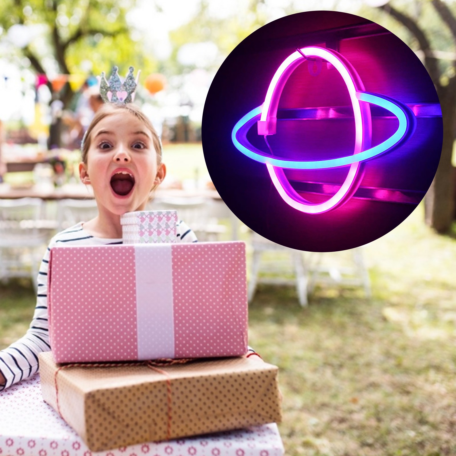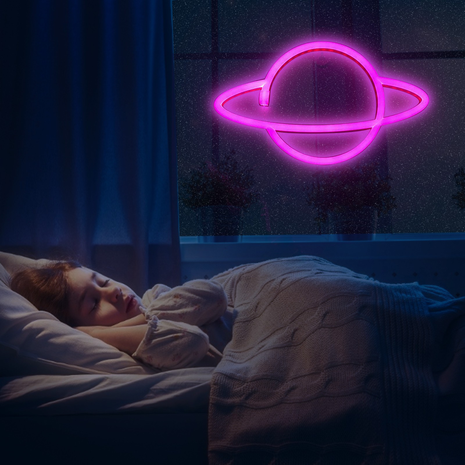 Водонепроницаемый неоновый свет планеты синий/розовый LED Вывеска украшения стены, батарея/USB powered planet light blue planet неоновый свет дома, детская комната, бар, праздничные вечерние, рождественские, Свадебные огни