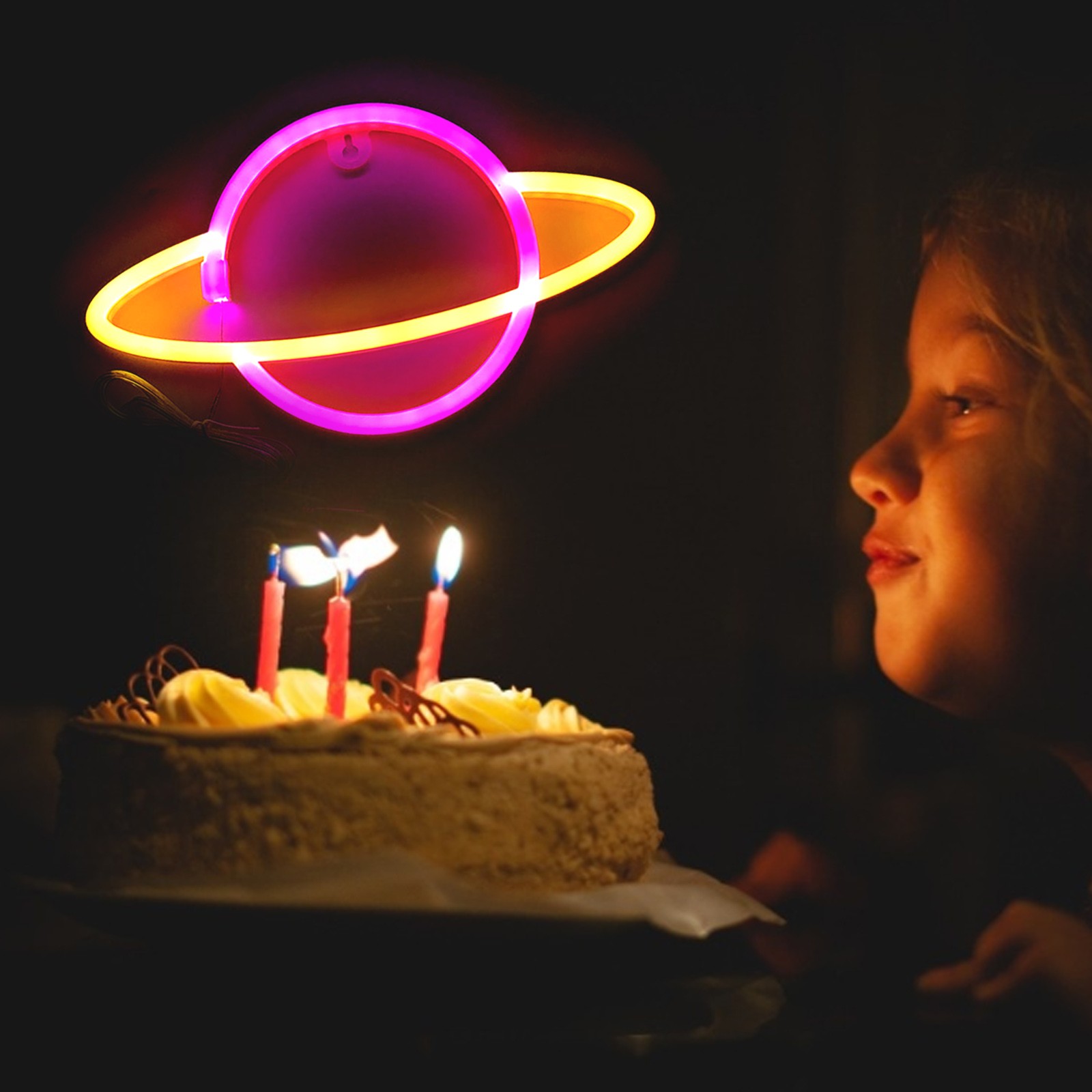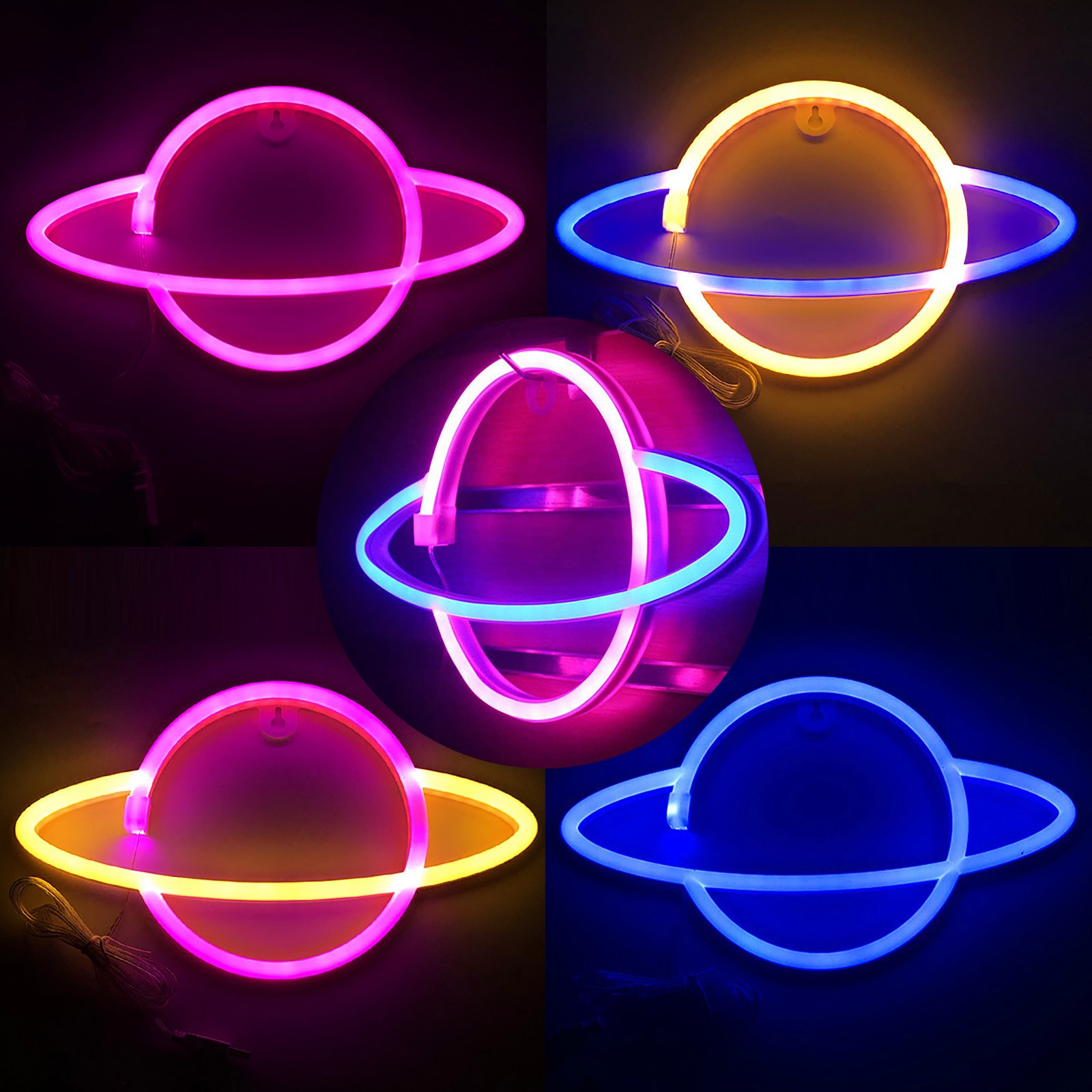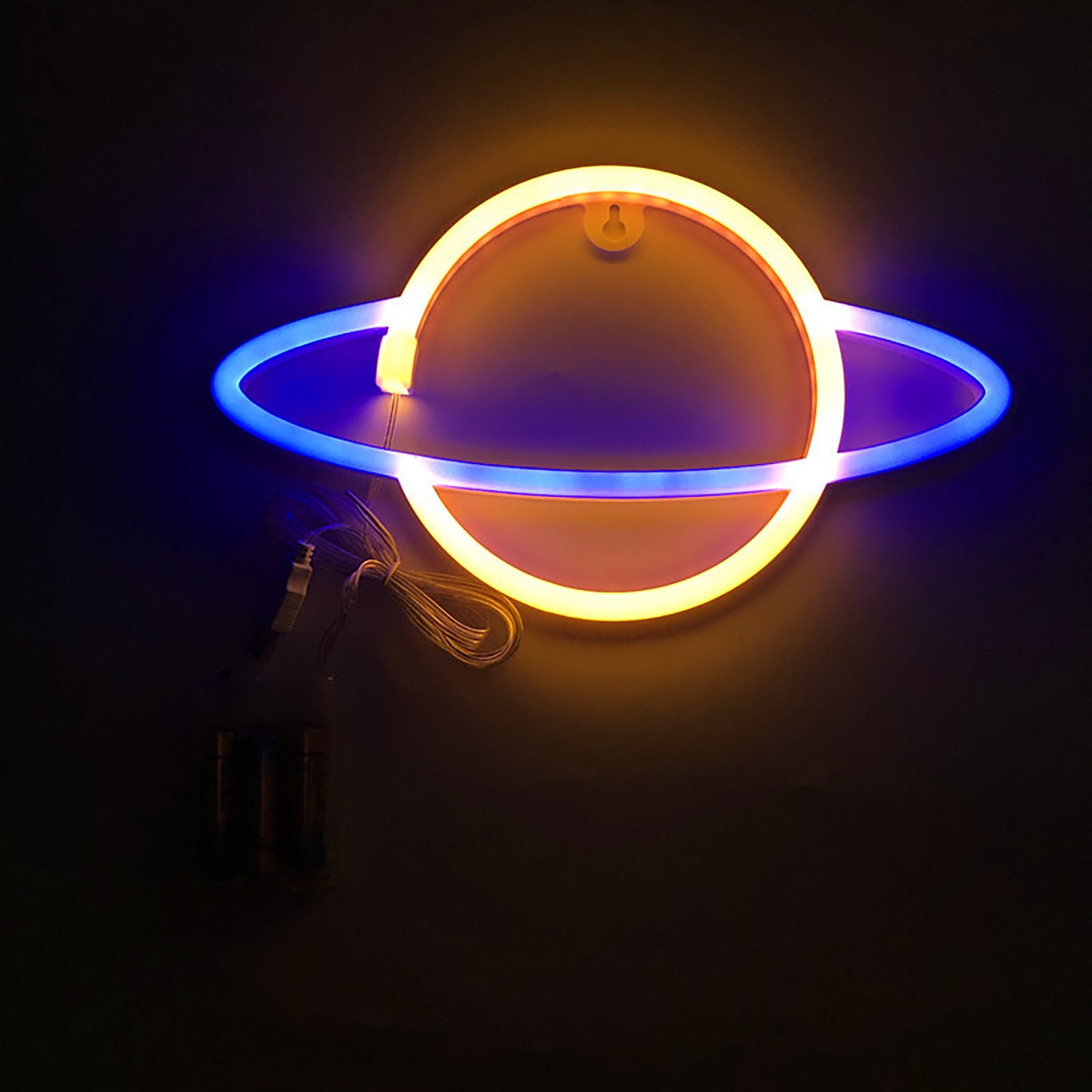 [USB и источник питания батареи, легко разместить] = планетарные неоновые огни нужны только батарейки АА (не входят в комплект). За неоновым знаком есть отверстие. Вы можете положить его на стол. Простота в эксплуатации.