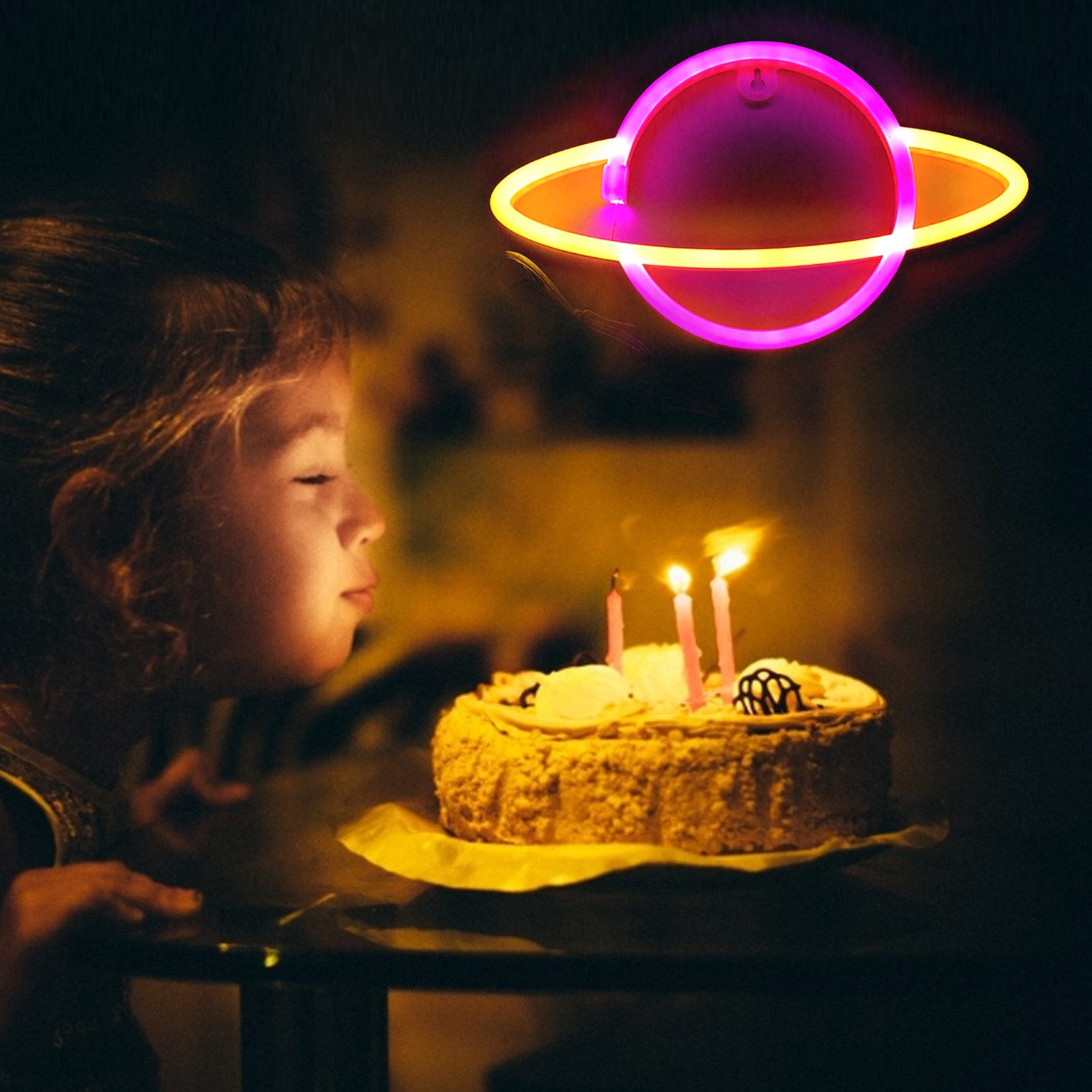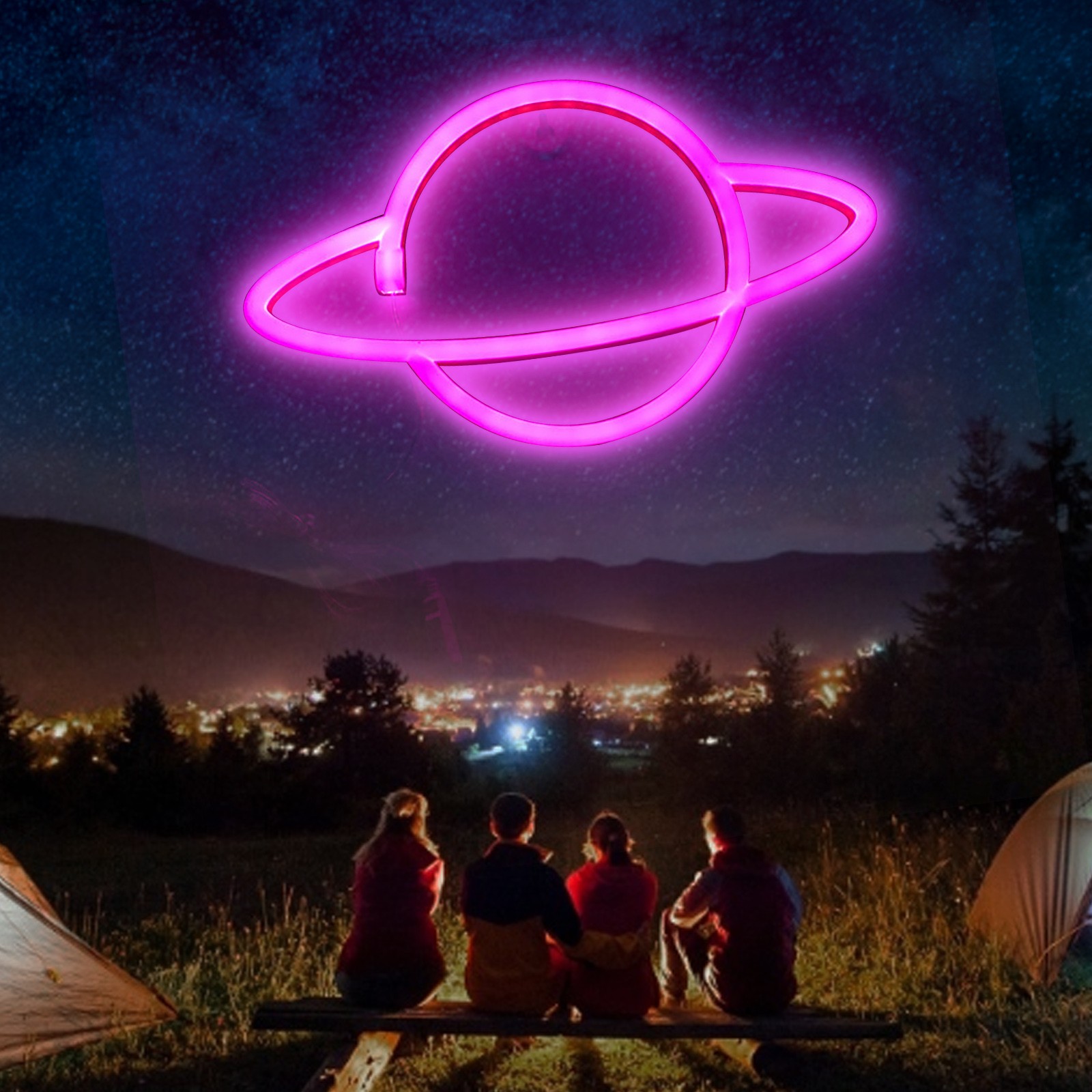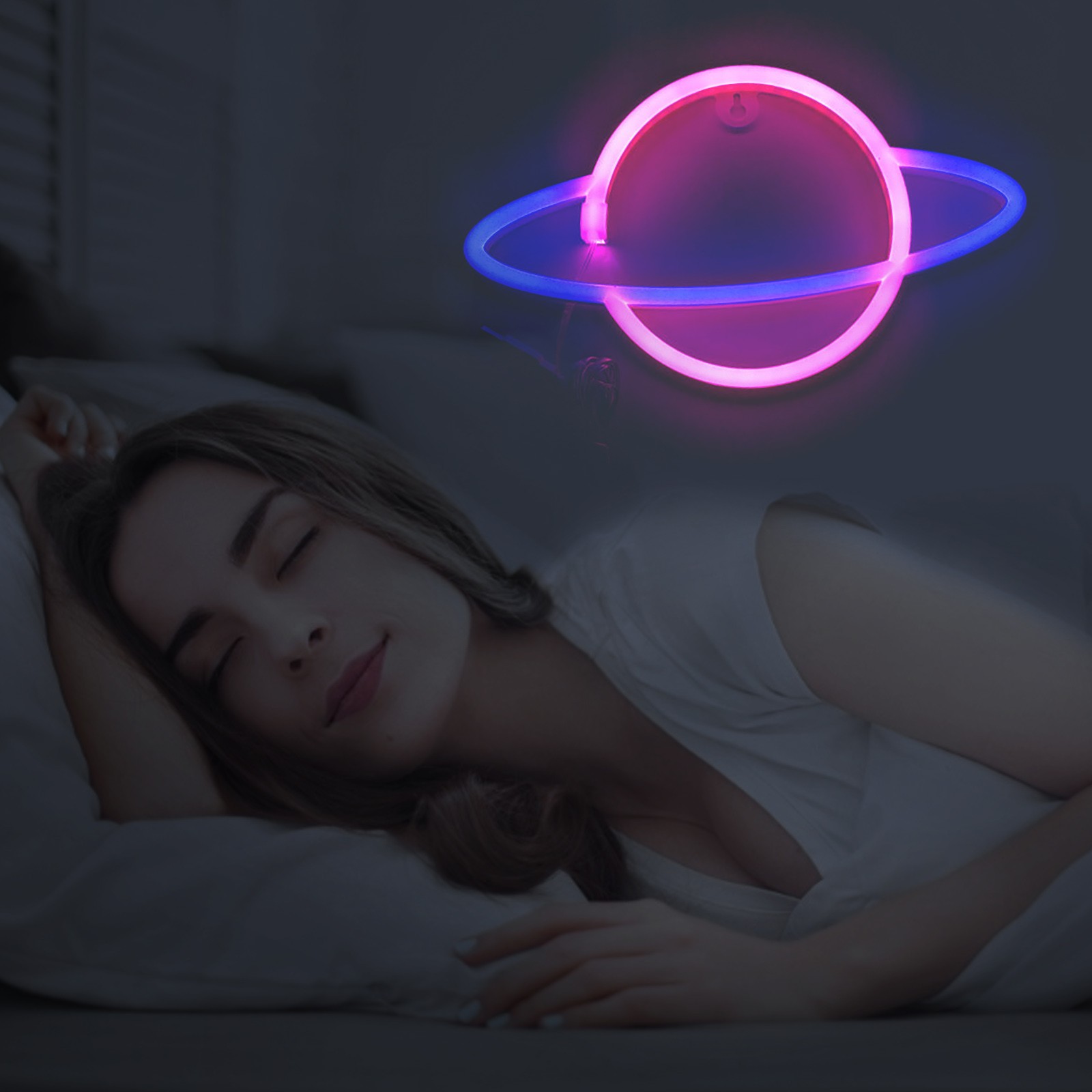 [USB и источник питания батареи, легко разместить] = планетарные неоновые огни нужны только батарейки АА (не входят в комплект). За неоновым знаком есть отверстие. Вы можете положить его на стол. Простота в эксплуатации.