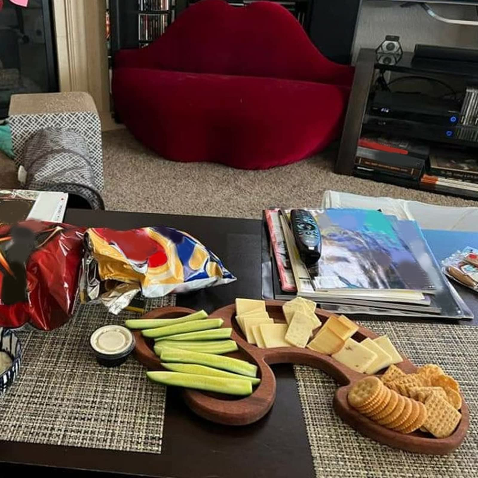 Практичный дизайн: выкопайте три больших пространства (желуди, стволы деревьев и бумажники) для хранения сыра, закусок, колбас, кексов, оливок, хлебных палочек, пирожных и домашней пищи.