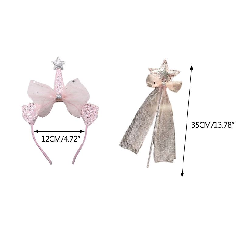 Рог единорога + обруч для волос с бантиком розовая тиара звезда волшебная палочка Набор для рождественских декораций M6CD