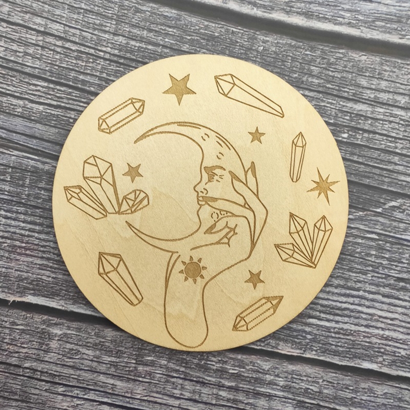 Характеристики: Изготовлен из высококачественной древесины, прочный и долговечный, имеет гладкую поверхность, которая вырезана с изысканным рисунком звезды и Луны. Дизайн этой доски-загадочная средневековая загадка.