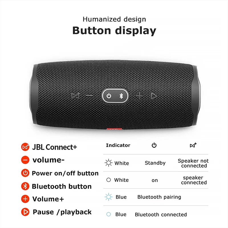 6.Charge4 использует один трек-динамик, который может обеспечить более громкое качество звука и более, погруженный в воду басовый эффект, а выходная мощность также была увеличена до 30 Вт. Двойные пассивные радиаторы могут излучать сильный звук захвата уха, громкий и четкий.