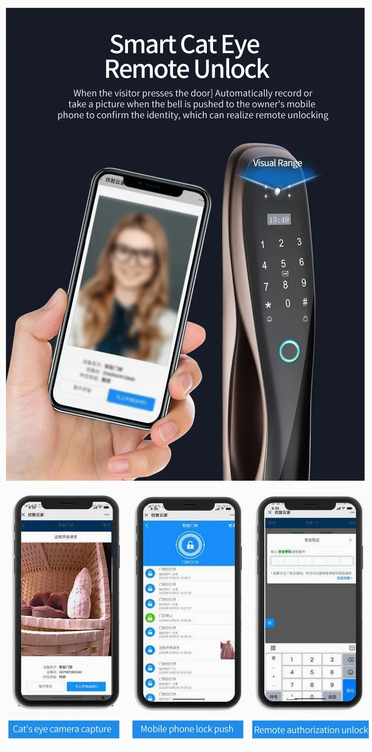 Заводская цена автоматическое распознавание камеры цифровой отпечаток пальца код карты ключ смарт Wifi приложение дистанционное управление домашний дверной замок