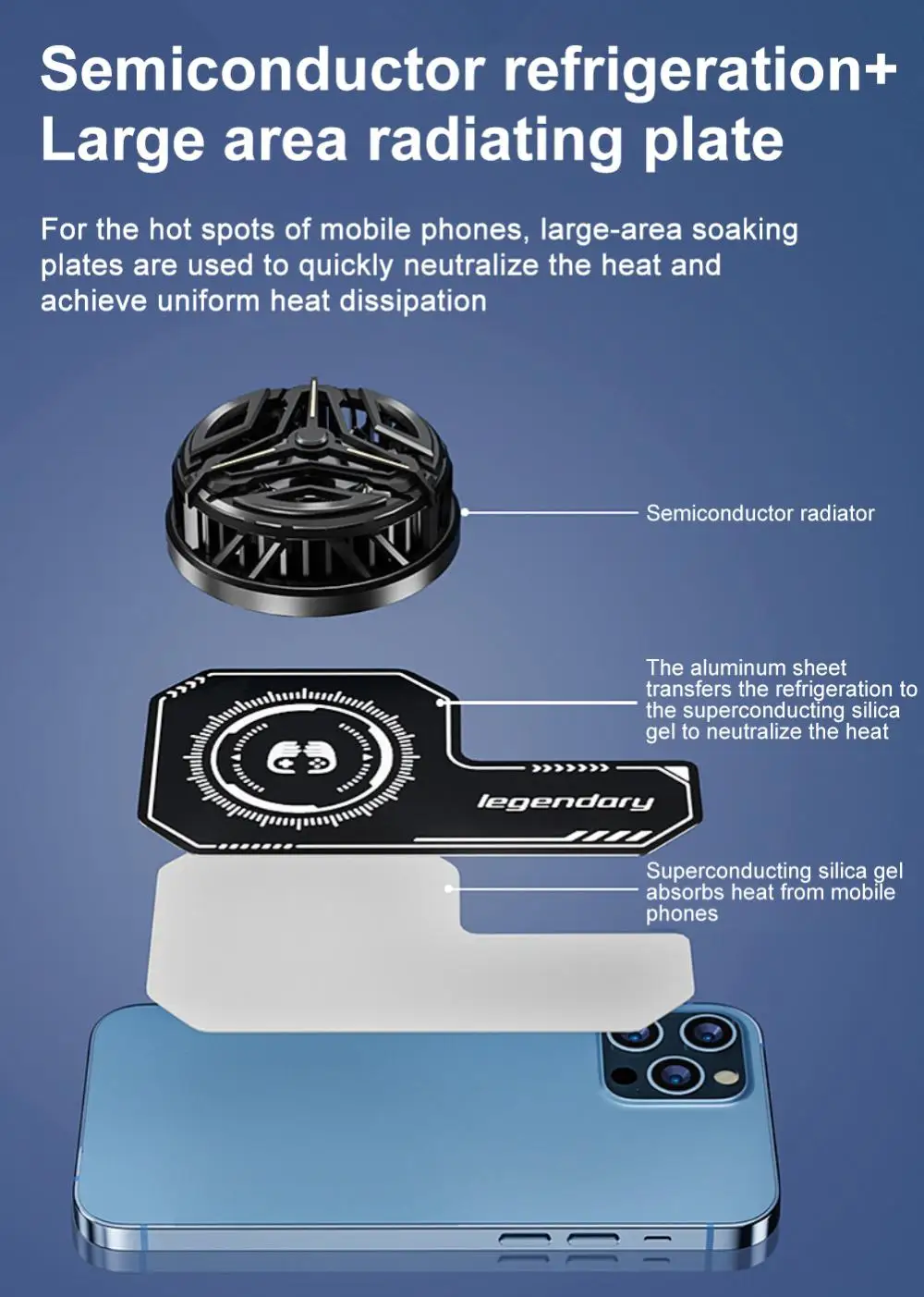 [Полупроводниковое охлаждение и большая площадь теплоотвода] для горячих точек сотового телефона, используя большую площадь даже теплоотвод, быстрая нейтрализация тепла для достижения равномерного эффекта рассеивания тепла.