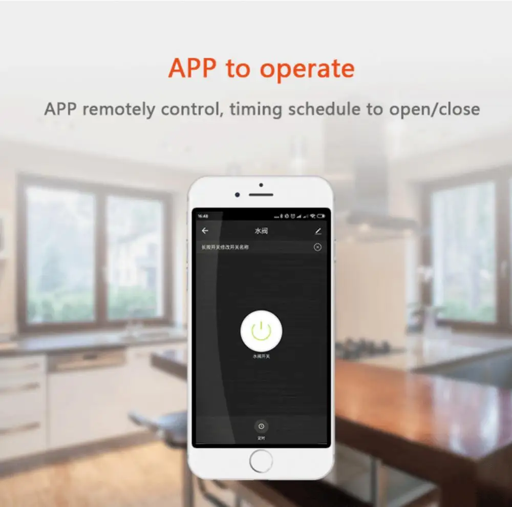 Вы можете закрыть или открыть клапан автоматически с помощью смартфона независимо от того, где вы .. Когда-либо, если вы находитесь вдали от дома, мобильный телефон можно дистанционно управлять, открыть клапан полива, чтобы поливать фермы, поливать сад и закрыть газовый клапан.