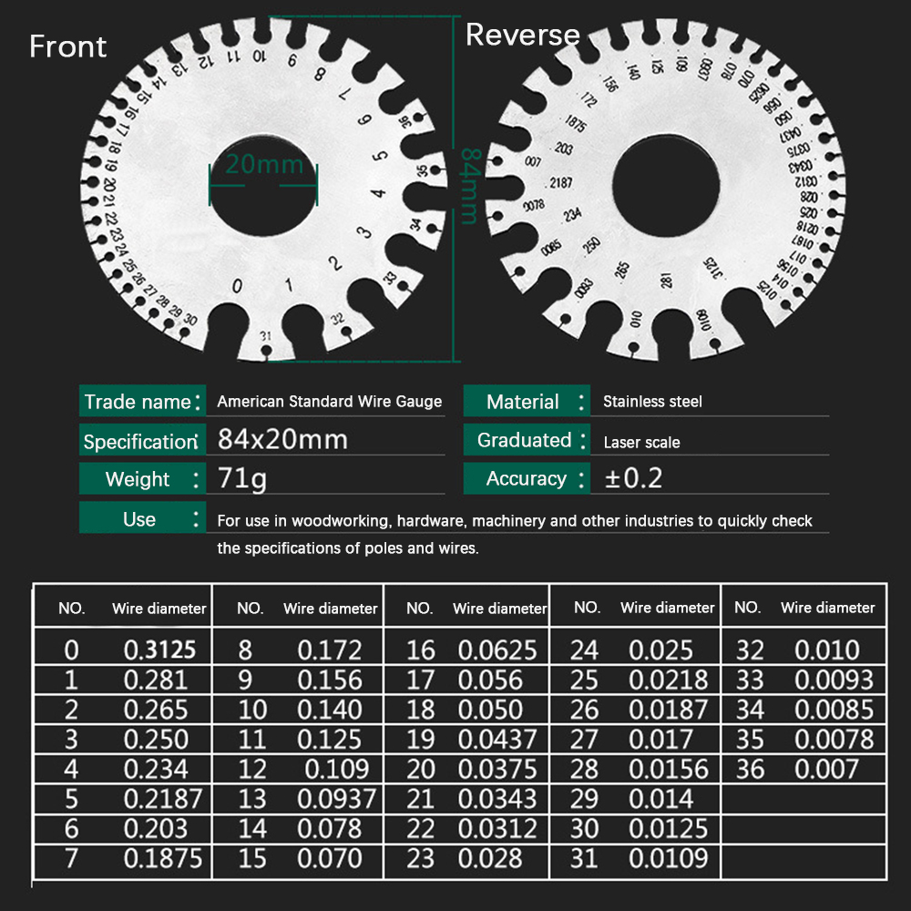 5. Проволочный манометр-отличный инструмент для измерения цветных и Металлических проводов, таких как медь, латунь, а также листового покрытия без покрытия, листового железа и стали.