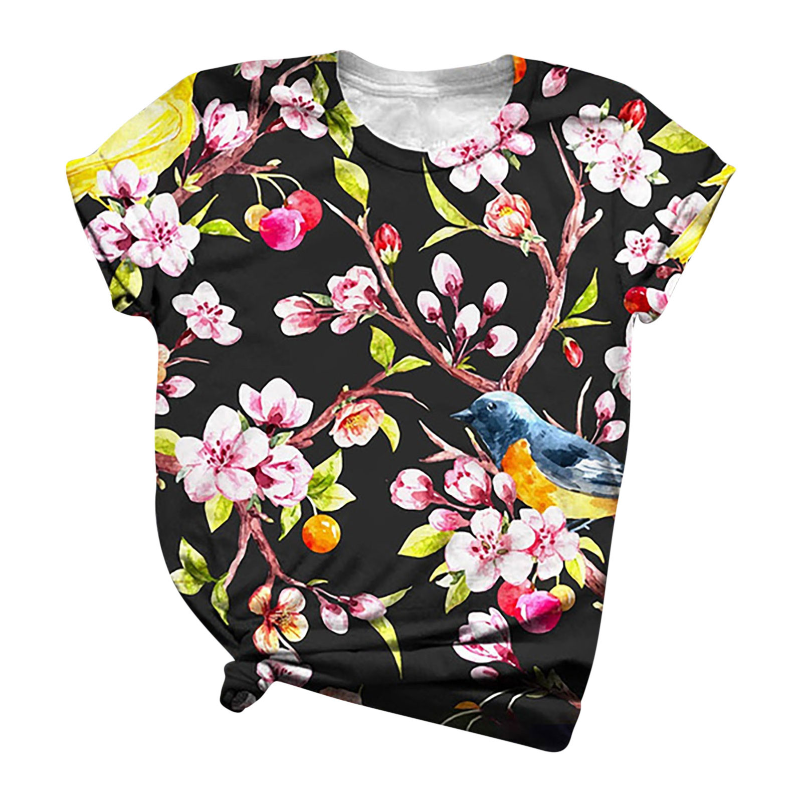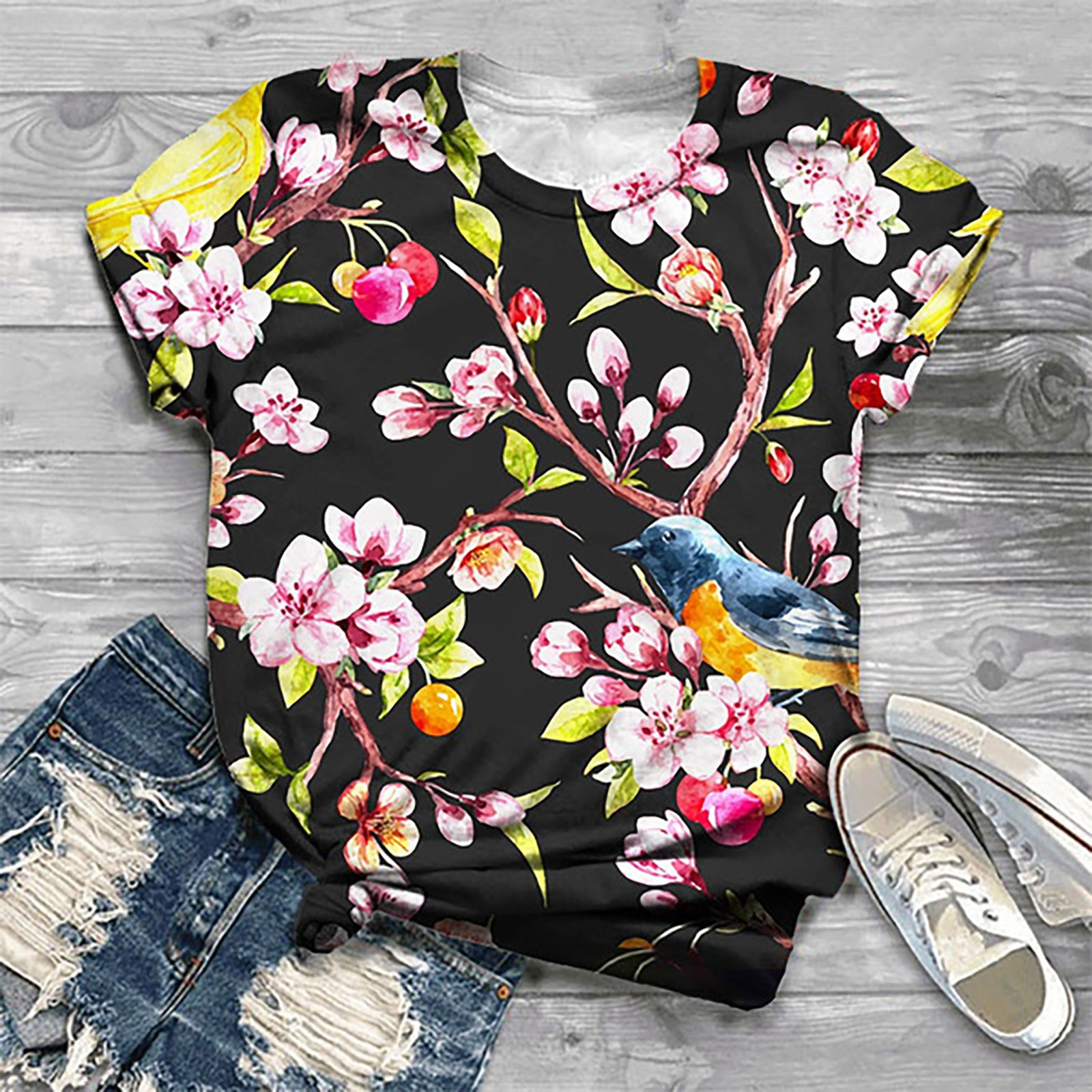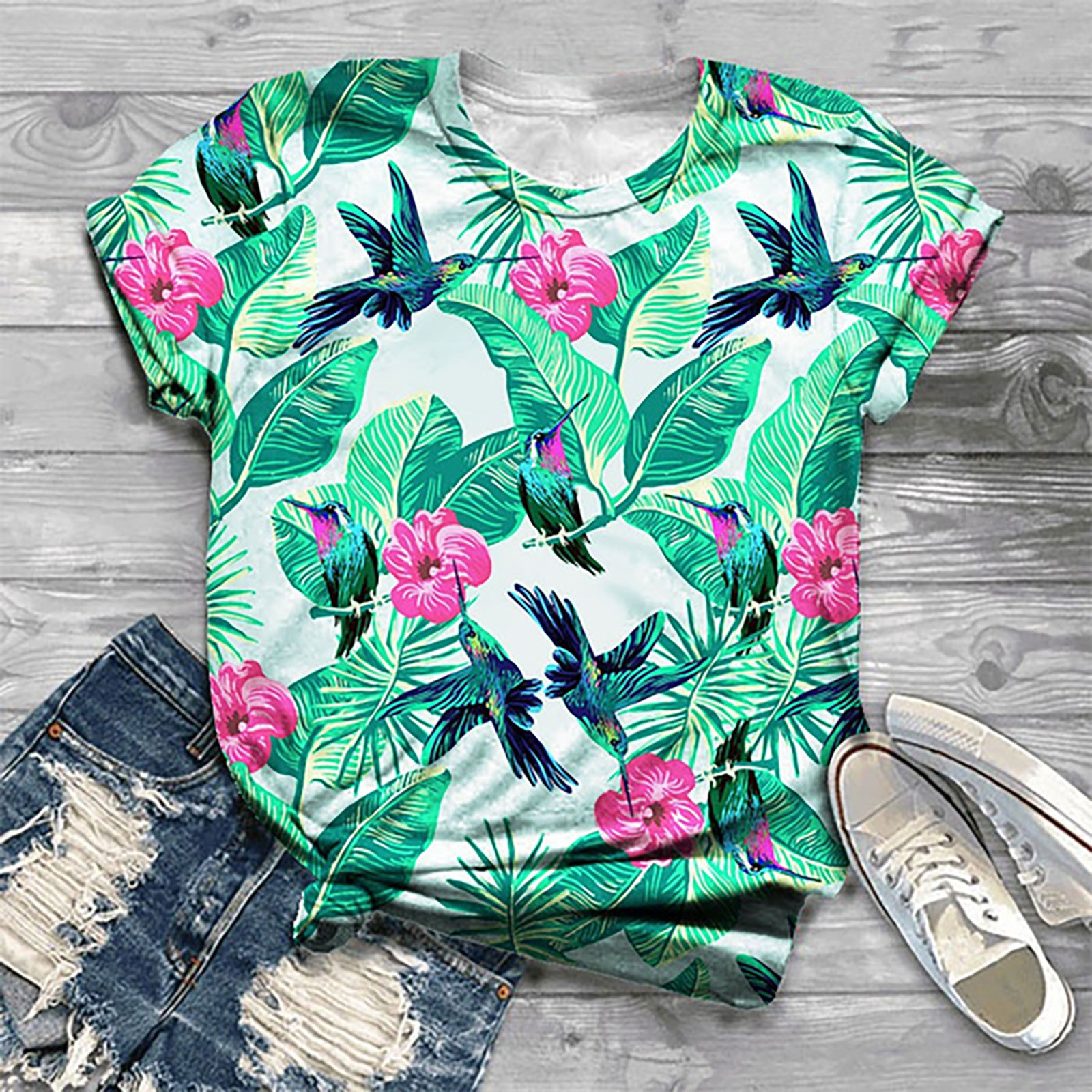 Летняя женская Эстетическая графическая футболка, новинка, абстрактные птицы, цветок, 3D принт, футболки, туника с коротким рукавом, Топы Harajuku, уличная одежда, A40