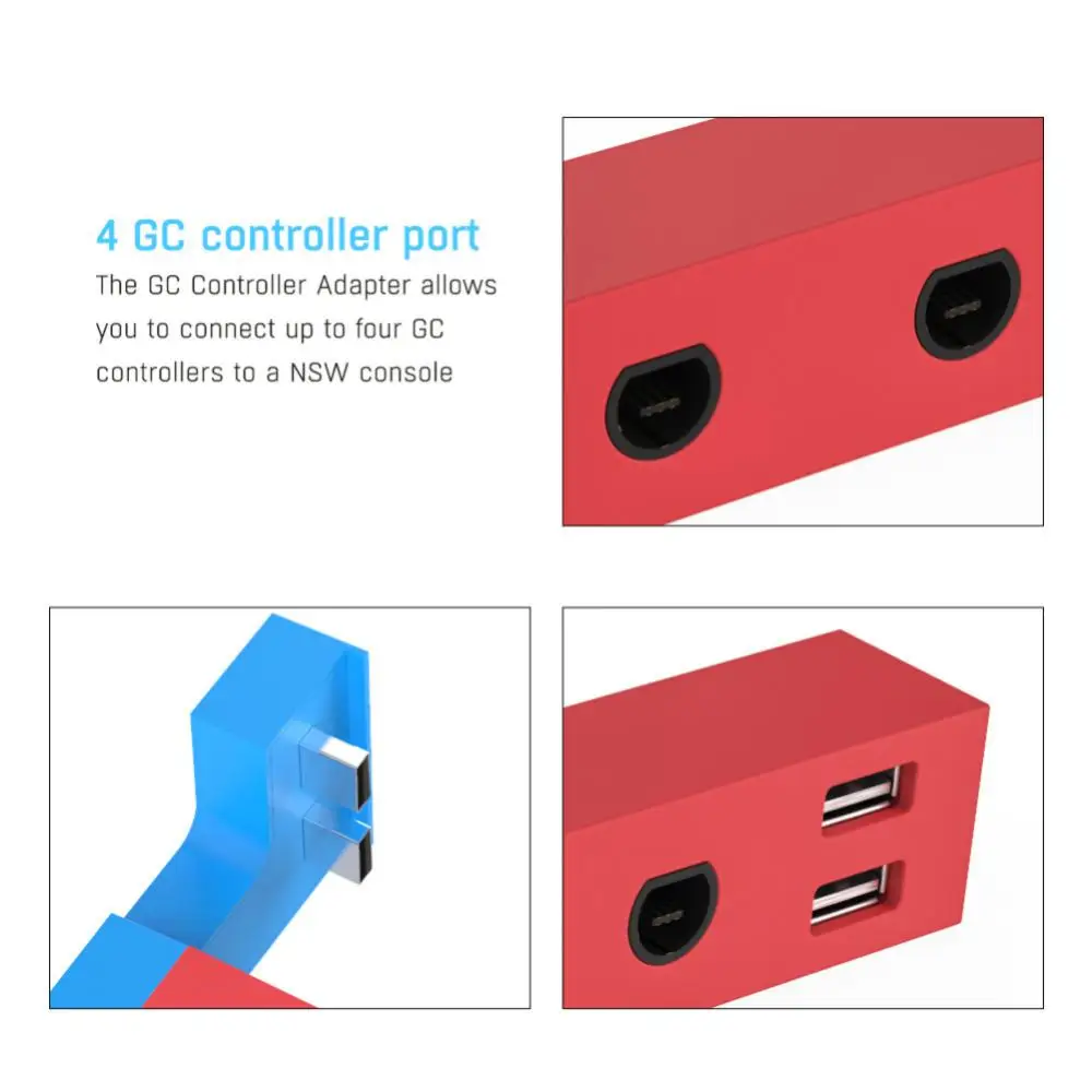 1. [4 геймпада могут быть подключены]: позволяет подключать 4 проводных контроллера GameCude одновременно, когда консоль заряжается в оригинальной телевизионной док-станции.