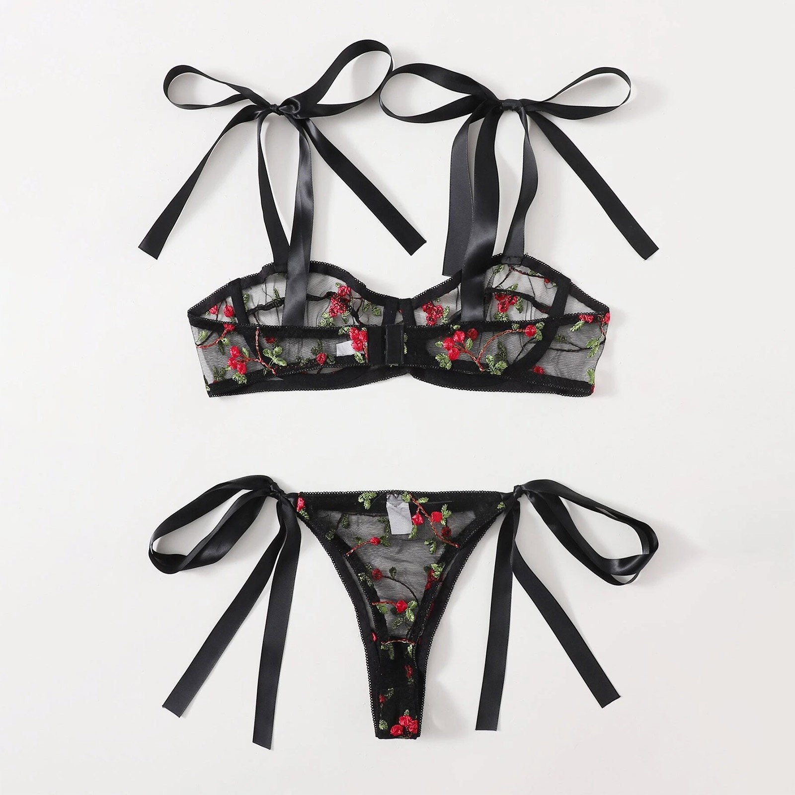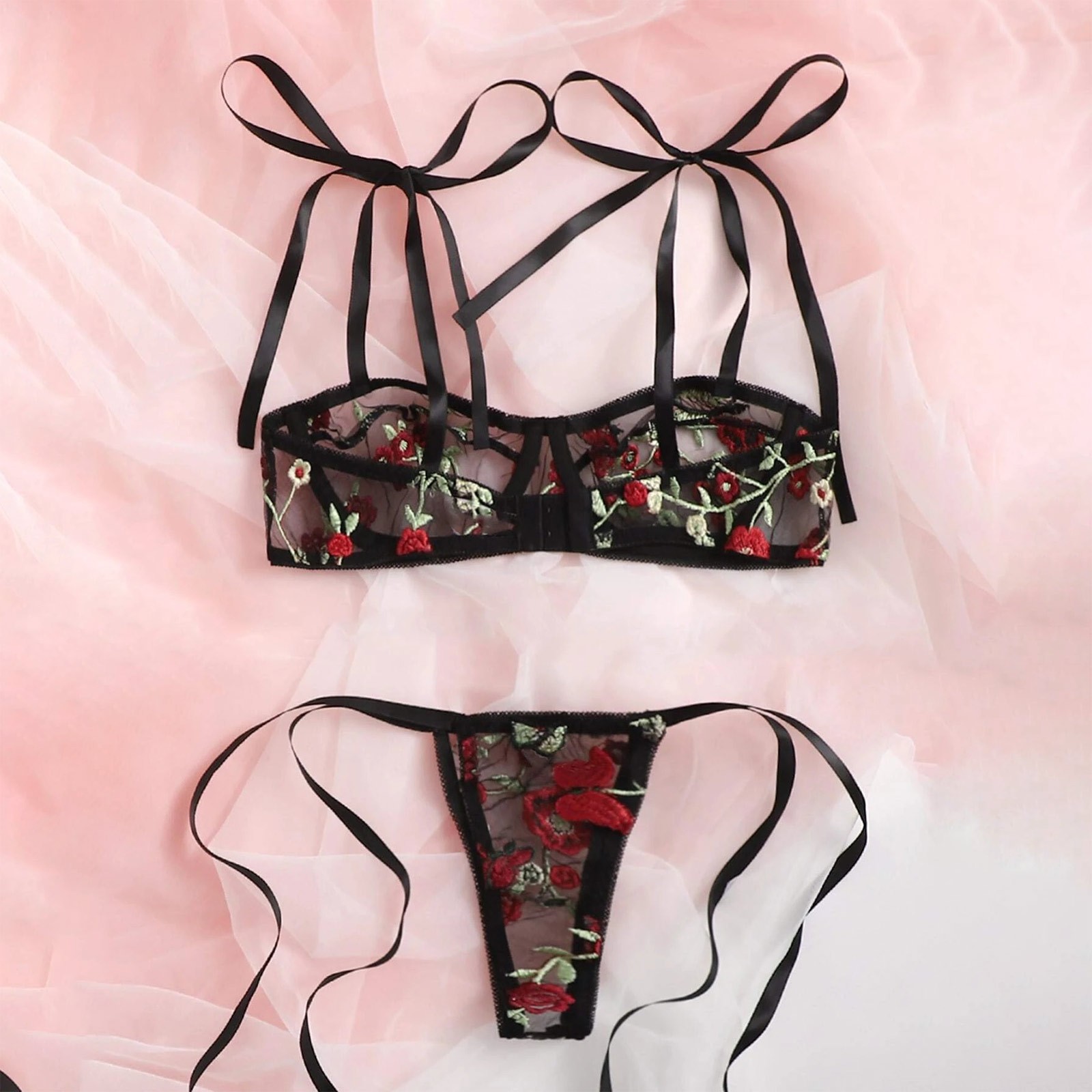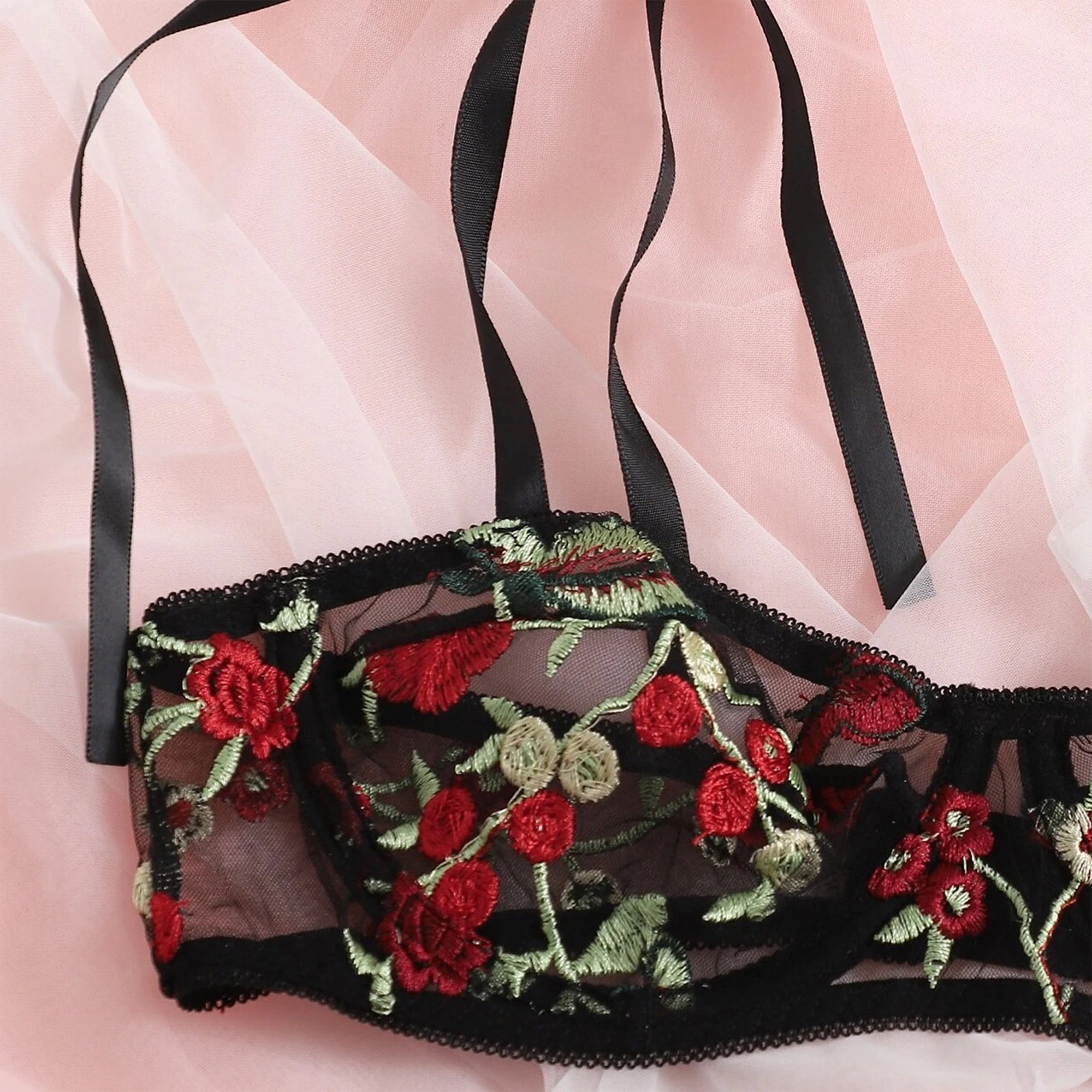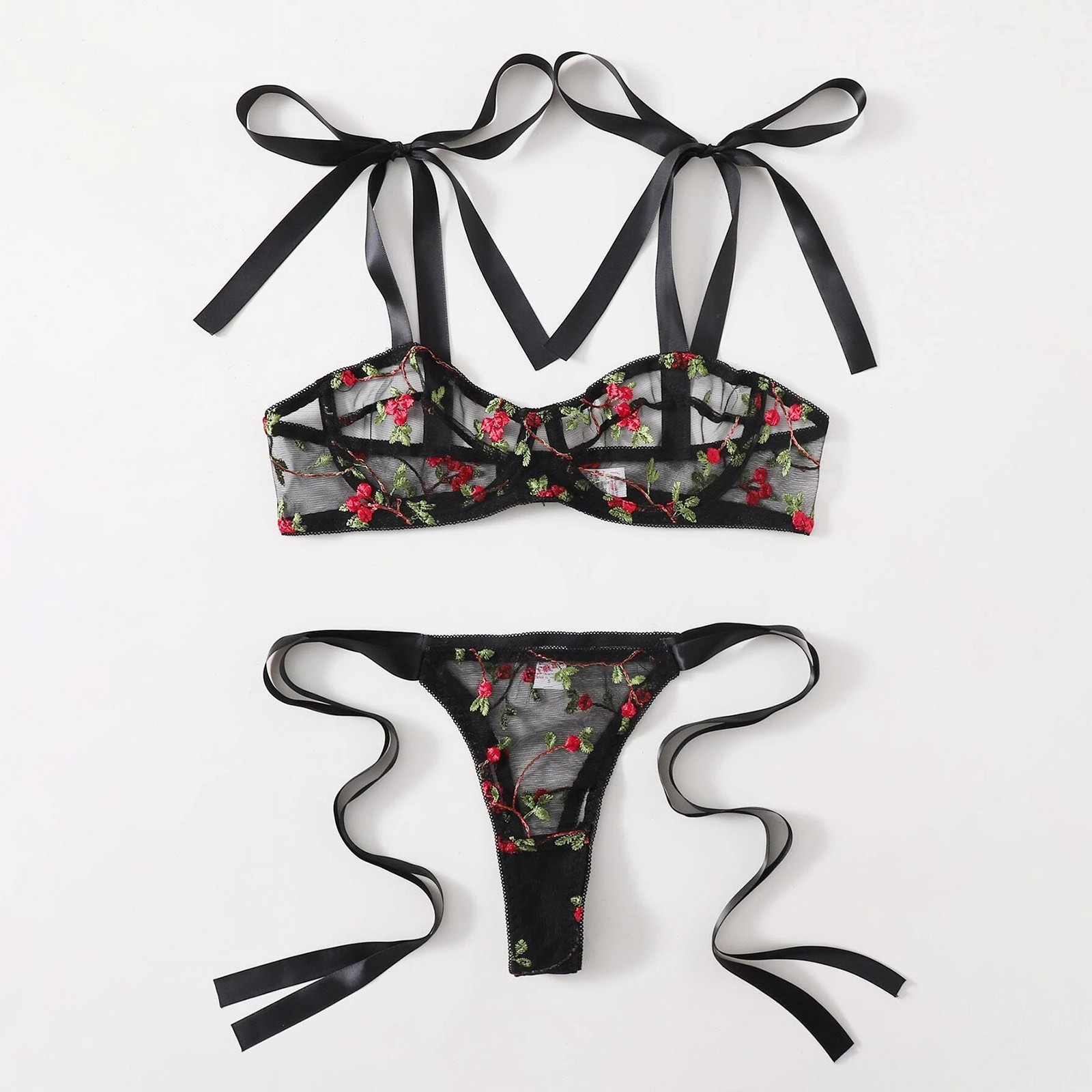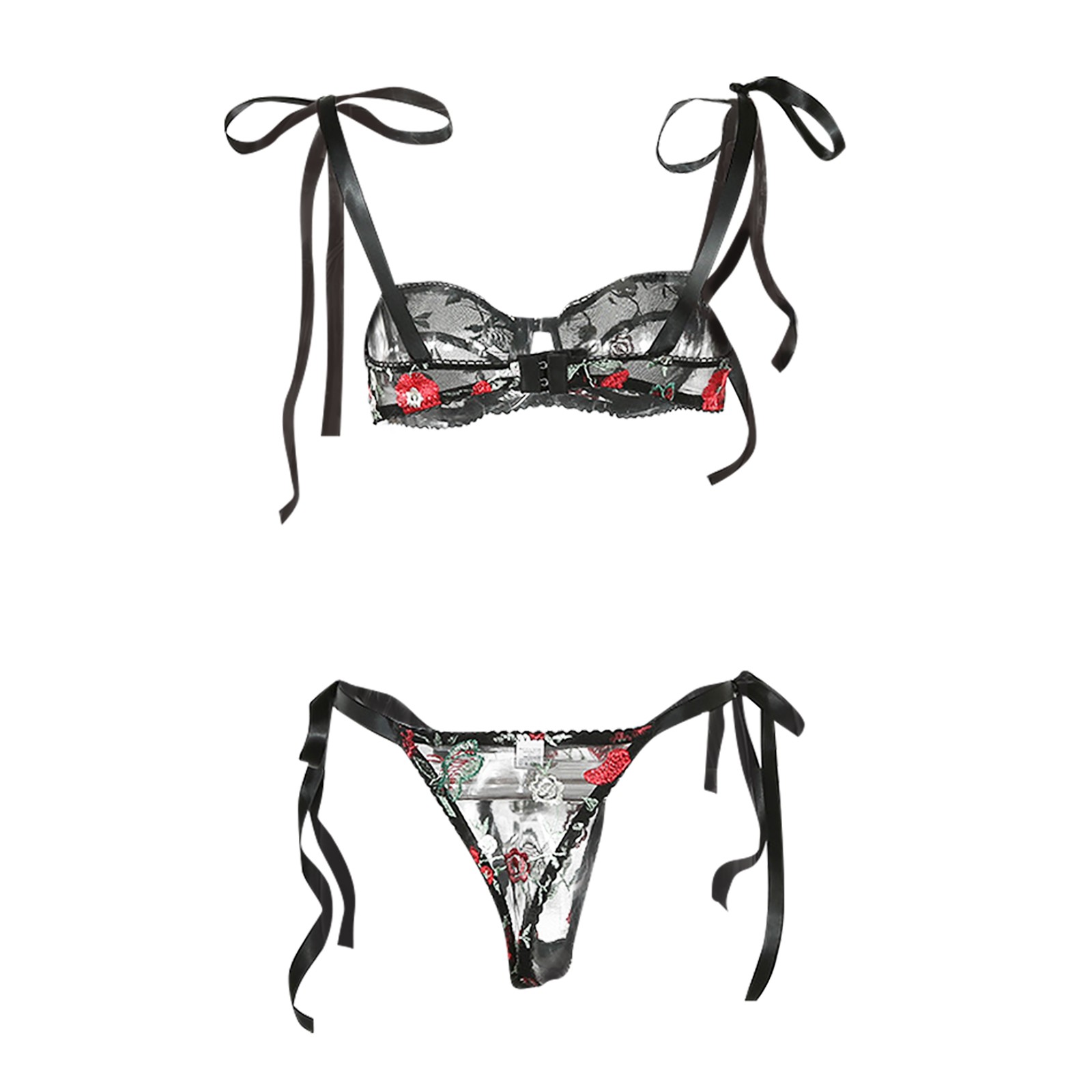 Женский сексуальный кружевной костюм из двух предметов с вышивкой в три точки
