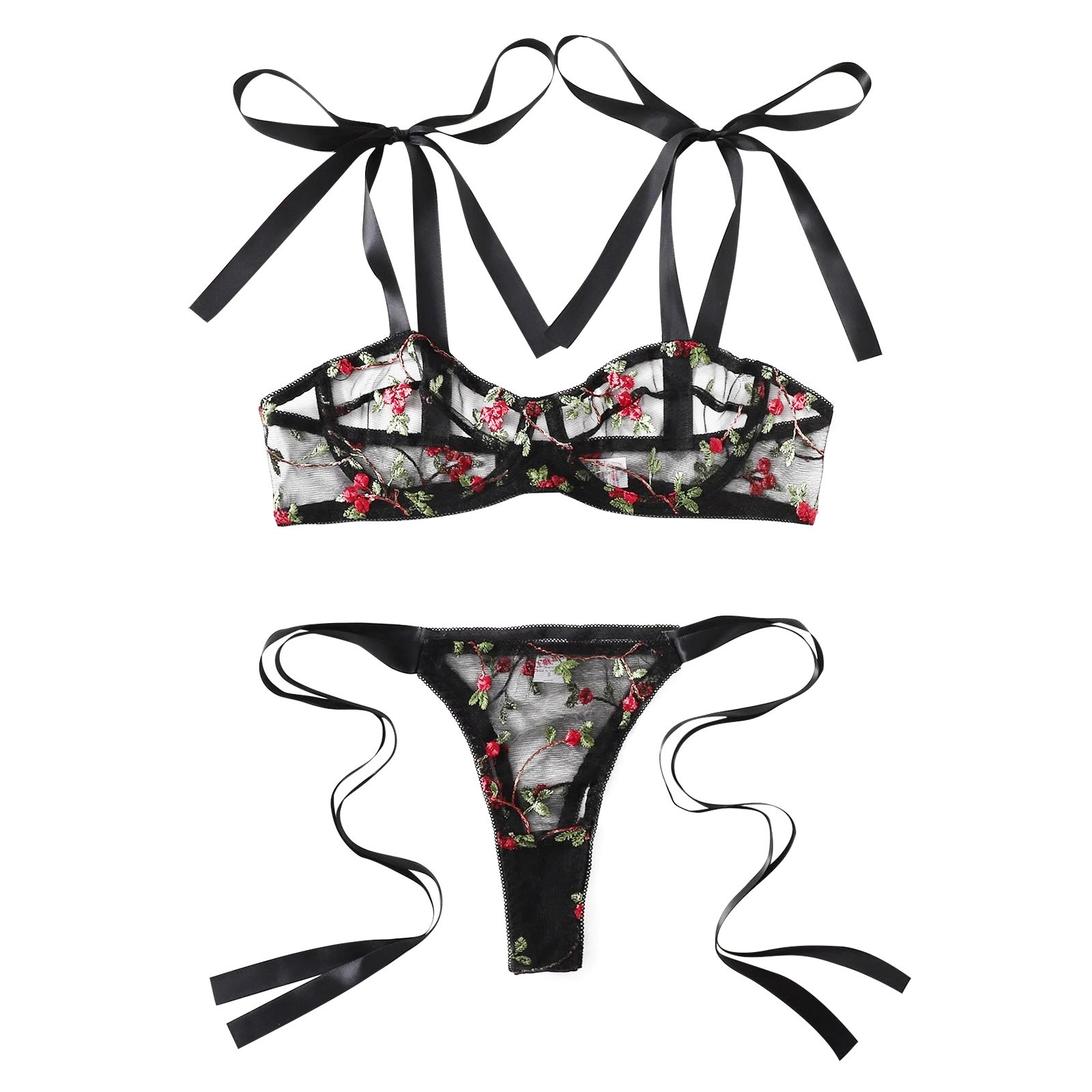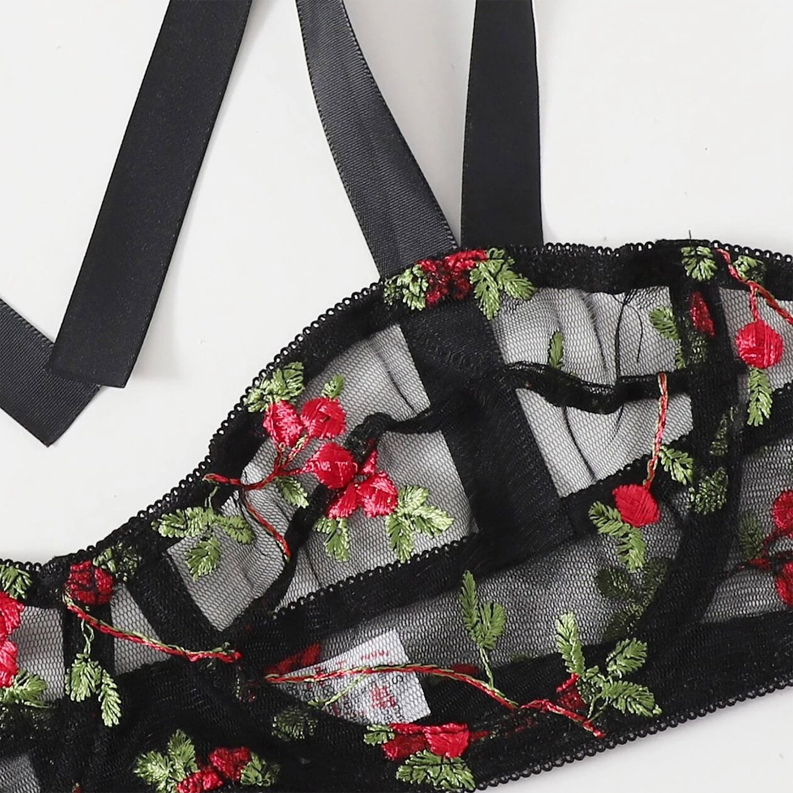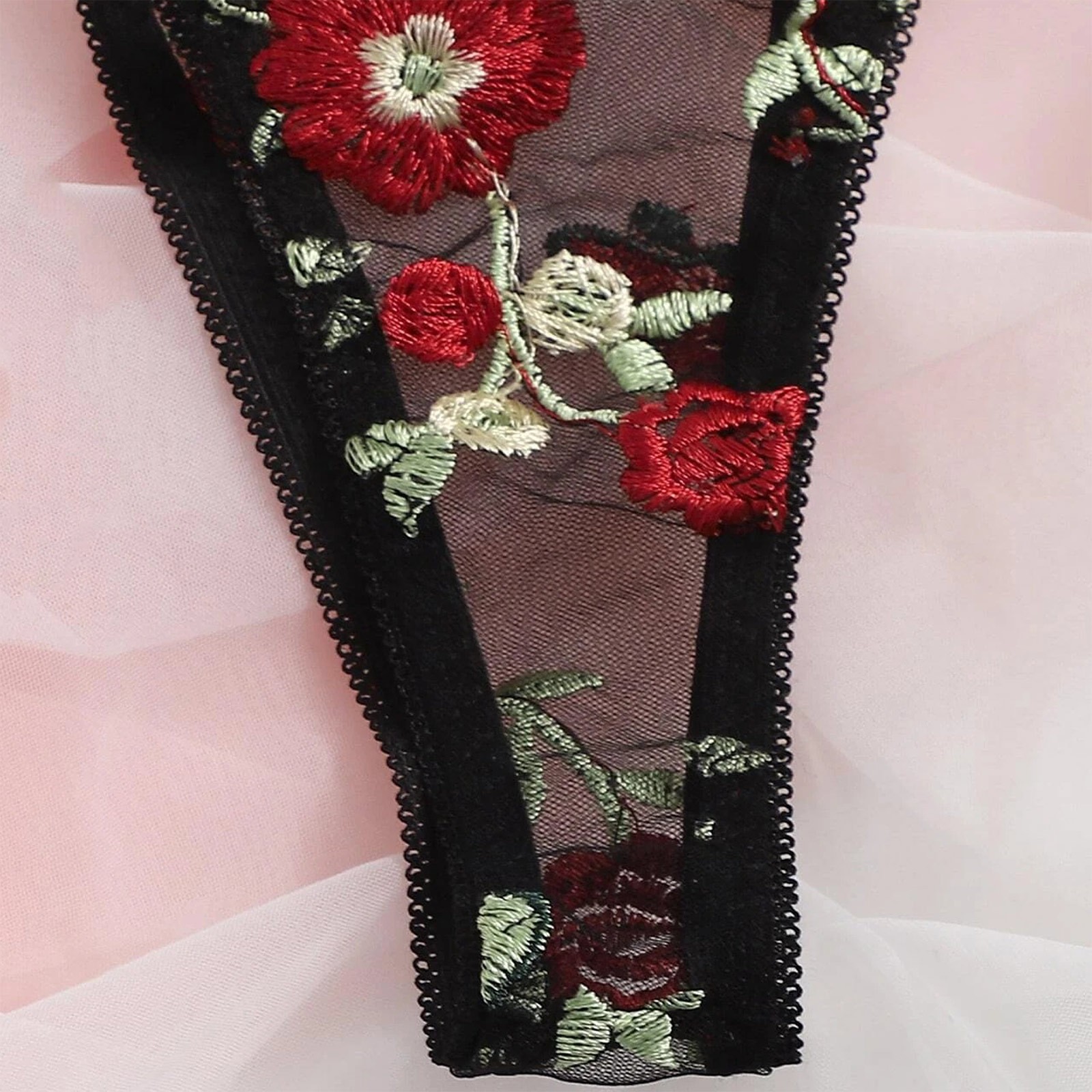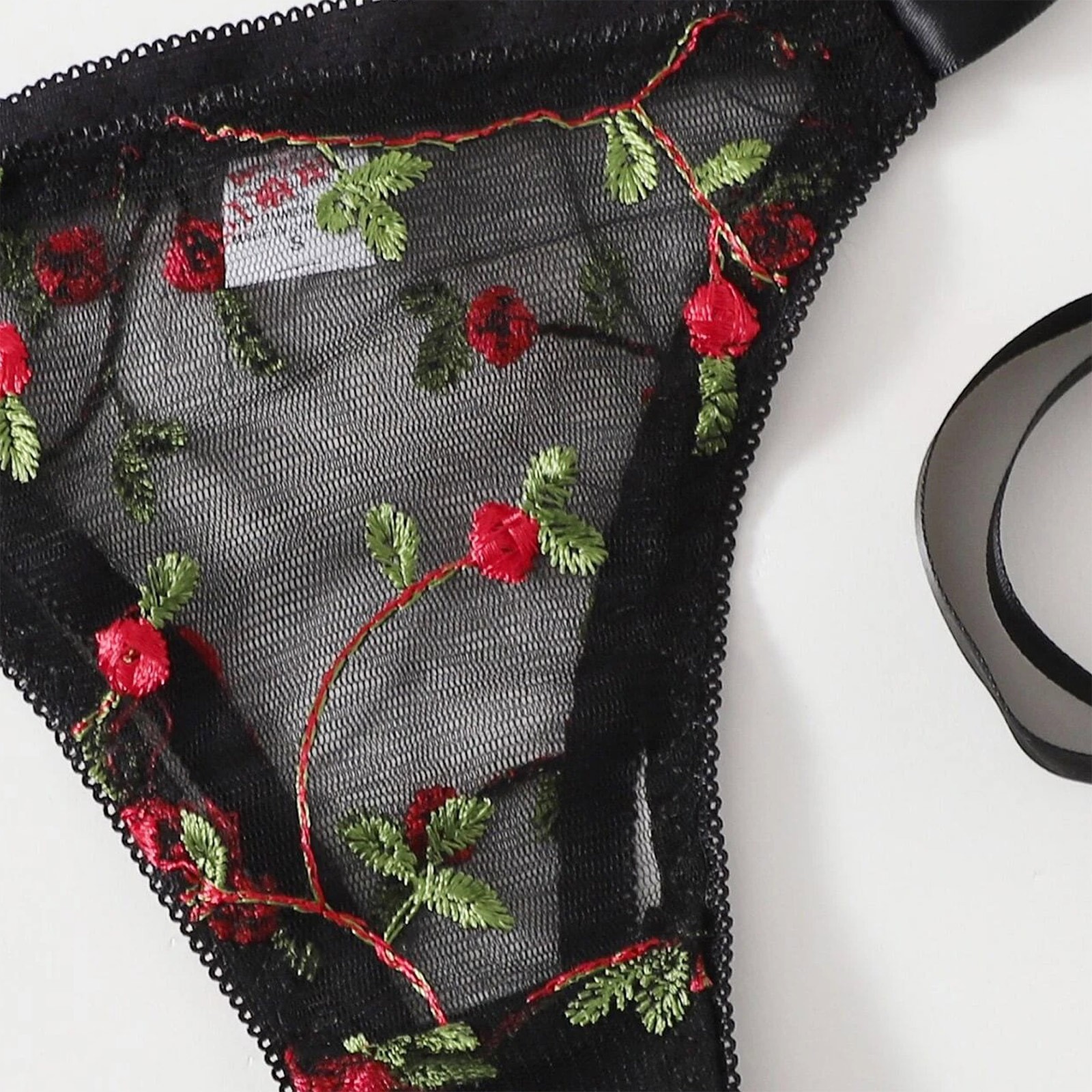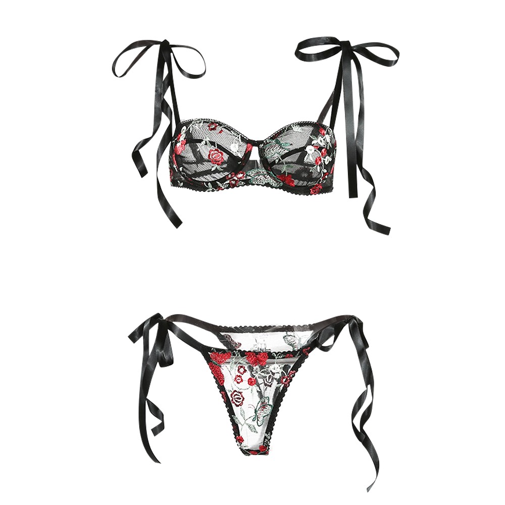 Женский сексуальный кружевной костюм из двух предметов с вышивкой в три точки
