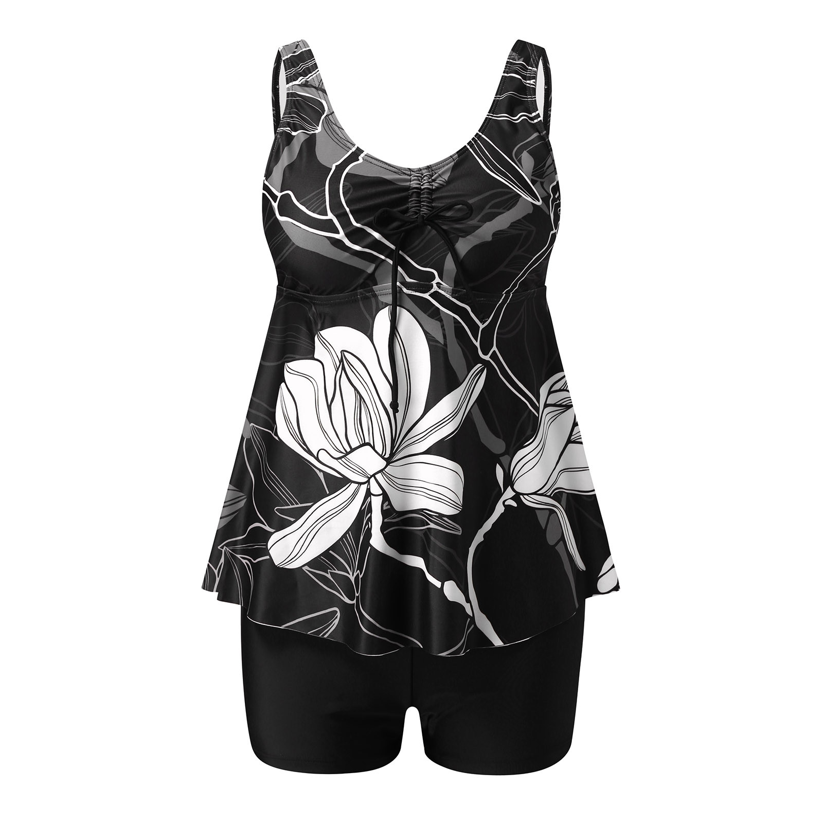 Женские Купальники для женщин, купальные костюмы из двух частей с цветочным принтом, топ на бретелях с шортами для мальчиков, купальные костюмы с контролем живота