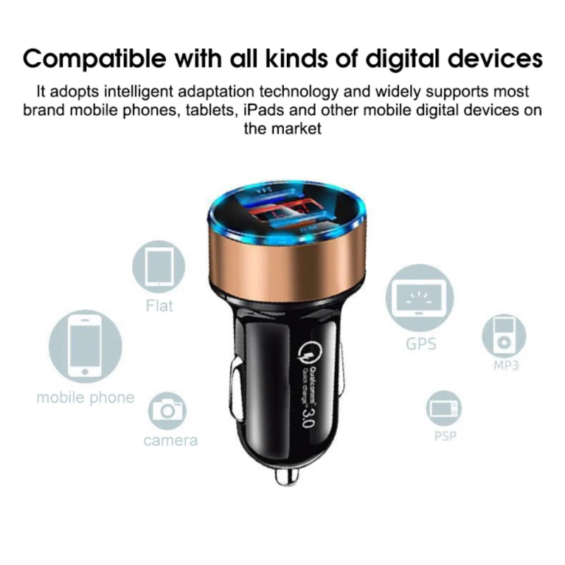 При использовании этого автомобильного зарядного устройства, пожалуйста, используйте оригинальный или такой же качественный зарядный кабель, который может пройти более 3 а тока, и почувствуйте ощущение быстрой зарядки!