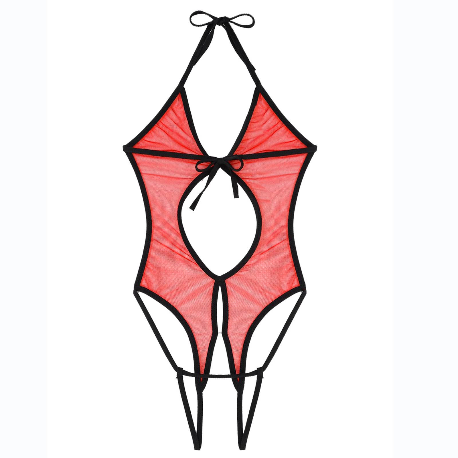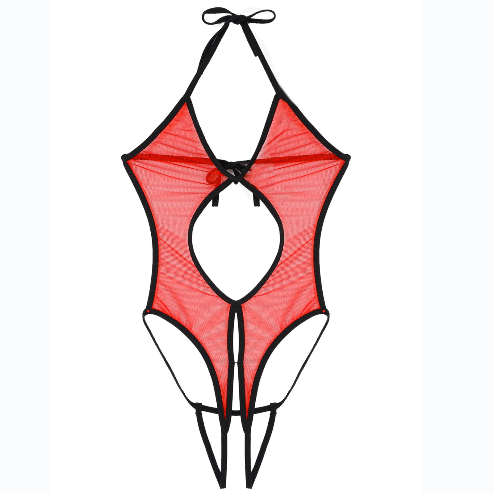 Женское прозрачное Сетчатое боди с лямкой на шее, кружевное нижнее белье без косточек, ночное белье, одежда для сна