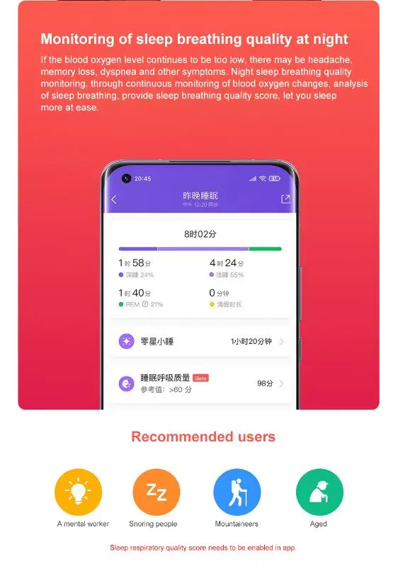 [Монитор сна] автоматически записывает продолжительность сна для анализа качества сна. Поможет вам настроить время отдыха для лучшего качества сна.