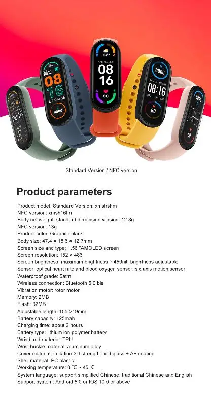 [1,56 ''amoled] 1,56 ''amoled цветной экран, экран 50% больше того, что вы MI Band5 (1,1 '').