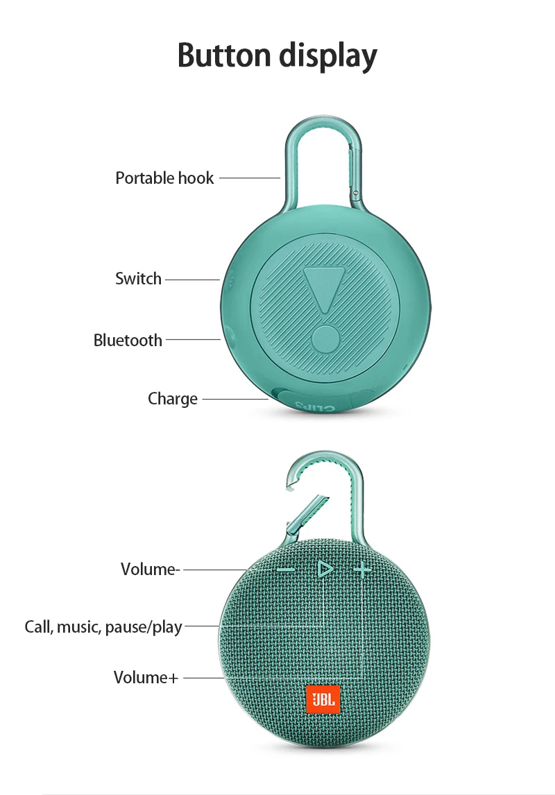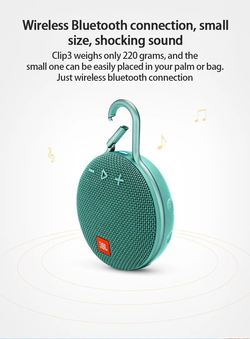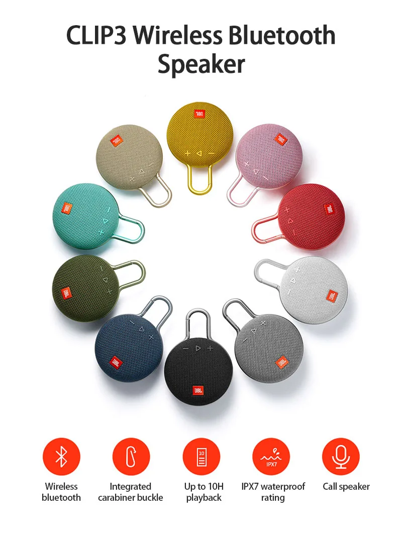 Готов к работе, куда вы идете: несравнимо с другими динамиками, JBL Clip 3 чрезвычайно портативный, поэтому вы можете просто прикрепить и перейти/подпись JBL звук с ультра-прочной водонепроницаемой внешней поверхностью