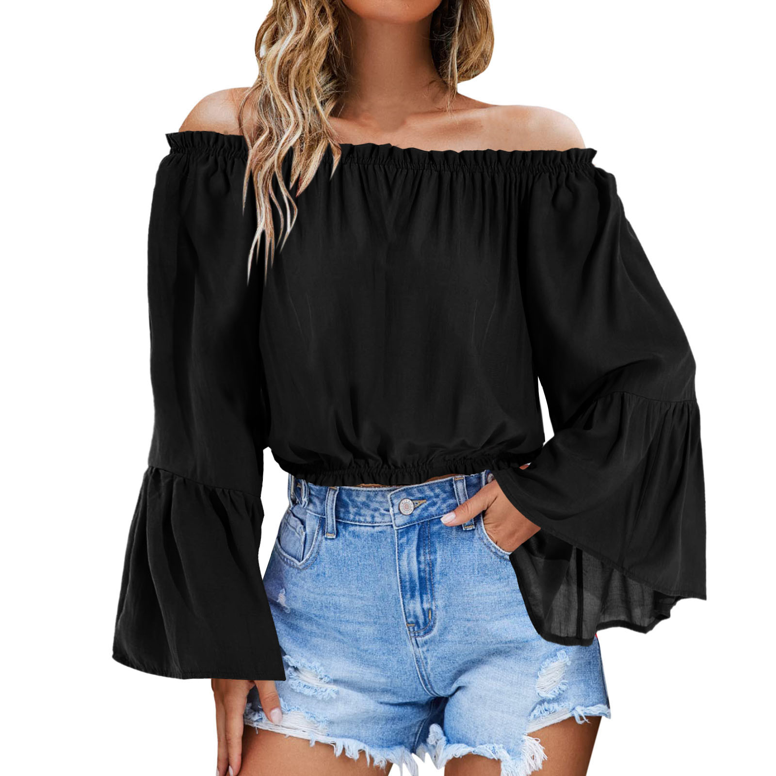 Особенности: дизайн с круглым вырезом, лямками и открытыми плечами, шикарный вырез с высоким и низким вырезом, уникальный и стильный дизайн. Изготовлен из эластичной легкой мягкой ткани и удобен в носке. Однотонные топы с цветочным принтом; Эта футболка с открытыми плечами идеально подходит для леггинсов, джинсов, шорт и штанов для стильного образа на все сезоны!