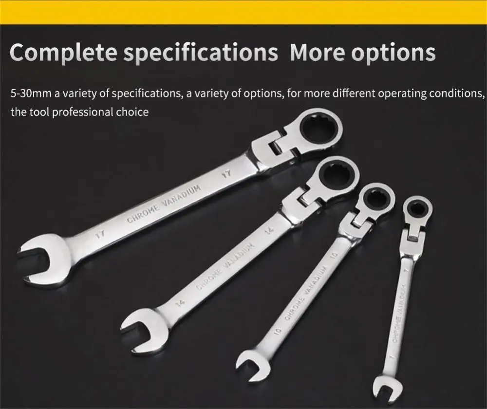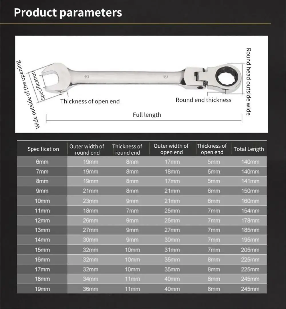 [Высокое качество и долговечность]: набор трещоточных ключей изготовлен из специально разработанной термостойкой хромированной ванадиевой стали, очищенной термообработкой. Сильная твердость и прочность, не легко деформируется и ломается.