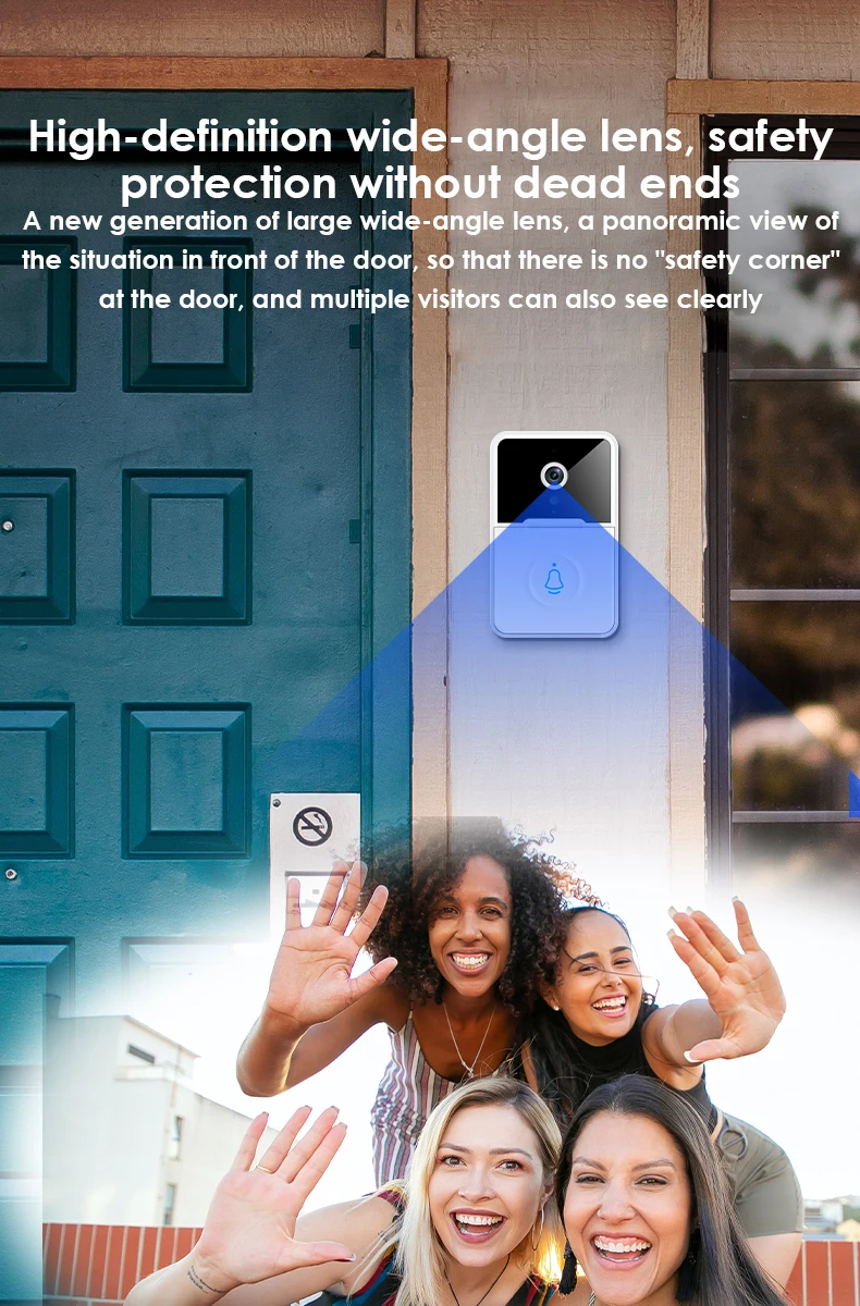 С широкоугольным объективом нового поколения, вы можете иметь панорамный вид на ситуацию перед дверью, так что в двери нет «безопасного угла», И несколько посетителей также могут увидеть его по одному