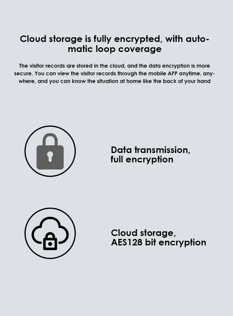 Записи посетителей сохраняются в облаке, а шифрование данных является более безопасным. Вы можете просматривать записи посетителей через мобильное приложение в любое время и в любом месте, и вы знаете ситуацию дома, как ладонь
