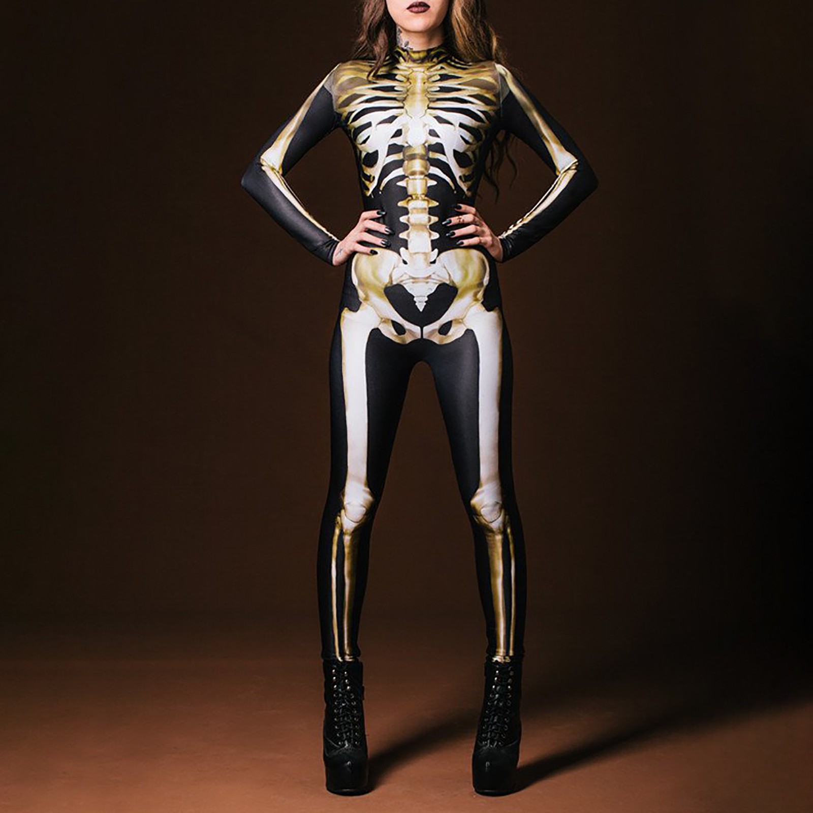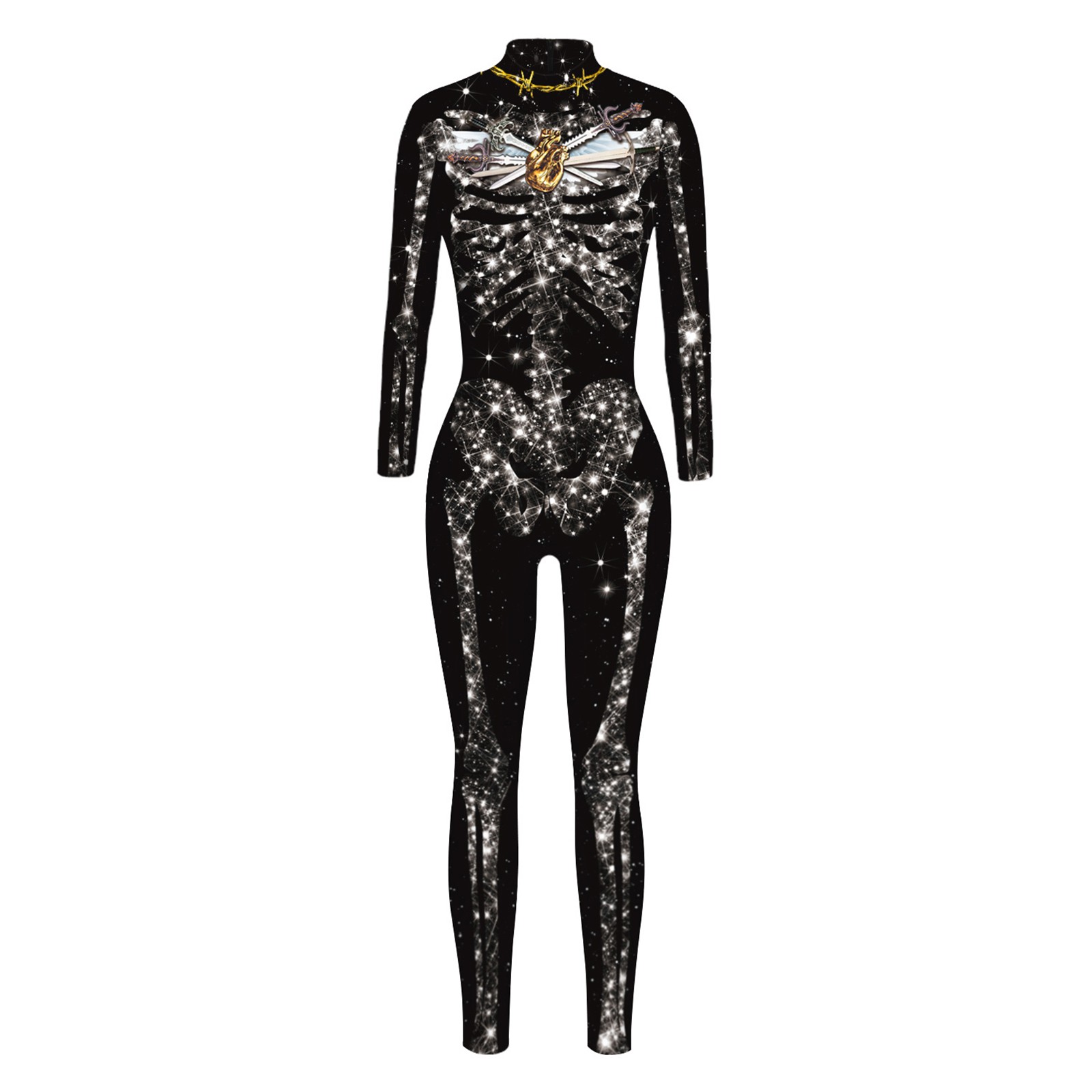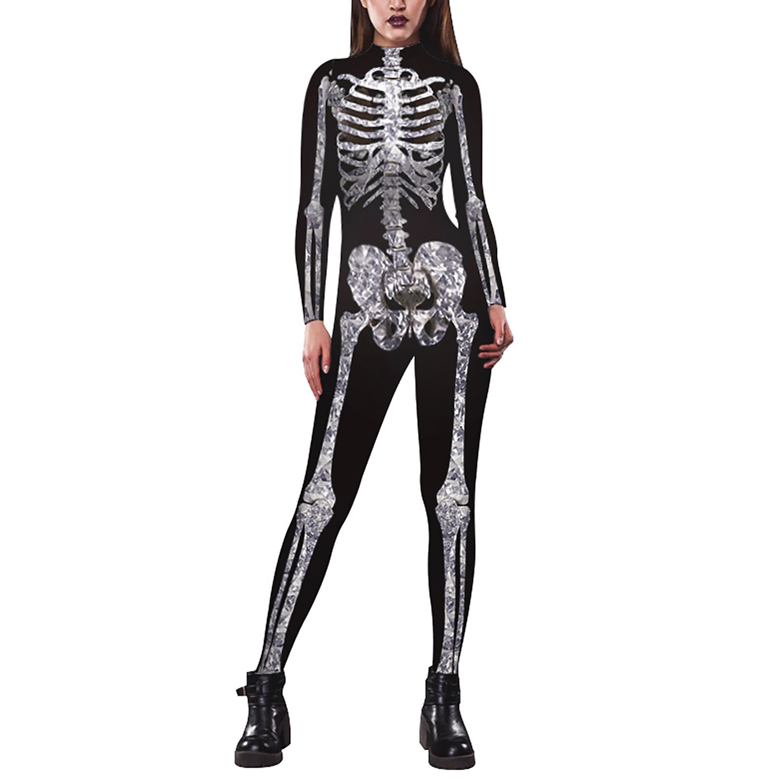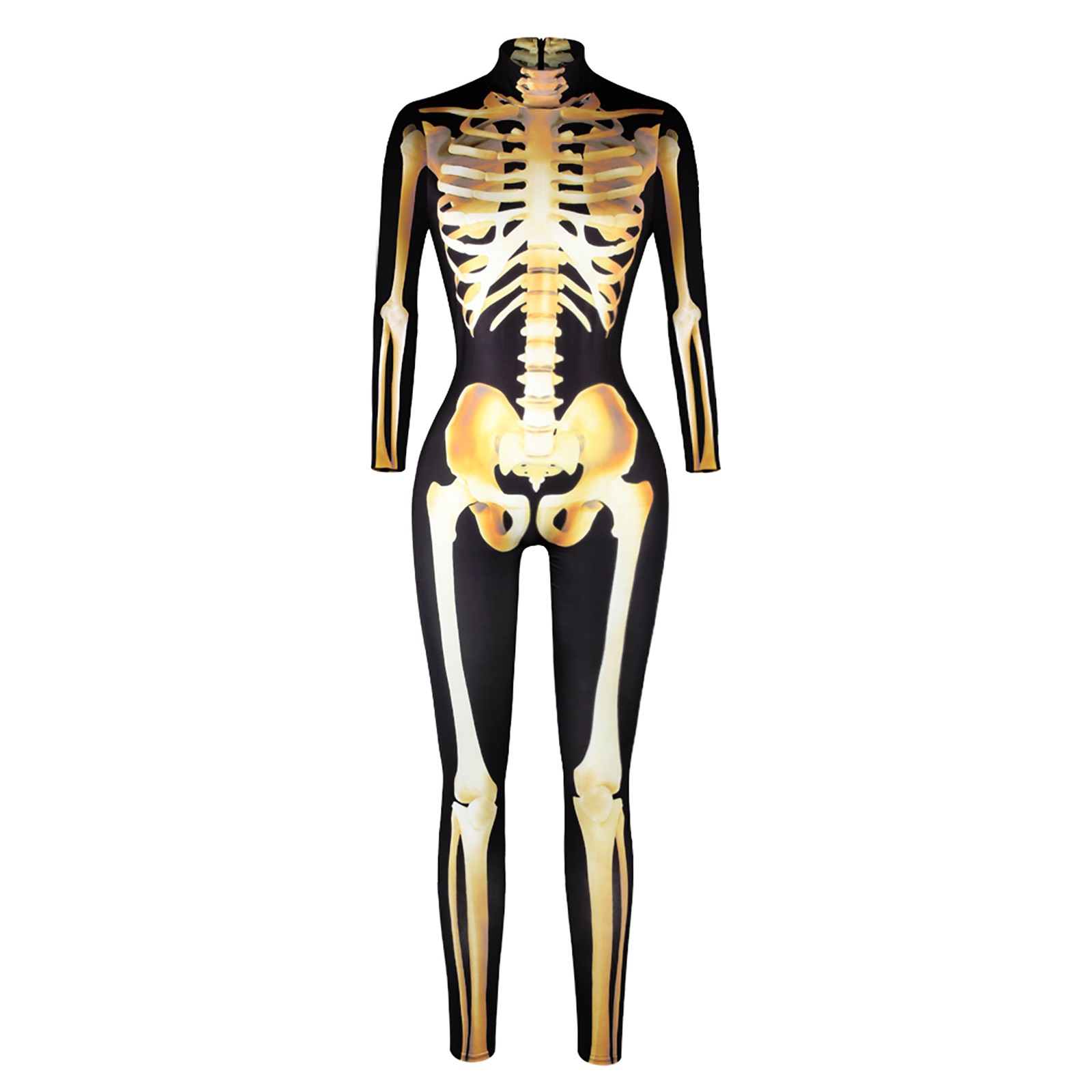 Костюм Скелета унисекс с забавным и страшным 3D-принтом скелета на Хэллоуин спереди и сзади, эластичный облегающий крой, застежка-молния сзади, легко надевается и снимается.