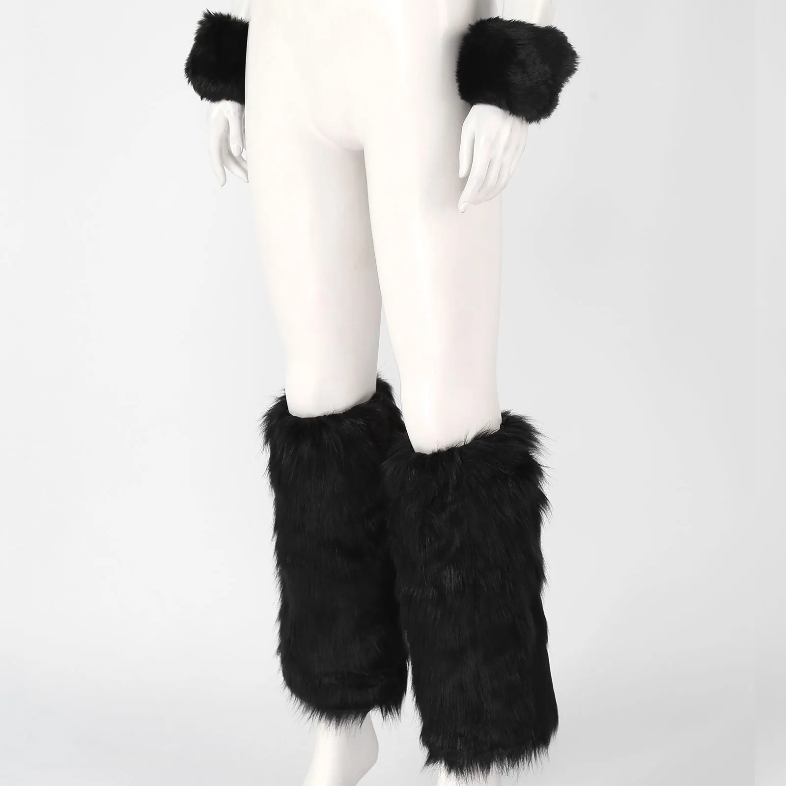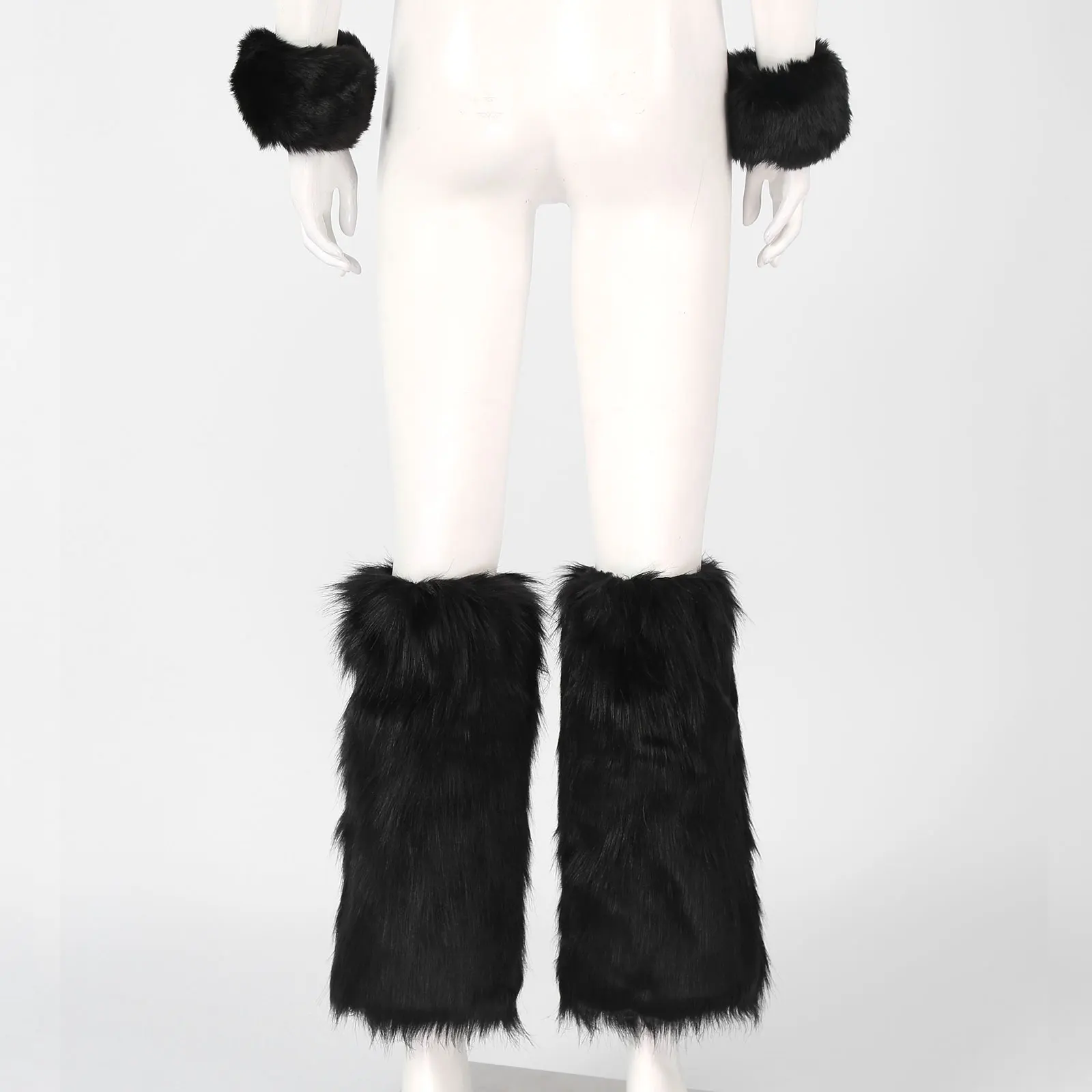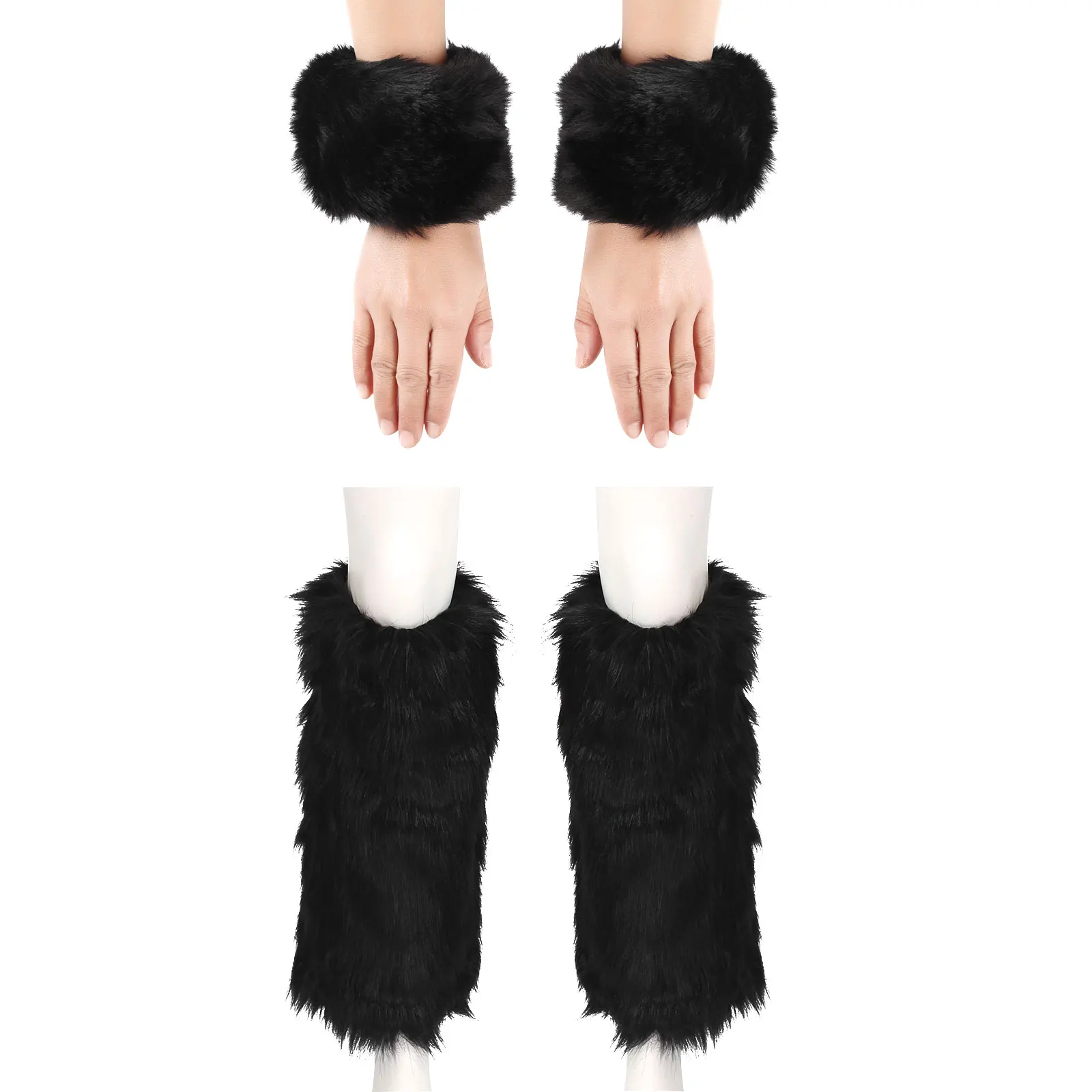 Комплект из двух предметов для женщин и девочек; Модные зимние меховые однотонные гетры с манжетами