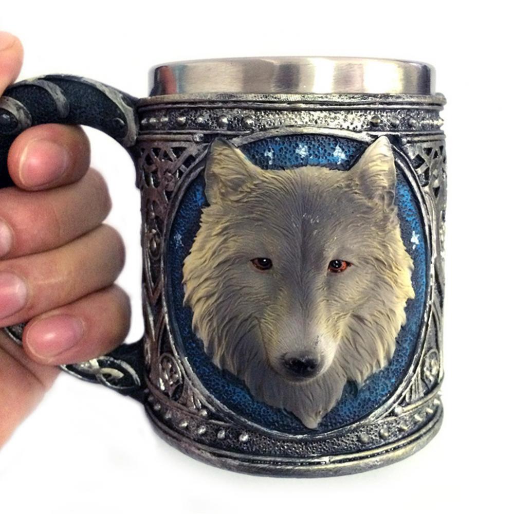 Волчья Голова из нержавеющей стали Смола пивной сок чашка для молока воды для домашнего офиса кофейная кружка