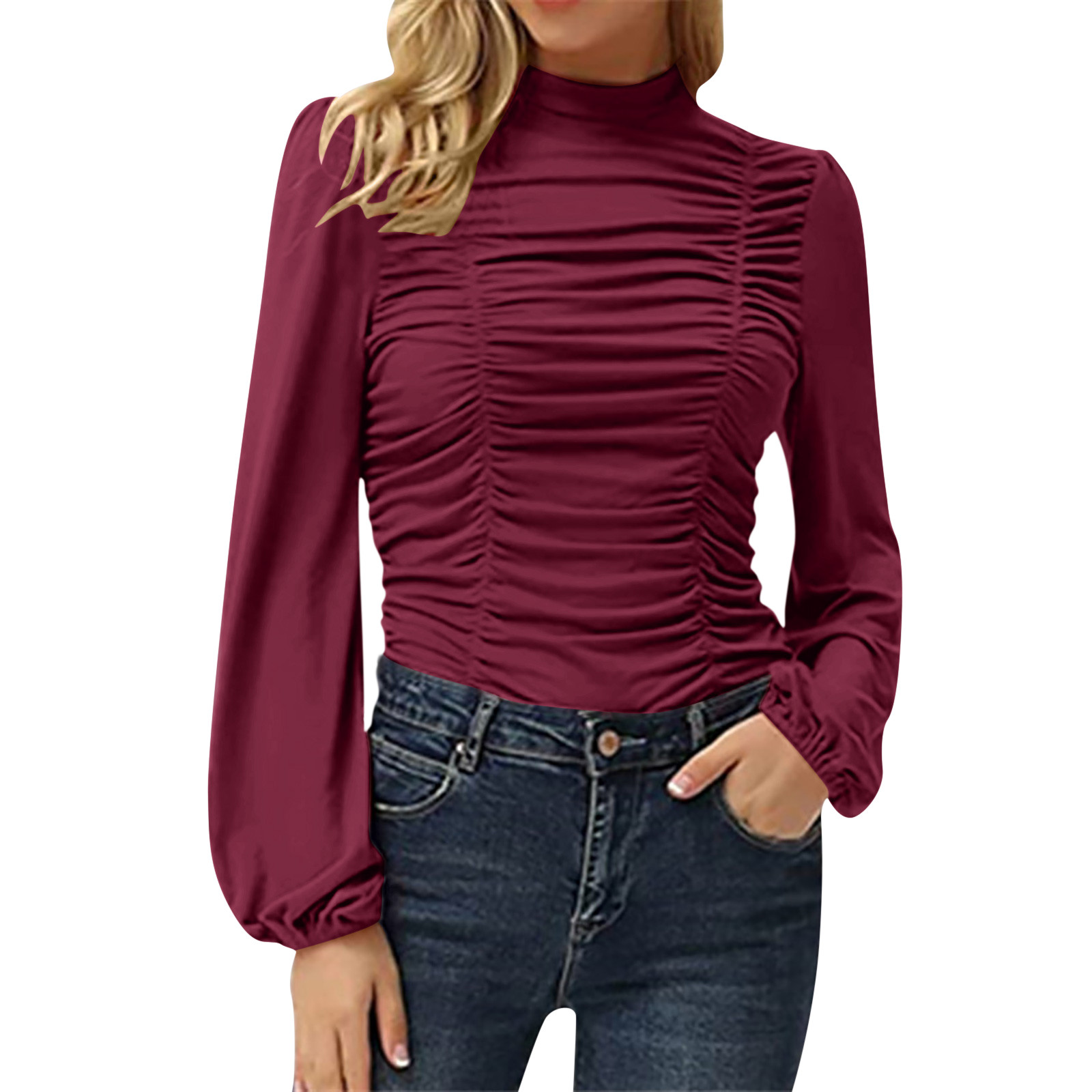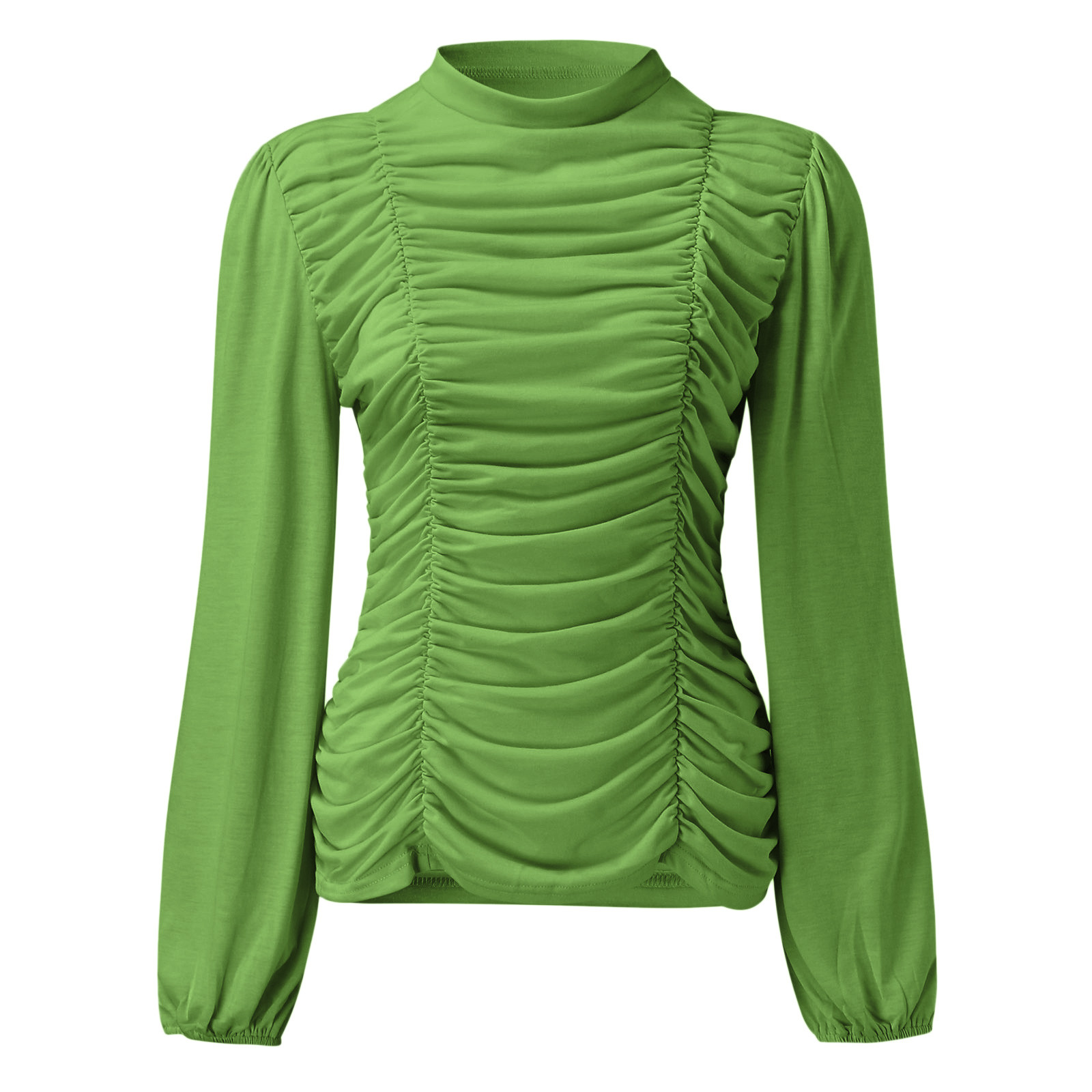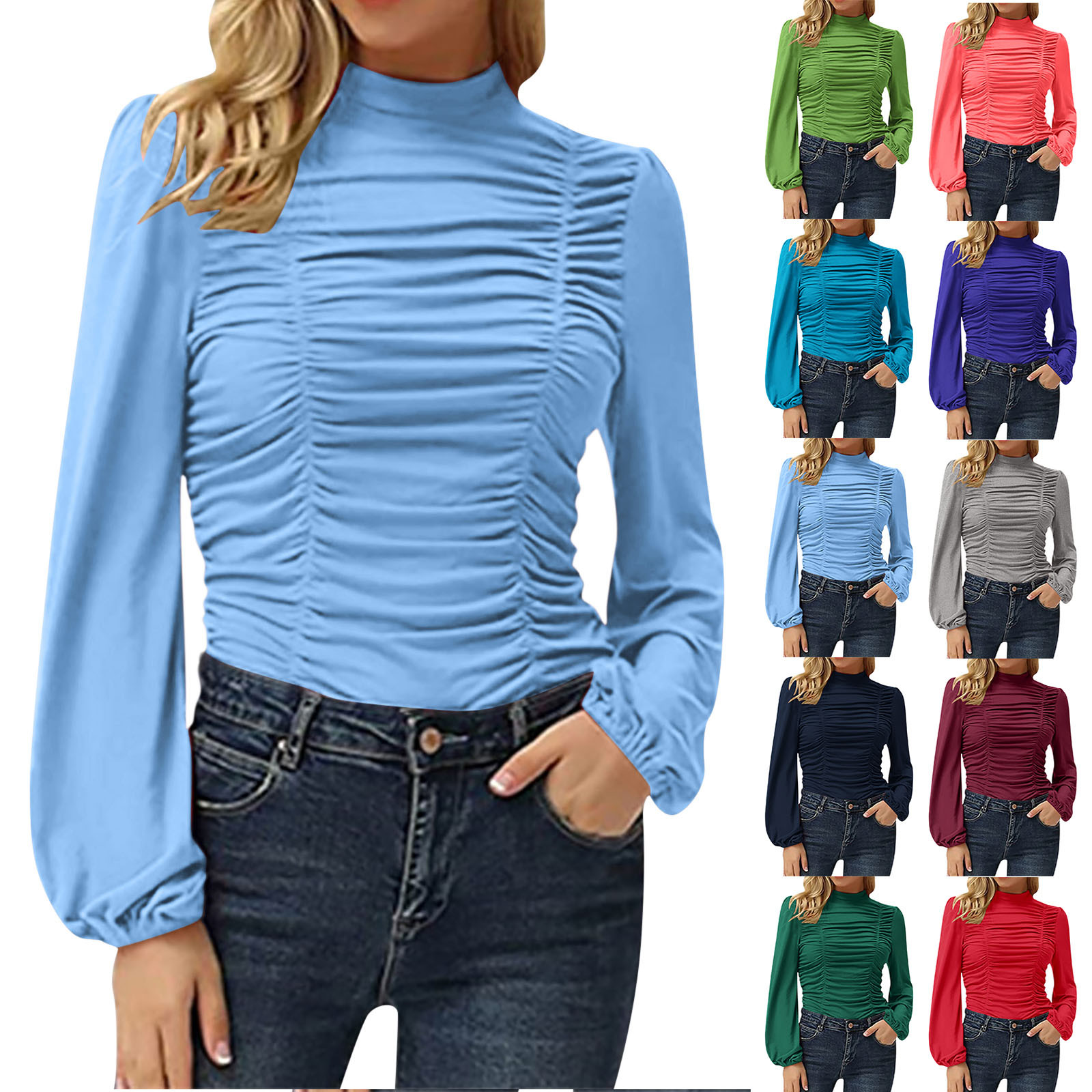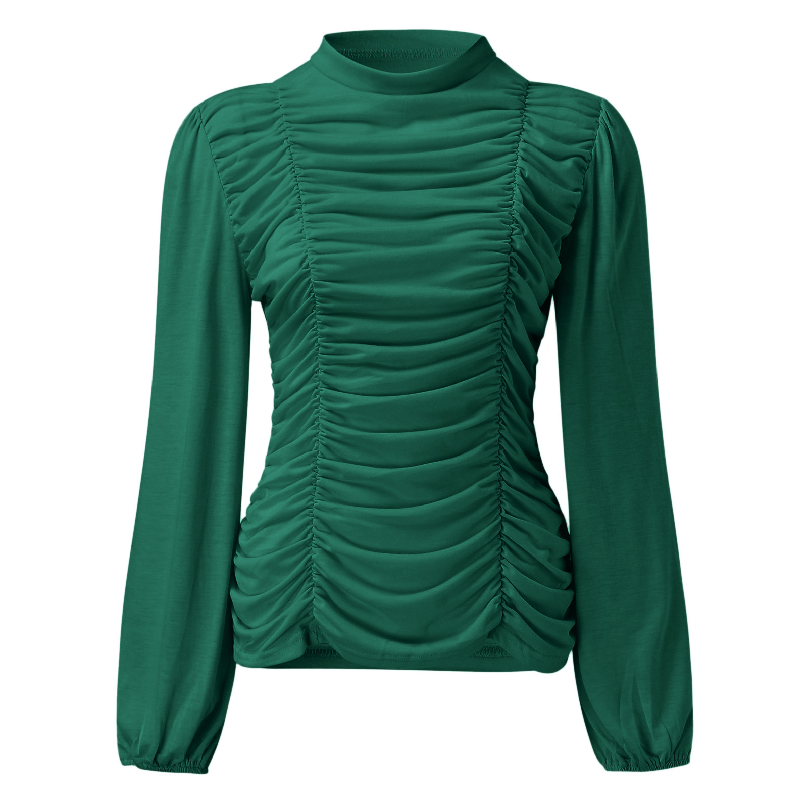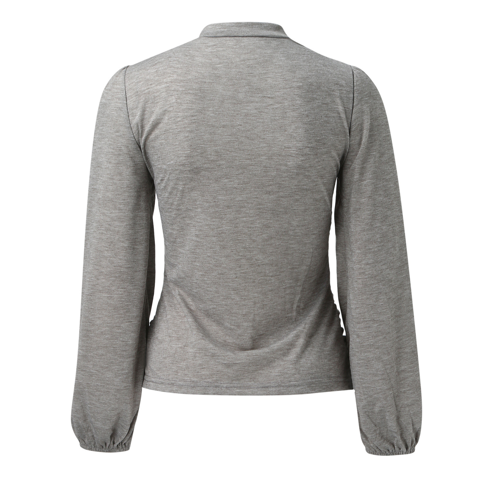 Обычная длина, сплошной цвет. Рубашка с длинными рукавами и круглым вырезом, с оборками спереди, сделает вас более красивым, стильным, сексуальным и элегантным.