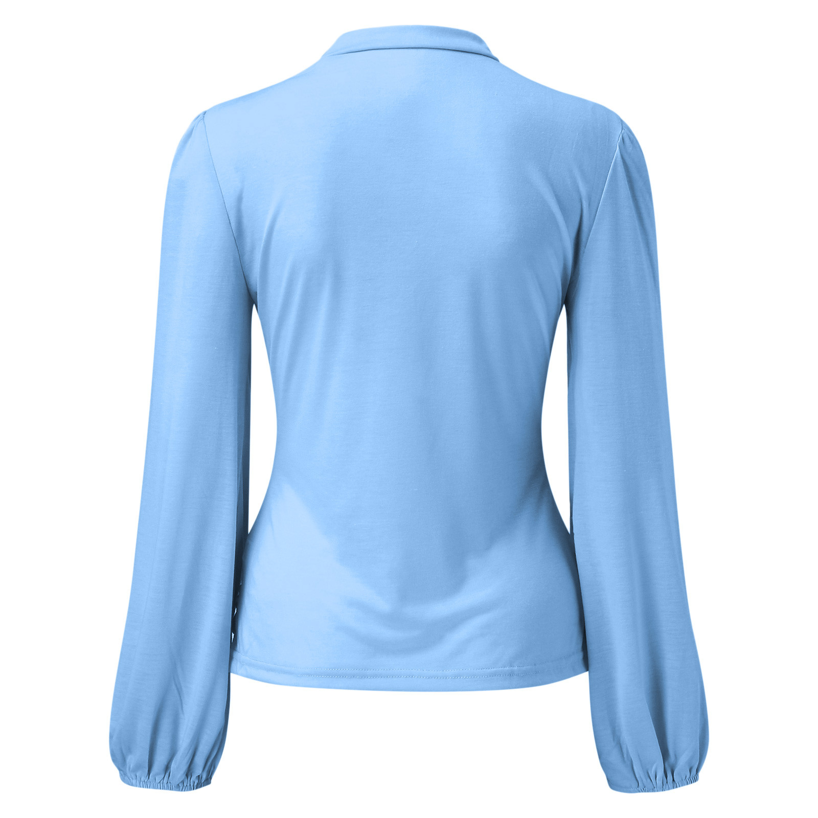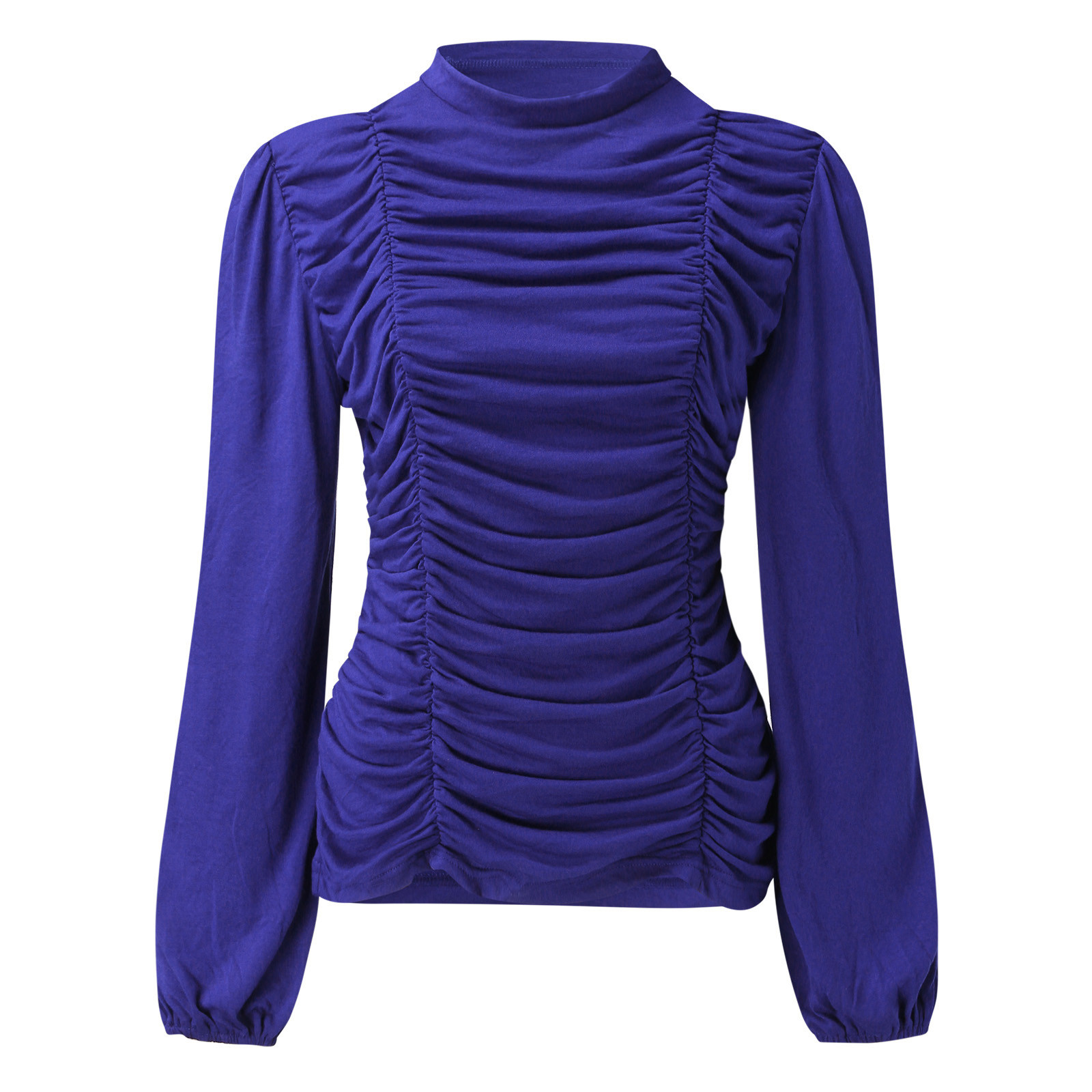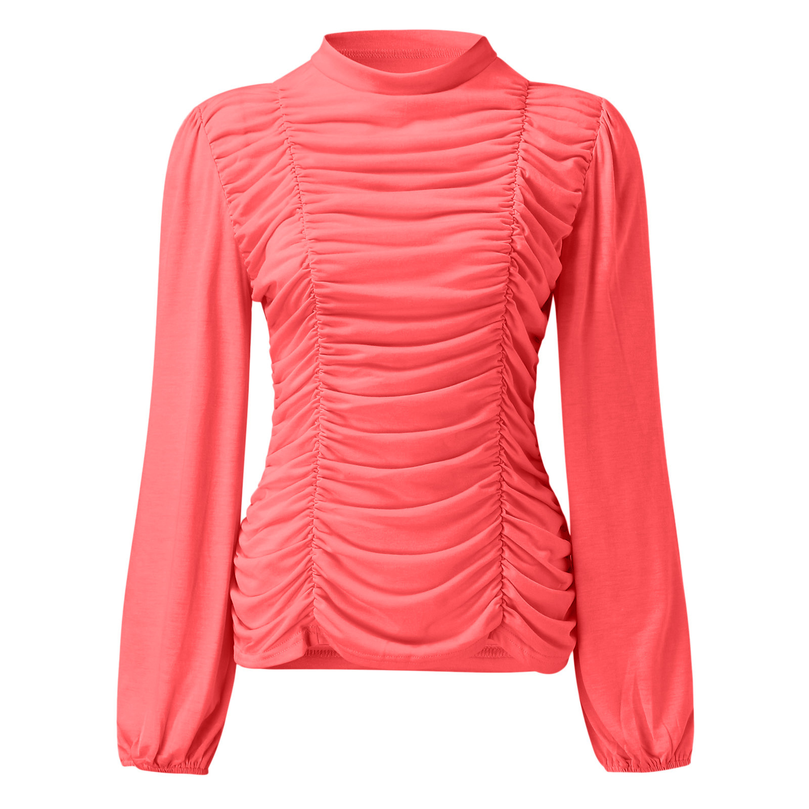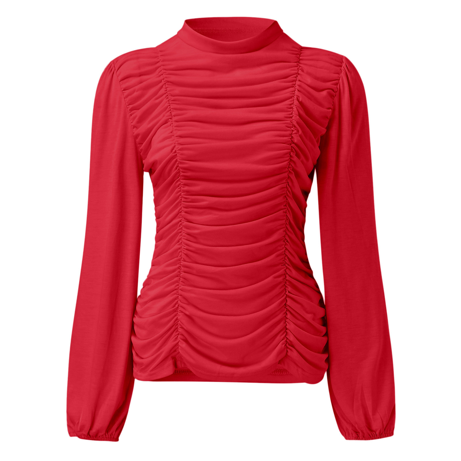Обычная длина, сплошной цвет. Рубашка с длинными рукавами и круглым вырезом, с оборками спереди, сделает вас более красивым, стильным, сексуальным и элегантным.