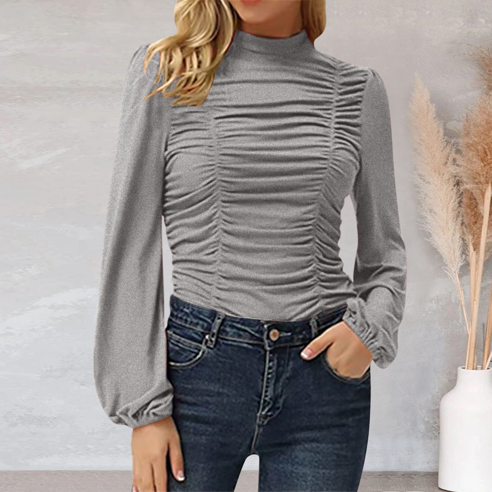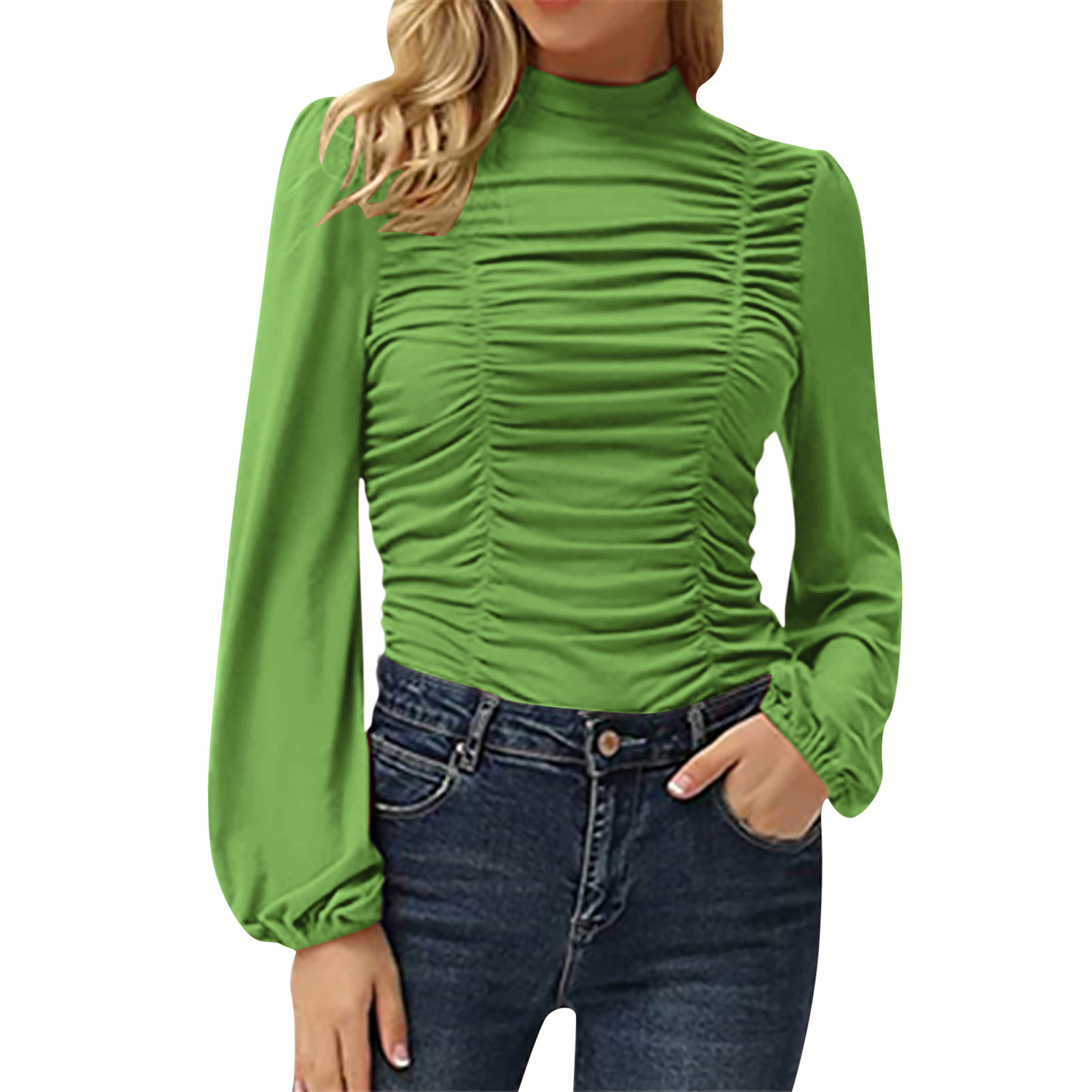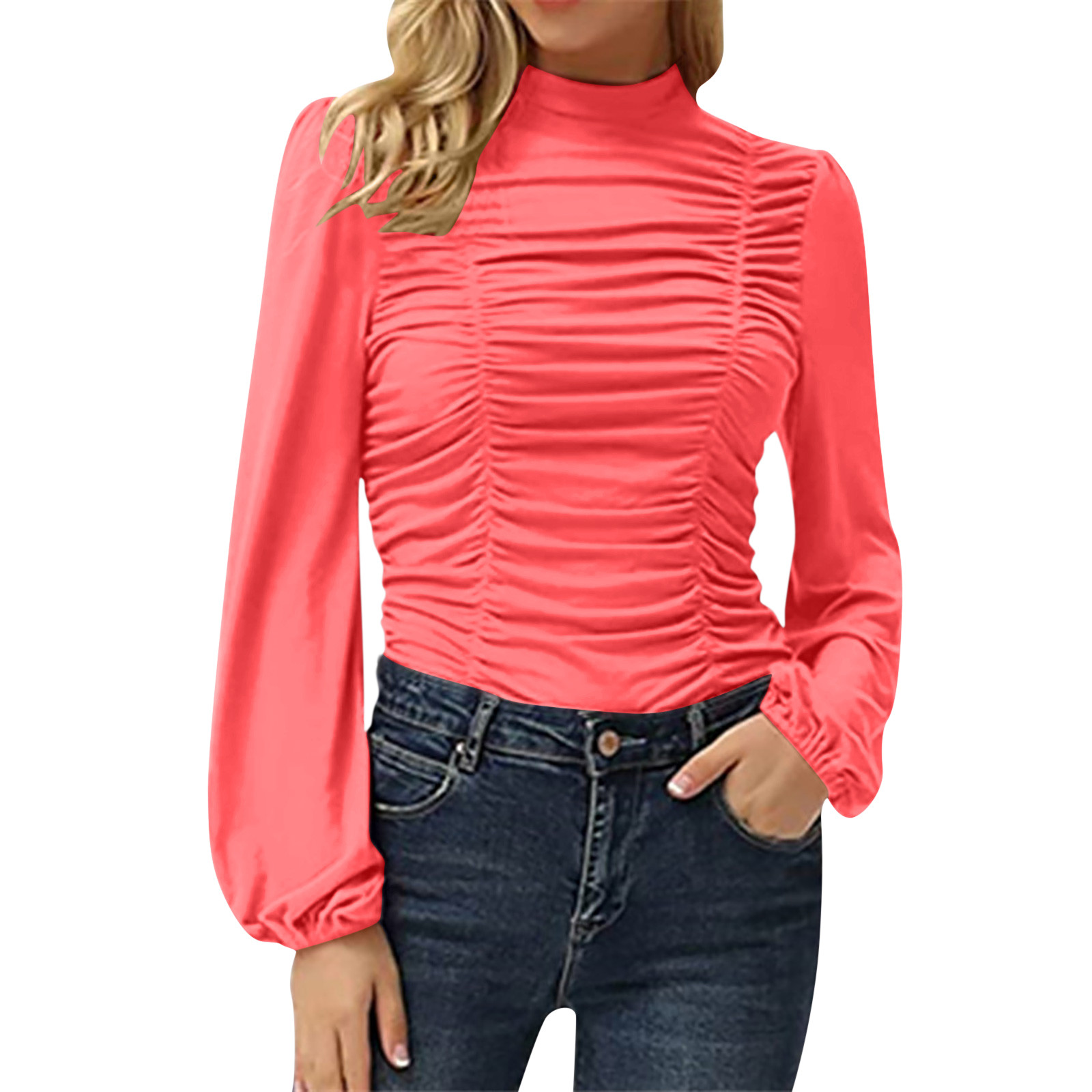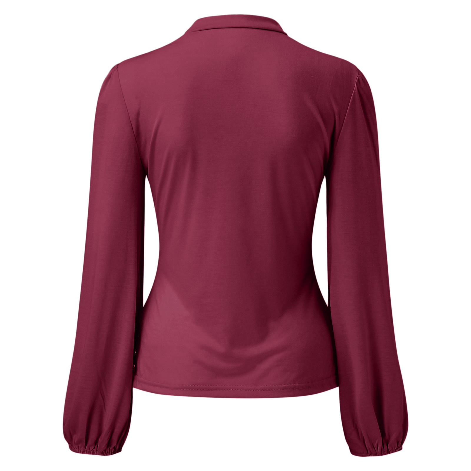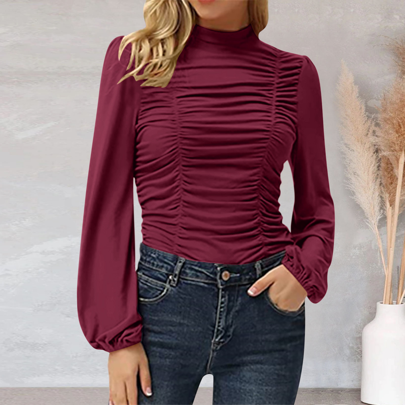 Обычная длина, сплошной цвет. Рубашка с длинными рукавами и круглым вырезом, с оборками спереди, сделает вас более красивым, стильным, сексуальным и элегантным.