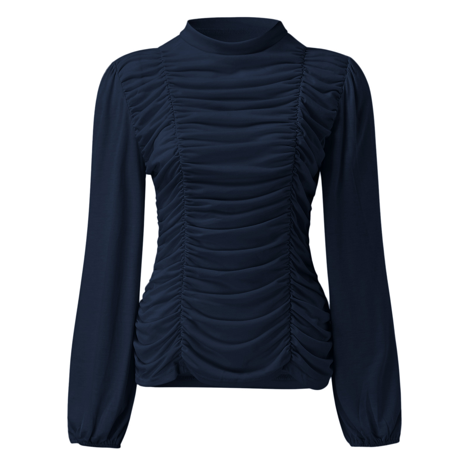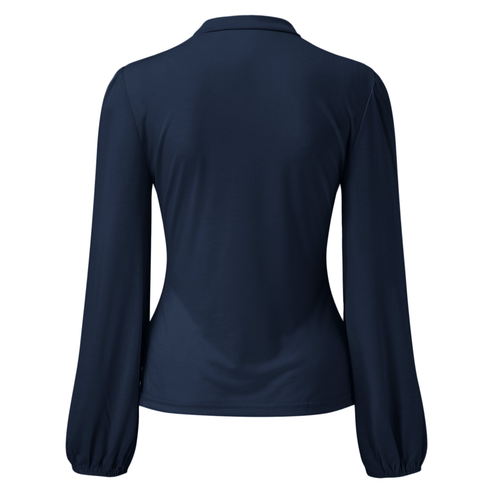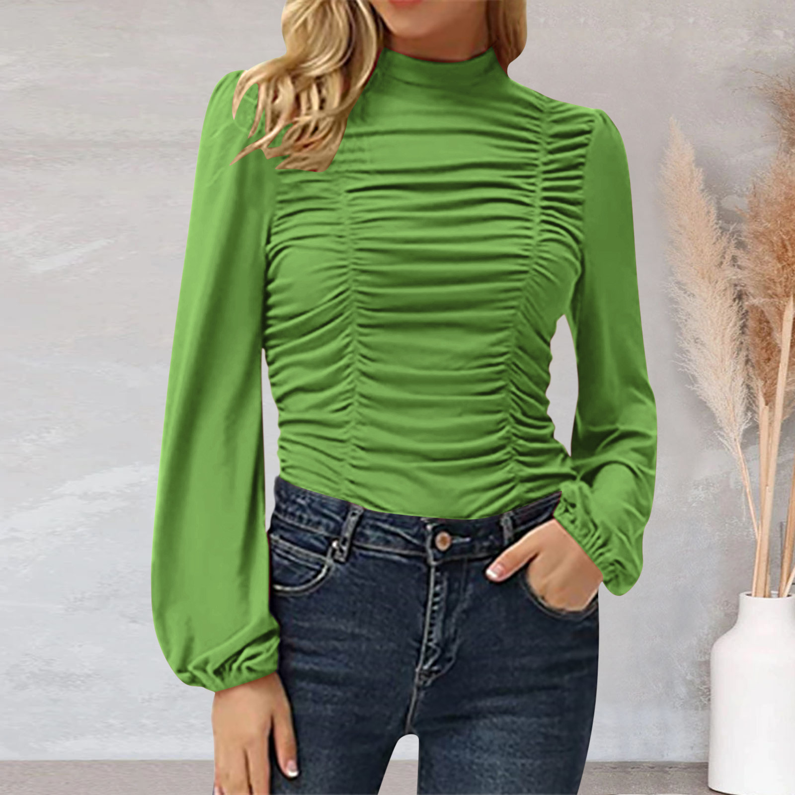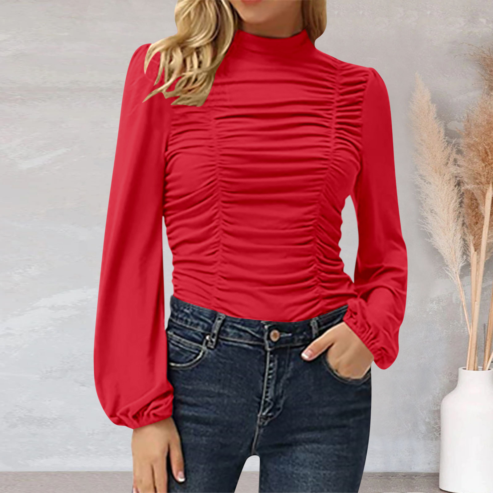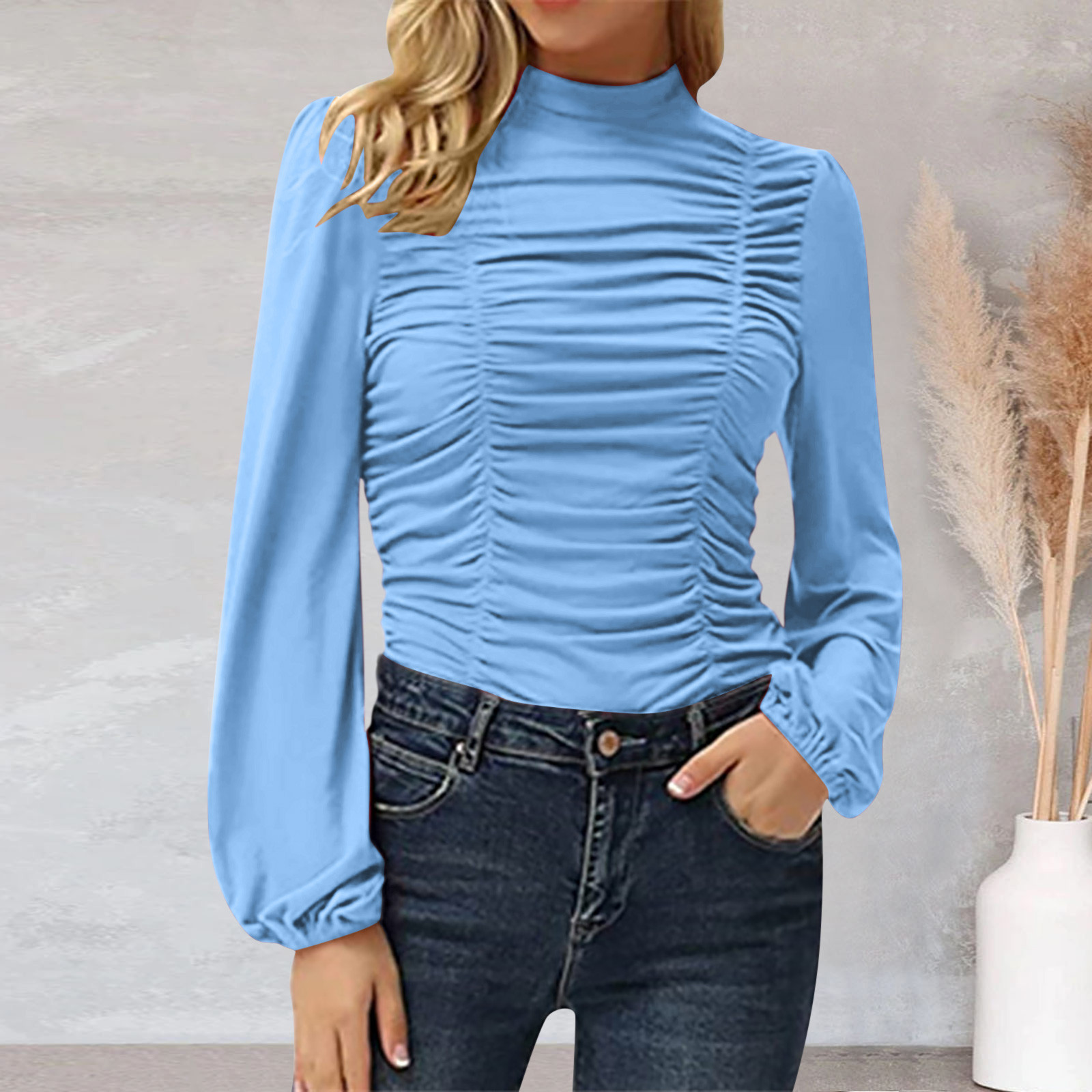 Обычная длина, сплошной цвет. Рубашка с длинными рукавами и круглым вырезом, с оборками спереди, сделает вас более красивым, стильным, сексуальным и элегантным.