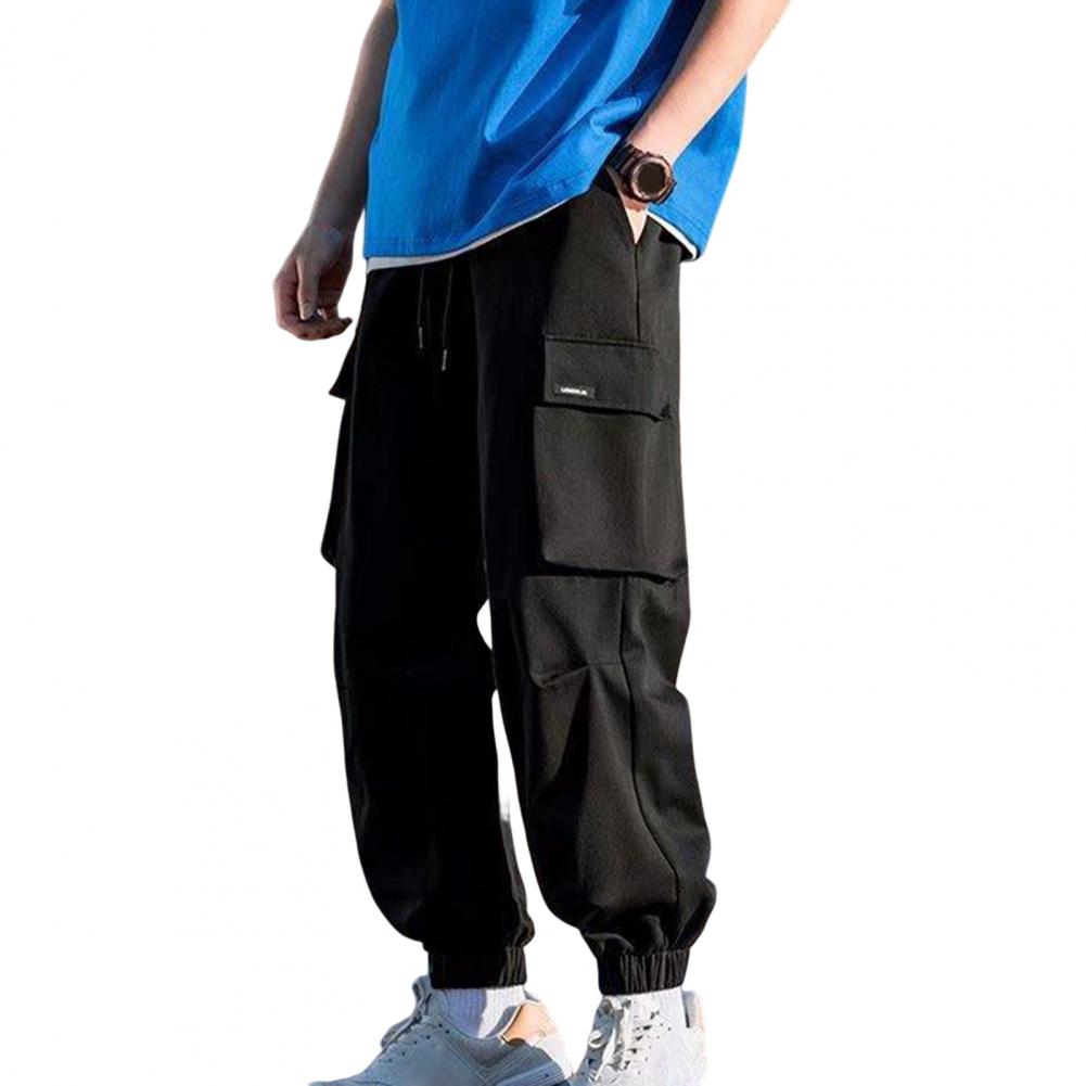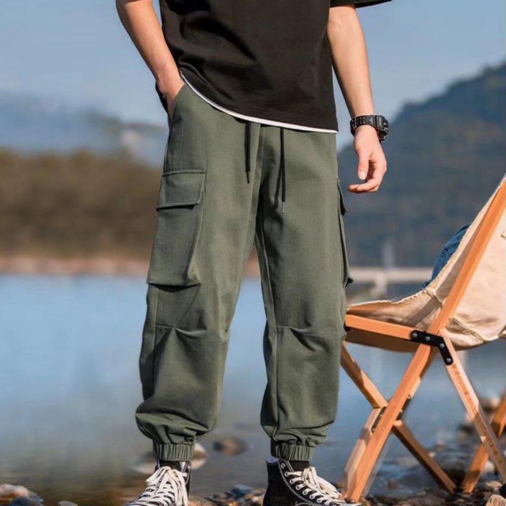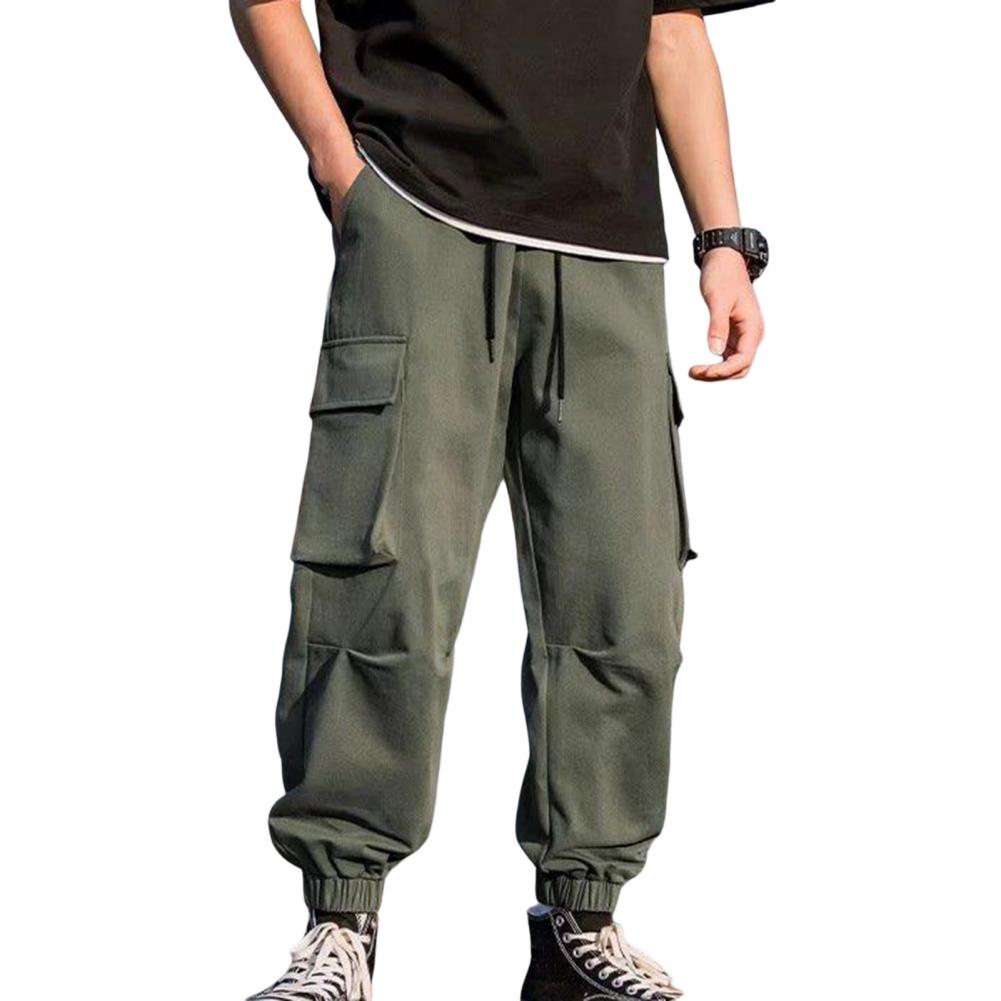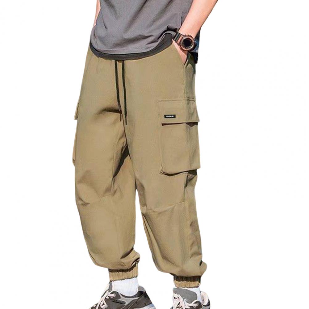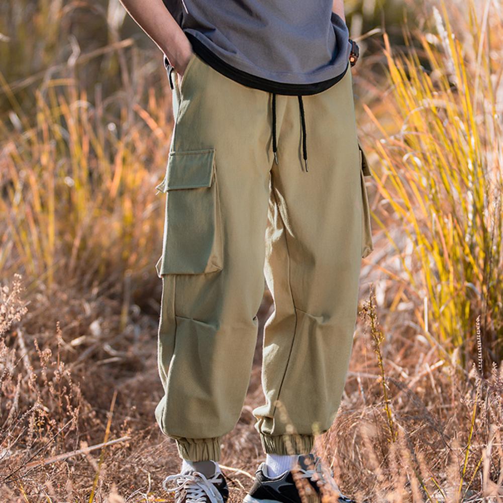 Мужские брюки карго, однотонные, с эластичной резинкой на талии, с большими карманами, на завязках, свободные, уличные, с завязками на лодыжке, штаны для работы