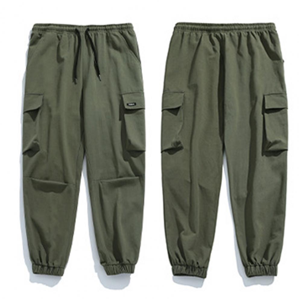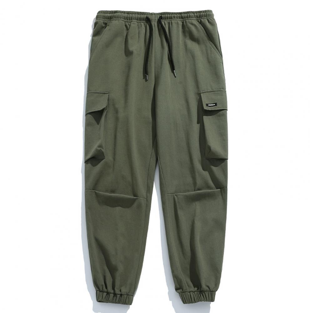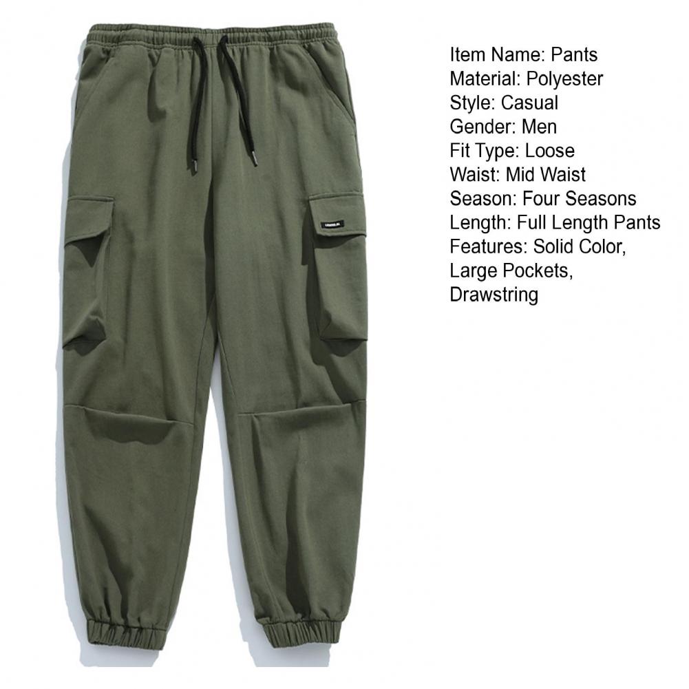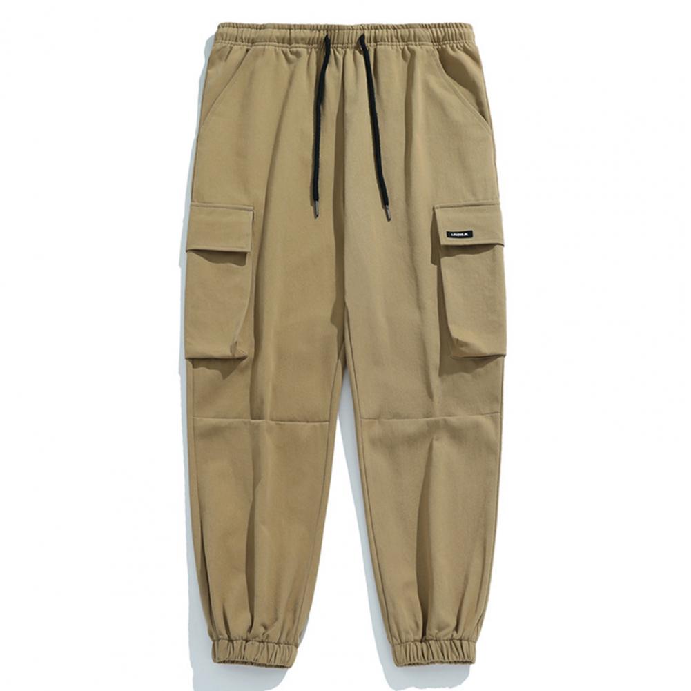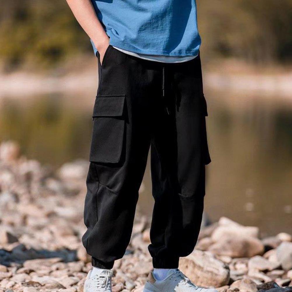 Мужские брюки карго, однотонные, с эластичной резинкой на талии, с большими карманами, на завязках, свободные, уличные, с завязками на лодыжке, штаны для работы